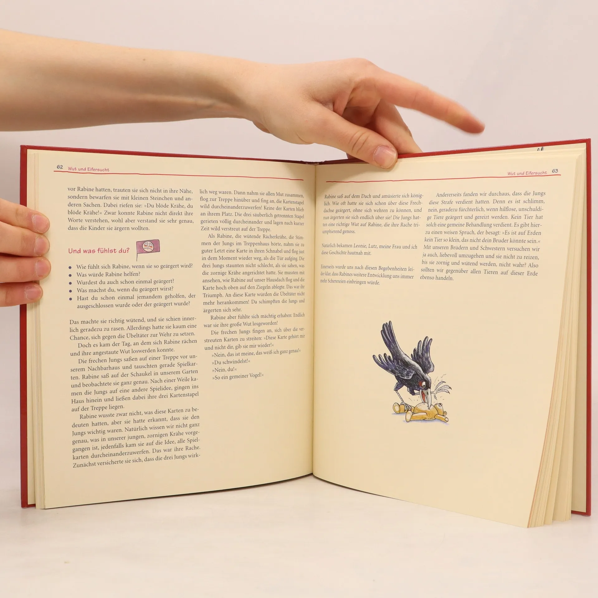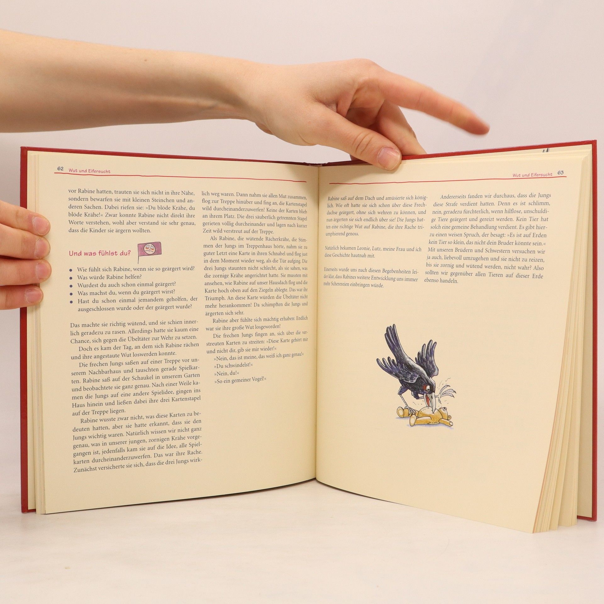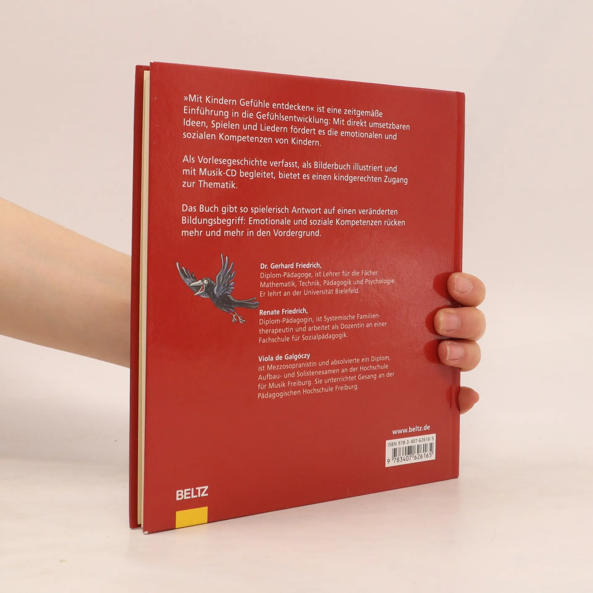 Gefühle verstehen? Mit der Leitfigur Rabe Rabine werden die einzelnen Kapitel des Buches erschlossen. Witzige kleine und grossflächige Illustrationen lockern auf und laden zum Betrachten und auch Vorlesen ein. Die Gefühle von Rabine können von den Kindern leicht nachvollzogen werden und auch die auf den grossen Bildern gezeigten Situationen aus dem Kinderalltag (Eifersucht, Aggression, Trauer, Freude, Vertrauen und Liebe, Geborgenheit usw.) sind sehr ausdrucksstark und fast selbsterklärend. Die Vorlesegeschichten sind in ihrer Aussage kindgerecht aufgebaut und leicht verständlich. Die gezeigten Mittel zur Bewältigung oder für das Verstehen der Gefühle sind sowohl für Kinder wie auch für Erwachsene sehr hilfreich. Das Buch enthält Noten und Texte vieler Lieder und mit der Begleit-CD macht das Singen noch grösseren Spass. Die erfahrenen Autor/-innen sind als Diplompädagoge mit Lehrstuhl, als systemische Familientherapeutin und als ausgebildete Mezzosopranistin, die Gesang an einer Hochschule unterrichtet wohl geradezu prädestiniert für die Entstehung eines solches Buches. Ab 5 Jahren, ****, Jeanne Locher-Polier