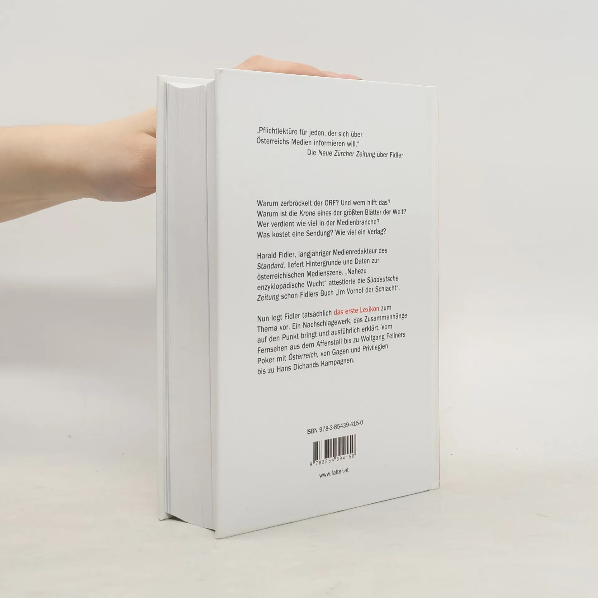 Das erste umfassende Lexikon zur österreichischen Medienszene: Harald Fidler, einer der renommiertesten Medienjournalisten des Landes, beleuchtet die Hintergründe der hochkonzentrierten österreichischen Medienbranche. Warum zerbröckelt der ORF? Und wem hilft das? Warum ist die Krone eines der größten Blätter der Welt? Wer verdient wie viel in der Medienbranche? Was kostet eine Sendung? Wie viel ein Verlag? Harald Fidler liefert Hintergründe und Daten zur österreichischen Medienszene, er legt damit ein Nachschlagewerk vor, das Zusammenhänge ausführlich erklärt. Vom Fernsehen aus dem Affenstall bis zu Wolfgang Fellners Poker mit Österreich, von Gagen und Privilegien bis zu Hans Dichands Kampagnen. „Österreichs Medienwelt von A bis Z“ liefert flüssig geschriebene und gut lesbare Analysen der Medienszene und bietet die Möglichkeit, gezielt nach allen wesentlichen Stichwörtern und Personen der Branche zu suchen. Unentbehrlich für interessierte Medienkonsumenten, die wissen wollen, was wirklich hinter dem Geschäft mit Information und Unterhaltung steckt.