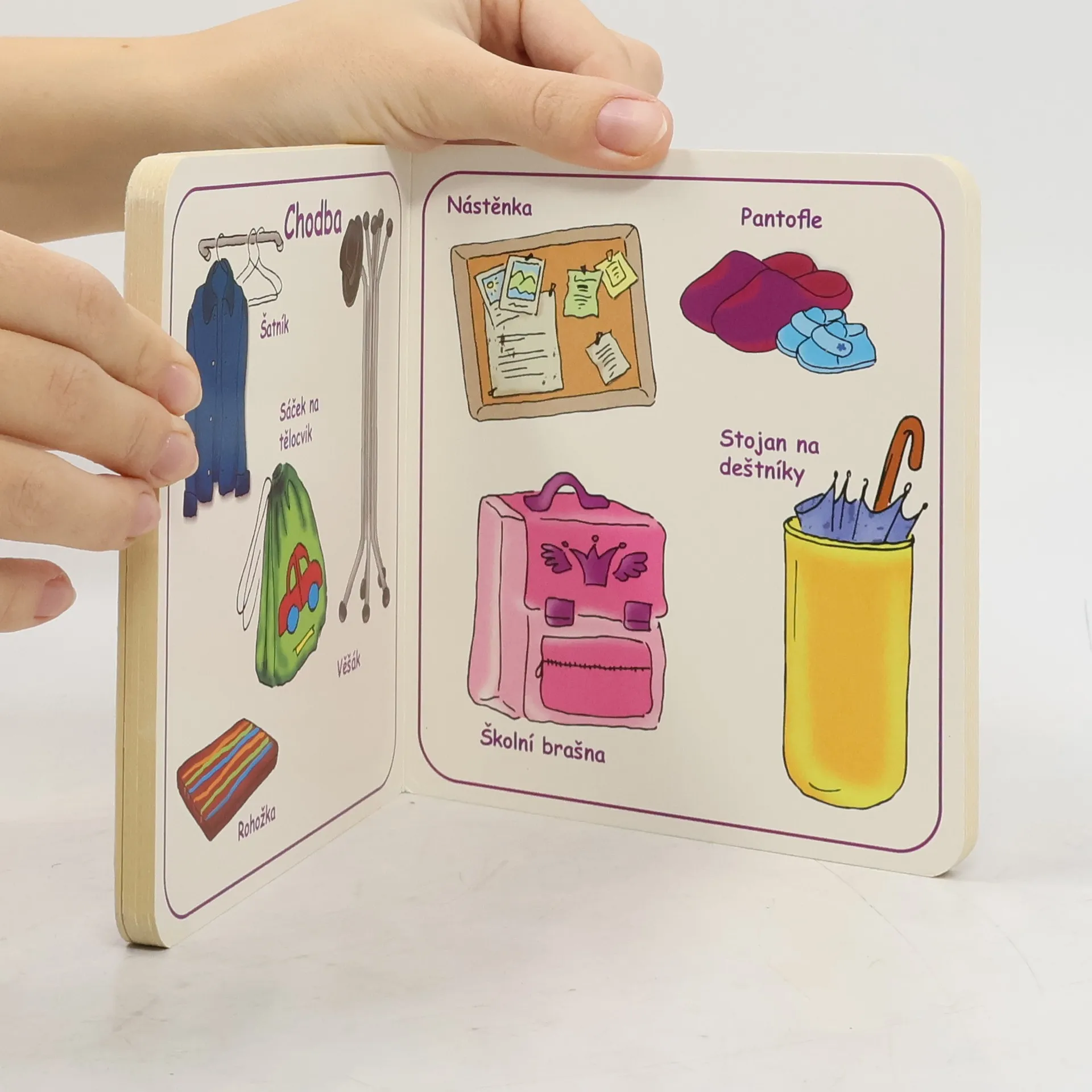 Kniha plná obrázků na téma Domov. Děti se tak učí poznávat věci zábavnou formou.