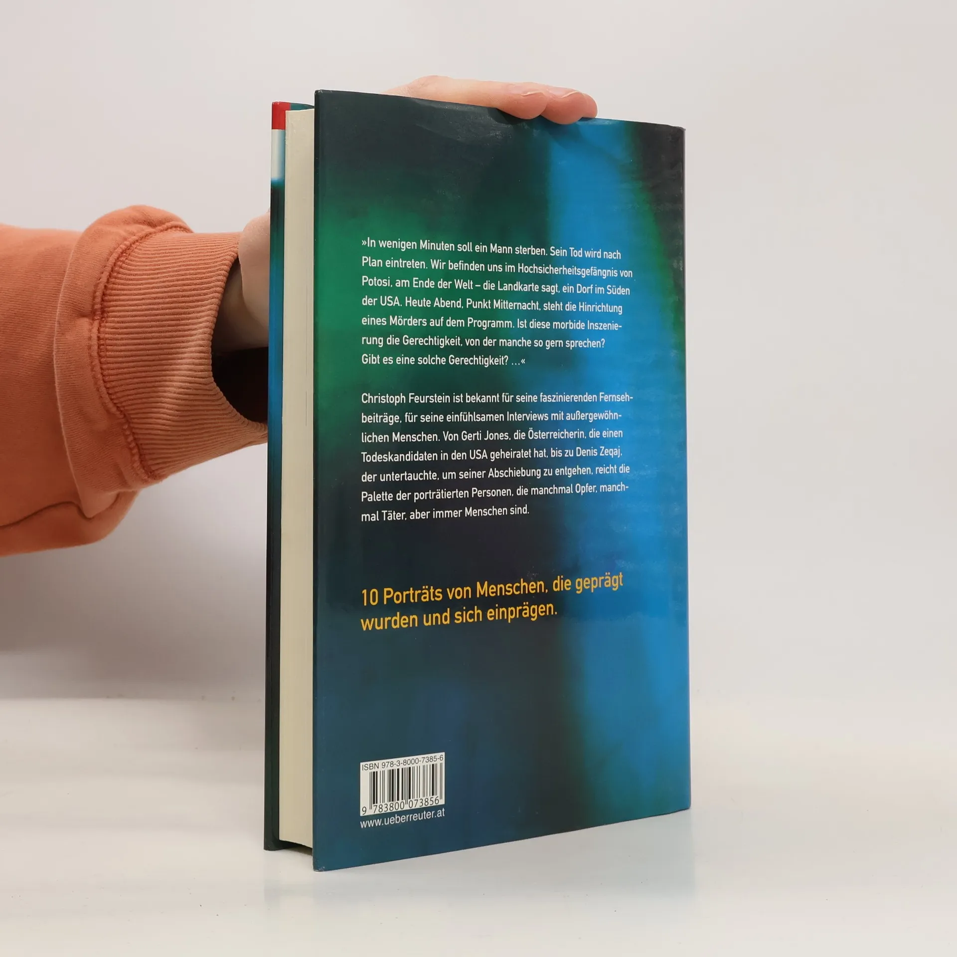 Christoph Feurstein ist bekannt für seine einfühlsamen Interviews mit außergewöhnlichen Menschen. Von Gerti Jones, der Österreicherin, die einen Todeskandidaten in den USA geheiratet hat und die der Autor über drei Jahre lang begleitet hat, bis zu Denis Zequaj, der untertauchte, um seiner Abschiebung zu entgehen, reicht die Palette der in seinem ersten Buch vorgestellten Personen. Es sind Porträts von Opfern, von Tätern. Es sind Porträts von Menschen, die geprägt wurden und sich einprägen. Porträts, die zum Nachdenken anregen.