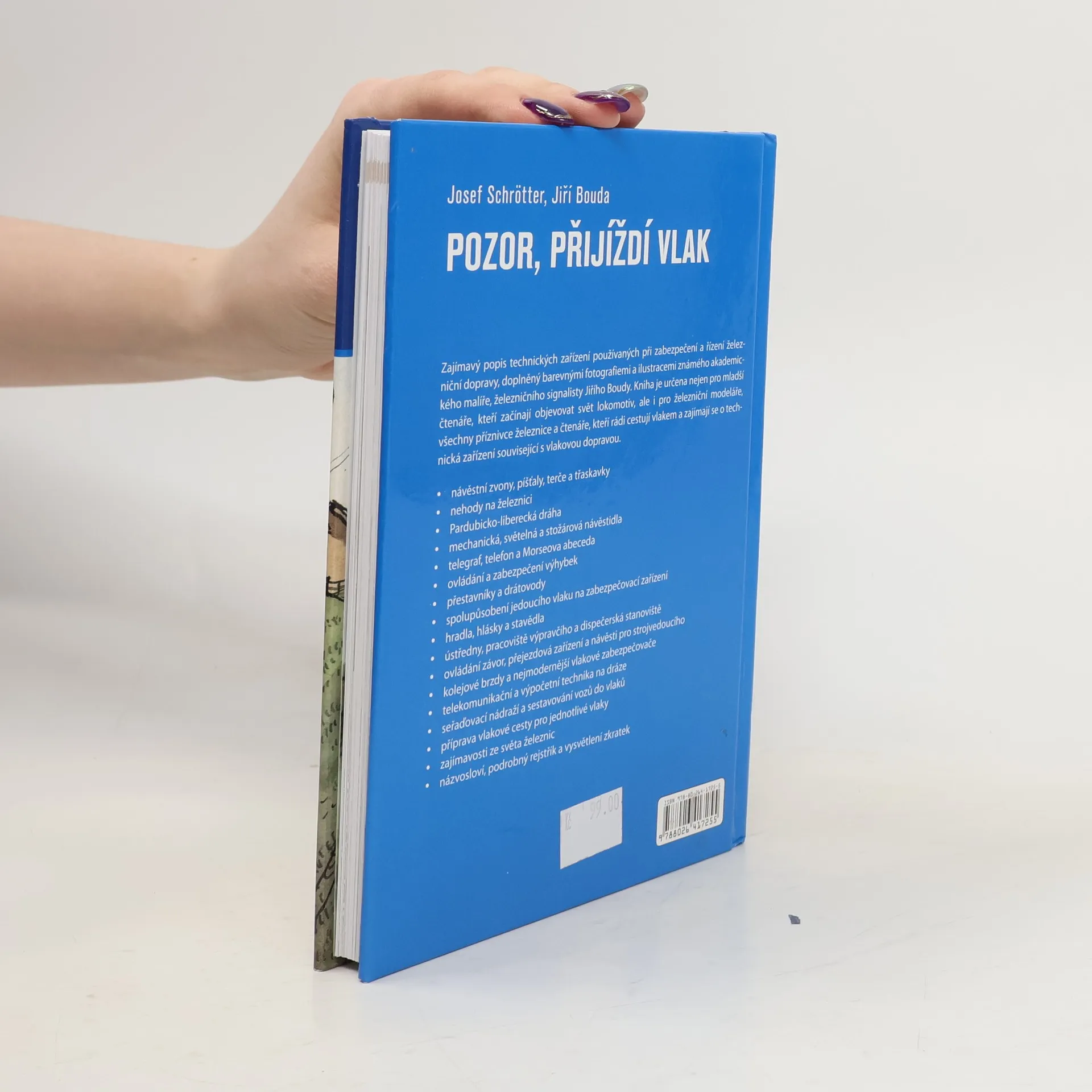 Ilustrovaná knížka s obrázky akademického malíře Jiřího Boudy pro všechny, kdo se zajímají o lokomotivy, vlaková nádraží, zabezpečení dopravy a další zajímavosti spojené s řízením provozu na železnici.Kniha je určená zejména pro mladší čtenáře, železniční modeláře a zájemce,kteří objevují svět lokomotiv. Je doplněna barevnými kresbami a fotografiemi lokomotiv, nákladních vlaků, nádraží, traťové mechaniky, technických zařízení pro zabezpečení dopravy a staničních zařízení. Čtenáři v knize najdou kapitoly o parních, elektrických a motorových lokomotivách, o vlacích nové generace, zabezpečení provozu na železnici, technických zajímavostech a v neposlední řadě i podrobný rejstřík, seznam názvosloví a zkratek.