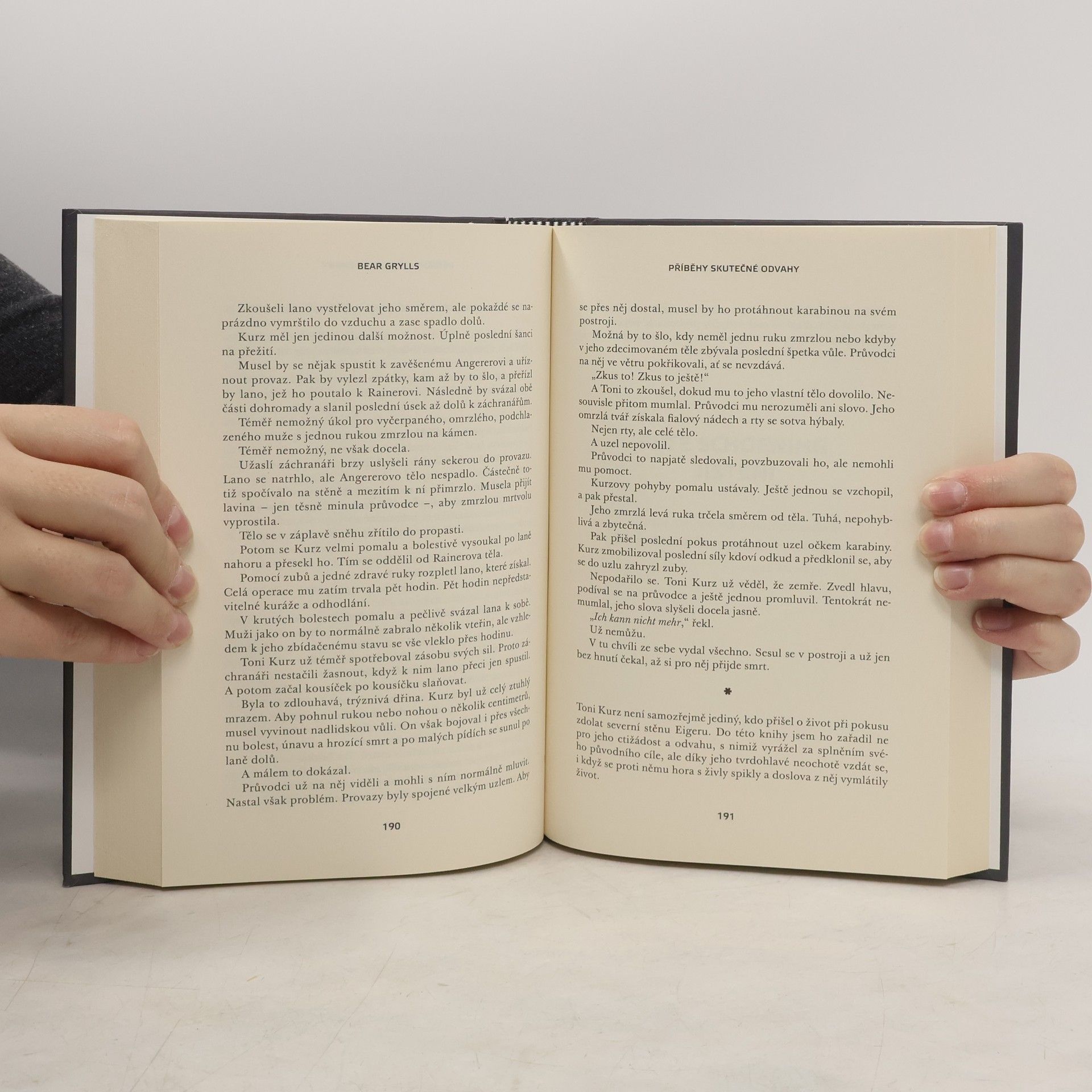 Bear ve své nové knize líčí strhující příběhy dobrodruhů, průzkumníků, vojáků, špionů i obyčejných lidí, kteří se odmítli vzdát i v těch nejzoufalejších situacích – příběhy, které ho inspirují po celý život. U některých vám přeběhne mráz po zádech, u jiných vám naskočí husí kůže po celém těle – přežití nebylo nikdy procházkou růžovým sadem. Všechny se však vyznačují dojemnou statečností, nezlomnou houževnatostí tváří v tvář smrti a mimořádnou psychickou odolností mužů a žen, již měli jedno společné – skutečnou odvahu.