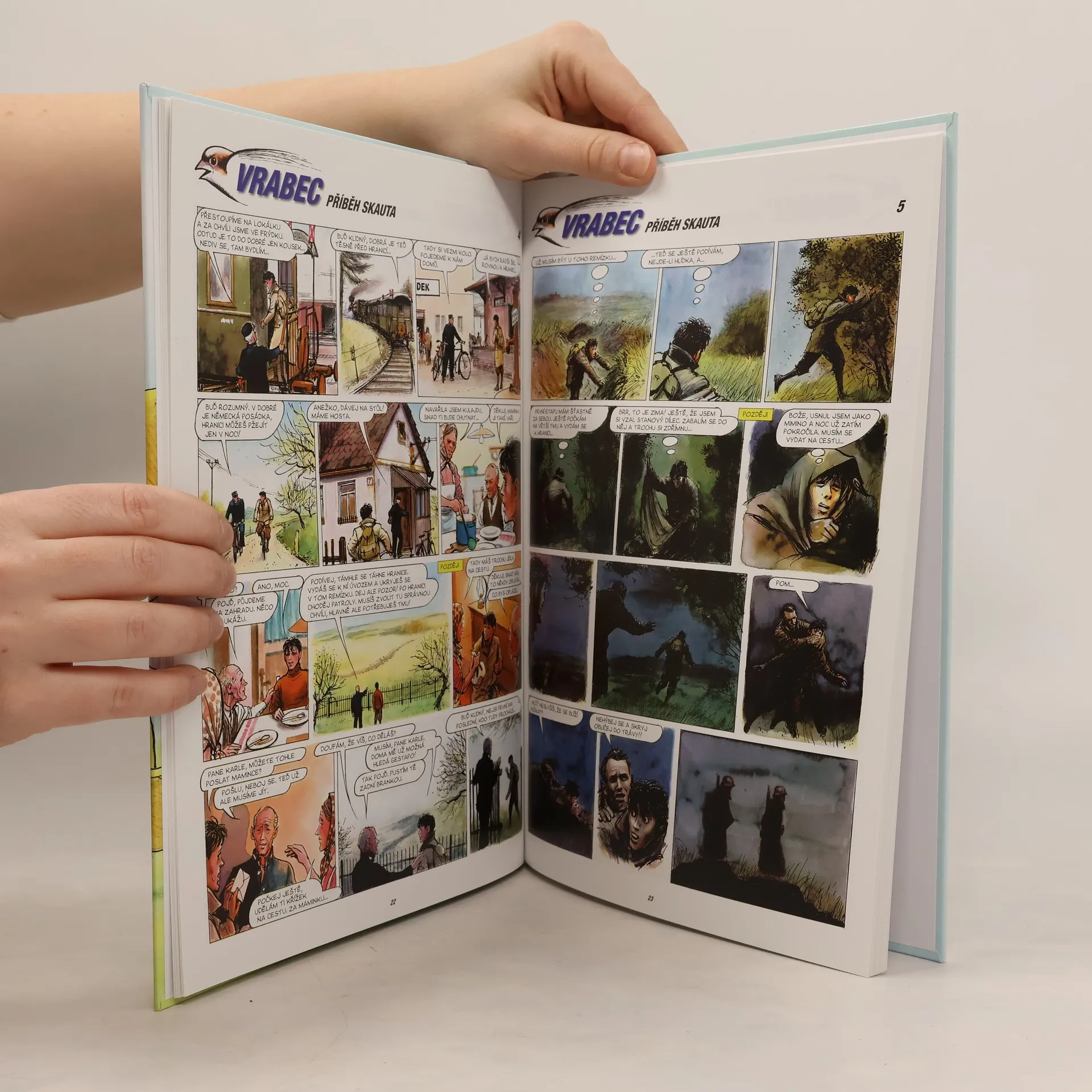 Legendární komiks Václava Šorela s názvem Vrabec o mladém skautu Janu Nováčkovi, který touží stát se pilotem a přispět za války k osvobození Československa, začal vycházet nejprve v časopise ABC. Nyní se po letech vrací v knižním vydání, ve kterém se čtenáři konečně dočkají celého a rozšířeného příběhu o dobrodružné a nebezpečné cestě českých letců přes Polsko a Francii až do Velké Británie, kde konečně svým umem a odvahou mohli přispět ke konečnému vítězství nad nacisty. Napínavý komiks o mladém hrdinovi je doplněn také řadou dobových fotografií a obrázků nejčastěji využívaných letounů.