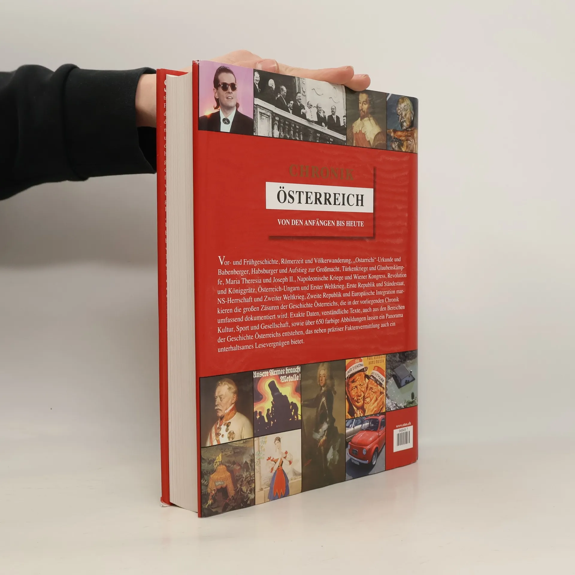 Vor- und Frühgeschichte, Römisches, Reich, Völkerwanderung, Babenberger, Habsburger, Aufstieg zur Grossmacht, Kaiserreich, Doppelmonarchie, Erste Republik, NS-Herrschaft und zweite Republik markieren die grossen Zäsuren der Geschichte Österreichs, die in der vorliegenden Chronik in allen Bereichen - Politik, Wirtschaft, Wissenschaft, Technik, Kunst, Kultur, Sport und Gesellschaft - umfassend dokumentiert wird. Exakte Daten, verständlich geschriebene Texte sowie mehr als über 700 farbige Abbildungen lassen ein Panorama der Geschichte Österreichs entstehen, das neben präziser Faktenvermittlung auch ein unterhaltsames Lesevergnügen bietet.