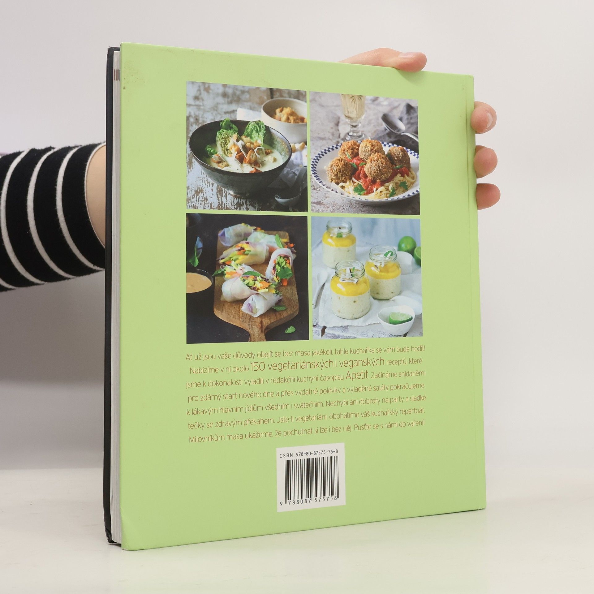Vegetariánská kuchařka z Edice Apetit nabízí víc než 150 vegetariánských a veganských receptů, které jsme připravili a uvařili v redakční kuchyni časopisu Apetit. Neřídíme se přitom žádnou ideologií – spojovacím prvkem je radost z jídla a vaření. V knize najdete recepty na každý den - všední i sváteční. Začínáme snídaněmi pro zdárný start nového dne a přes vydatné polévky a vyladěné saláty pokračujeme k lákavým jídlům. Nechybí ani dobroty na party a sladké tečky se zdravým přesahem (bezlepkové, bez laktózy, bez cukru atd.). Veganské recepty jsou jasně označeny, u vegetariánských receptů často nabízíme i veganskou varinatu. Kapitoly: Na menší hlad: snídaně a svačiny Pevný základ: polévky Saláty Pro každý den Zvláštní příležitosti Mlsání s přidanou hodnoutou Servis