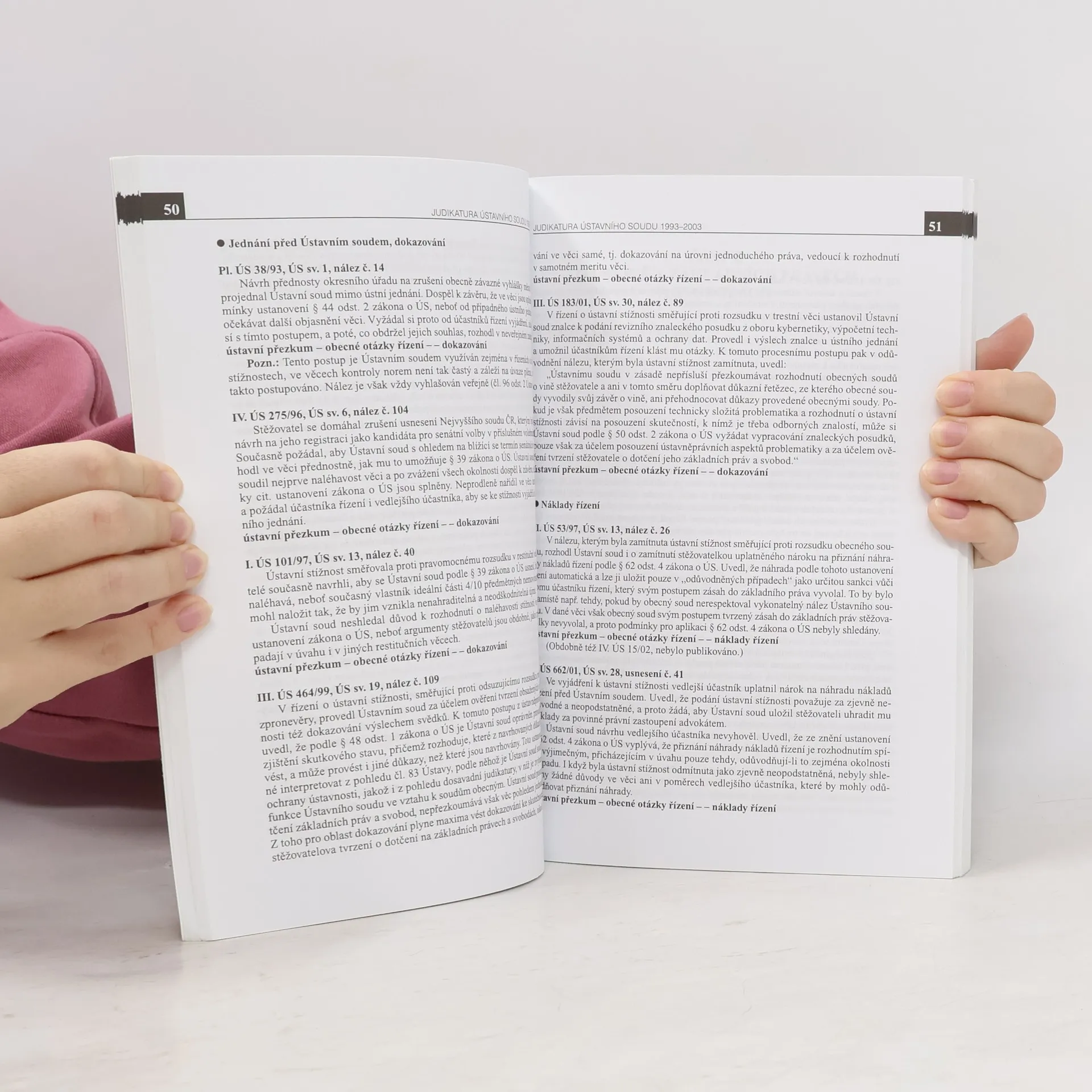 Kniha je prvním souborným zpracováním veškeré judikatury Ústavního soudu za prvních deset let jeho existence. Publikace je rozčleněna do tří částí - v první se zabývá procesními věcmi, v části druhé veškerou významnou judikaturou věnované Ústavě ČR a Listině základních práv a svobod, třetí část je přehledem judikatury s problematikou restitucí a rehabilitací. Je to skvělá pomůcka pro každého advokáta, soudce a podnikového právníka, umožňuje snadné a rychlé vyhledávání díky přehlednému uspořádání a praktickému věcnému rejstříku.