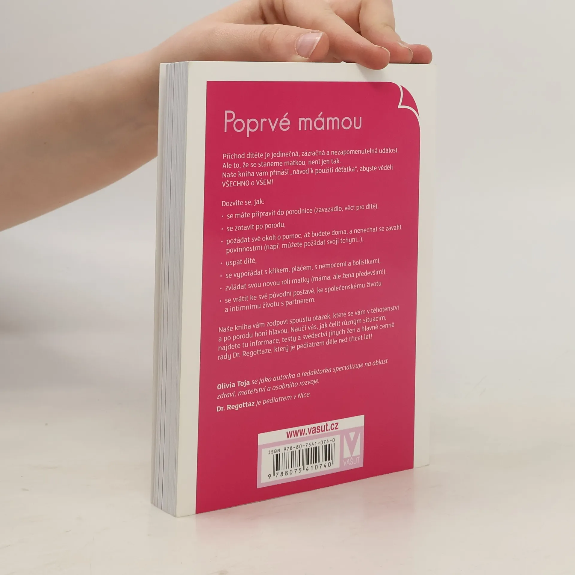 Příchod dítěte je jedinečná, zázračná a nezapomenutelná událost. Ale to, že se staneme matkou, není jen tak. Naše kniha vám přináší „návod k použití děťátka“, abyste věděli VŠECHNO o VŠEM! Dozvíte se, jak: • se máte připravit do porodnice (zavazadlo, věci pro dítě), • se zotavit po porodu, • požádat své okolí o pomoc, až budete doma, a nenechat se zavalit povinnostmi (např. můžete požádat svoji tchyni…), • uspat dítě, • se vypořádat s křikem, pláčem, s nemocemi a bolístkami, • zvládat svou novou roli matky (máma, ale žena především!), • se vrátit ke své původní postavě, ke společenskému životu a intimnímu životu s partnerem. Naše kniha vám zodpoví spoustu otázek, které se vám v těhotenství a po porodu honí hlavou. Naučí vás, jak čelit různým situacím, najdete tu informace, testy a svědectví jiných žen a hlavně cenné rady Dr. Regottaze, který je pediatrem déle než třicet let!