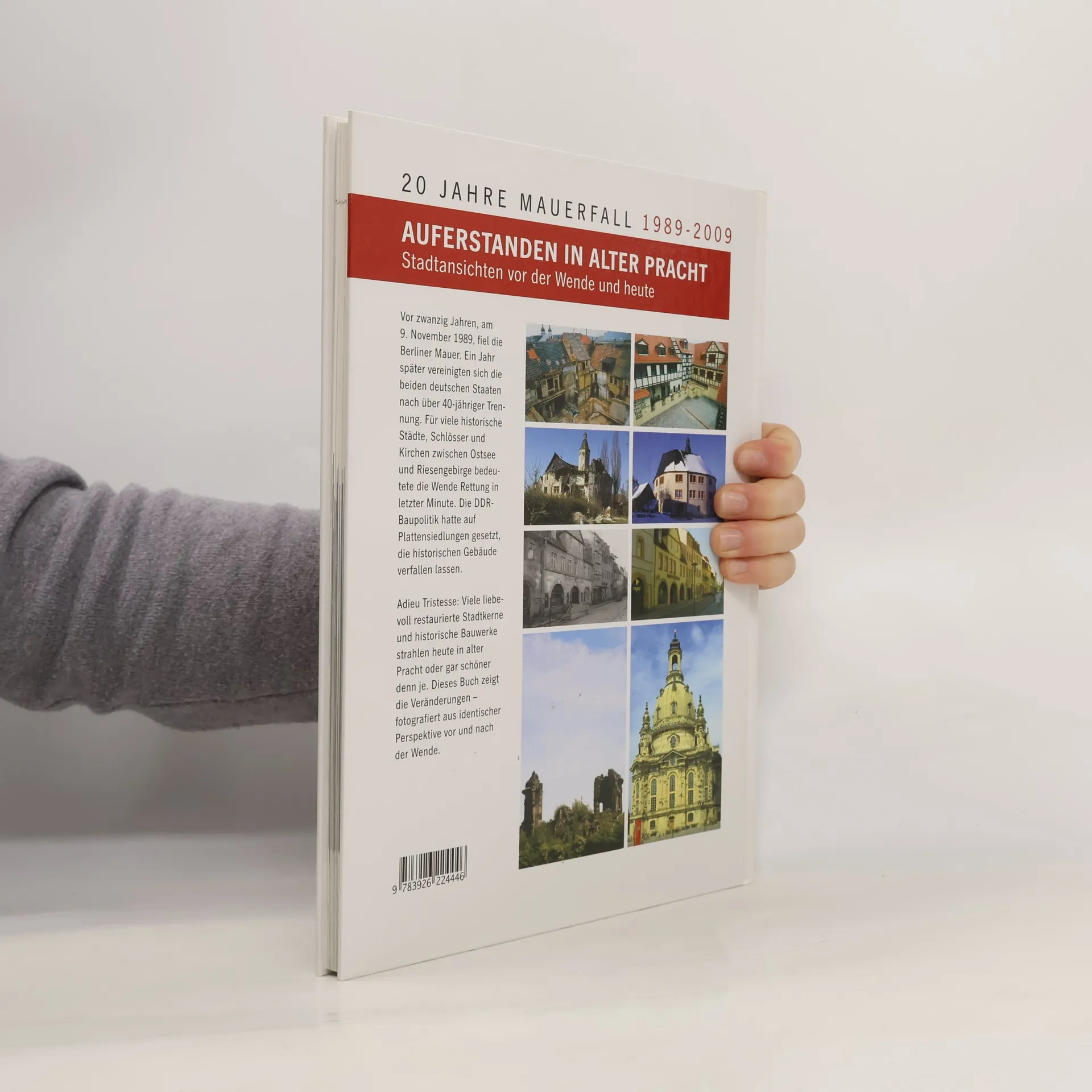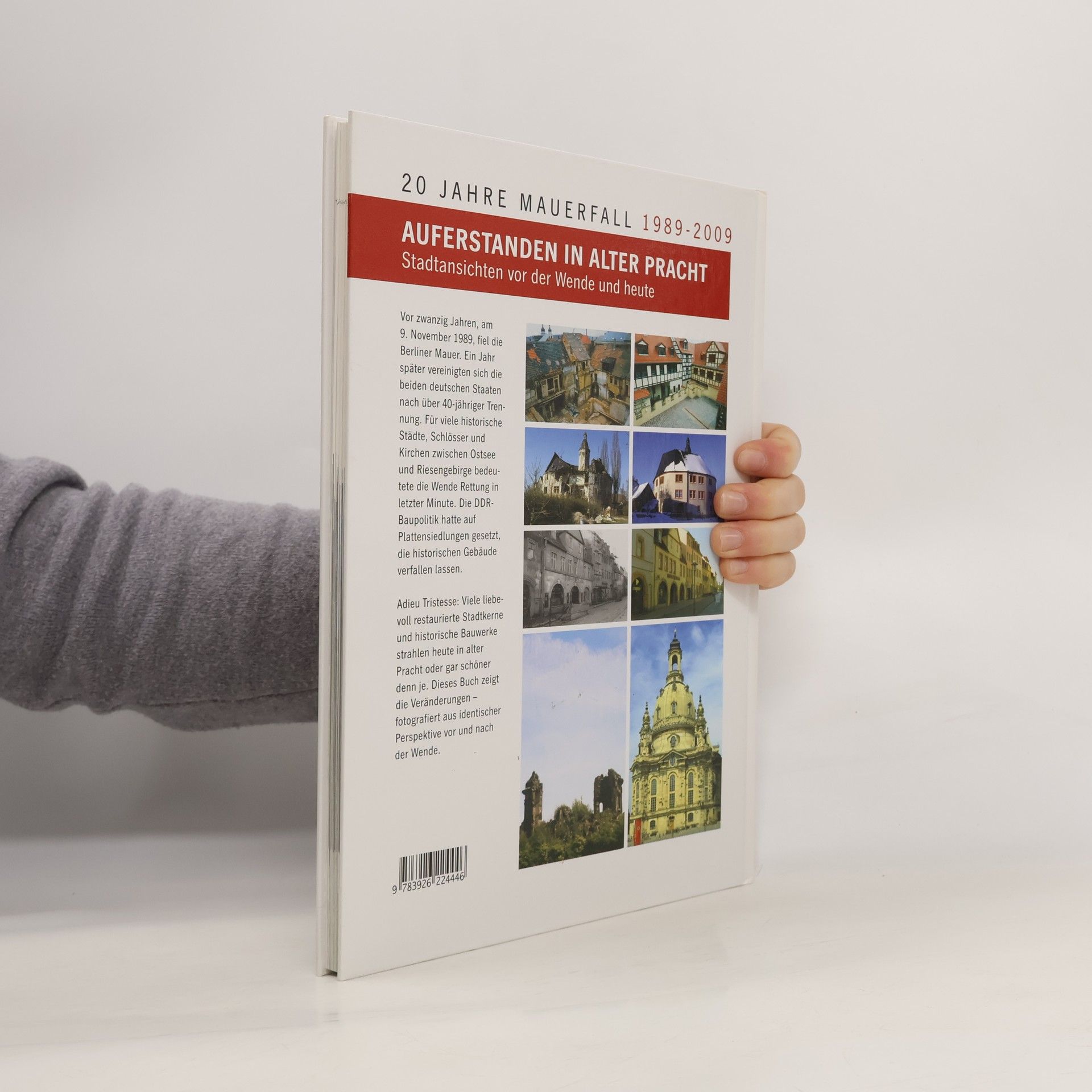 Die Wende bedeutete für viele alte Stadtkerne und historische Bauten in der DDR die Rettung in letzter Minute. Der Bildband „Auferstanden in alter Pracht“ dokumentiert die Veränderung der letzten 20 Jahre. Neben Fotos von 1989 stehen aktuelle Bilder – aufgenommen aus identischer Perspektive. Ein eindrucksvoller Bildband gegen das Vergessen. Mit einem Vorwort von Bundesbauminister Wolfgang Tiefensee.