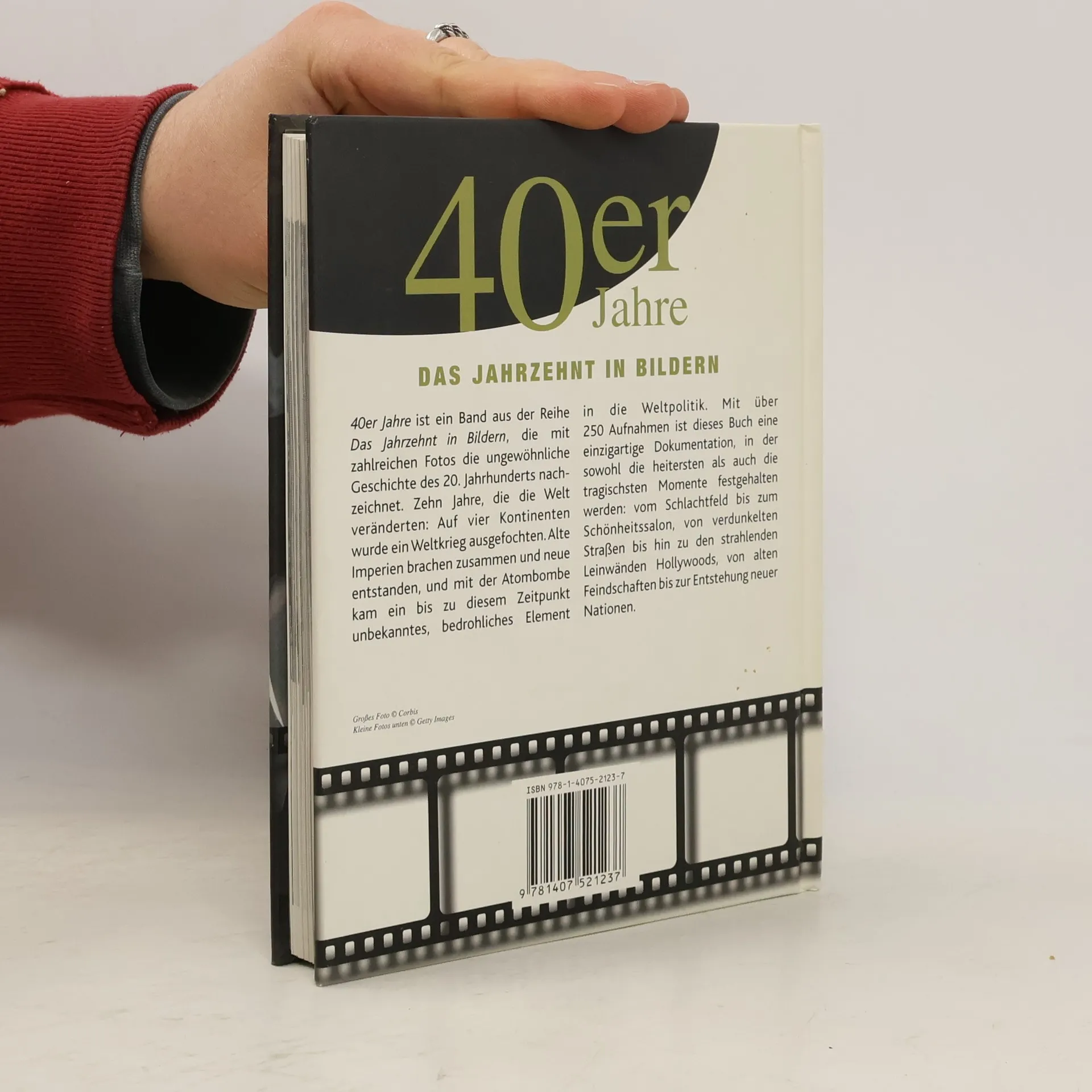 40er Jahre ist ein Band aus der Reihe "Das Jahrzehnt in Bildern", die mit zahlreichen Fotos die ungewöhnliche Geschichte des 20. Jahrhunderts nachzeichnet. Zehn Jahre, die die Welt veränderten: Auf vier Kontinenten wurde ein Weltkrieg ausgefochten. Alte Imperien brachen zusammen und neue entstanden, und mit der Atombombe kam ein bis zu diesem Zeitpunkt unbekanntes, bedrohliches Element in die Weltpolitik. Mit über 250 Aufnahmen ist dieses Buch eine einzigartige Dokumentation, in der sowohl die heitersten als auch die tragischsten Momente festgehalten werden: vom Schlachtfeld bis zum Schönheitssalon, von verdunkelten Straßen bis hin zu den strahlenden Leinwänden Hollywoods, von alten Feindschaften bis zur Entstehung neuer Nationen.