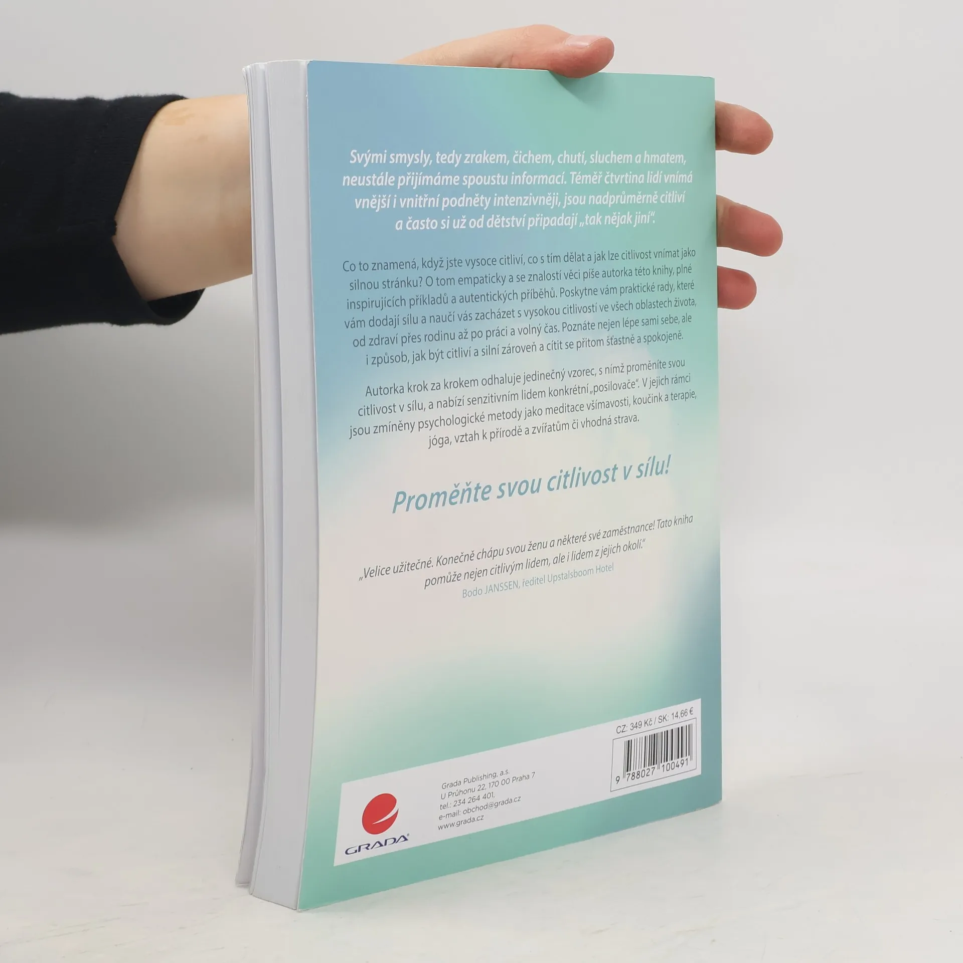 Jak proměnit svou citlivost v sílu. Svými smysly, tedy zrakem, čichem, chutí, sluchem a hmatem, neustále přijímáme spoustu informací. Téměř čtvrtina lidí vnímá vnější i vnitřní podněty intenzivněji, jsou nadprůměrně citliví a často si už od dětství připadají „tak nějak jiní“. Co to znamená, když jste vysoce citliví, co s tím dělat a jak lze citlivost vnímat jako silnou stránku? O tom empaticky a se znalostí věci píše autorka této knihy, plné inspirujících příkladů a autentických příběhů. Poskytne vám praktické rady, které vám dodají sílu a naučí vás zacházet s vysokou citlivostí ve všech oblastech života, od zdraví přes rodinu až po práci a volný čas. Poznáte nejen lépe sami sebe, ale i způsob, jak být citliví a silní zároveň a cítit se přitom šťastně a spokojeně. Autorka krok za krokem odhaluje jedinečný vzorec, s nímž proměníte svou citlivost v sílu, a nabízí senzitivním lidem konkrétní „posilovače“. V jejich rámci jsou zmíněny psychologické metody jako např. meditace všímavosti, koučink a terapie, jóga, vztah k přírodě a zvířatům či vhodná strava.
