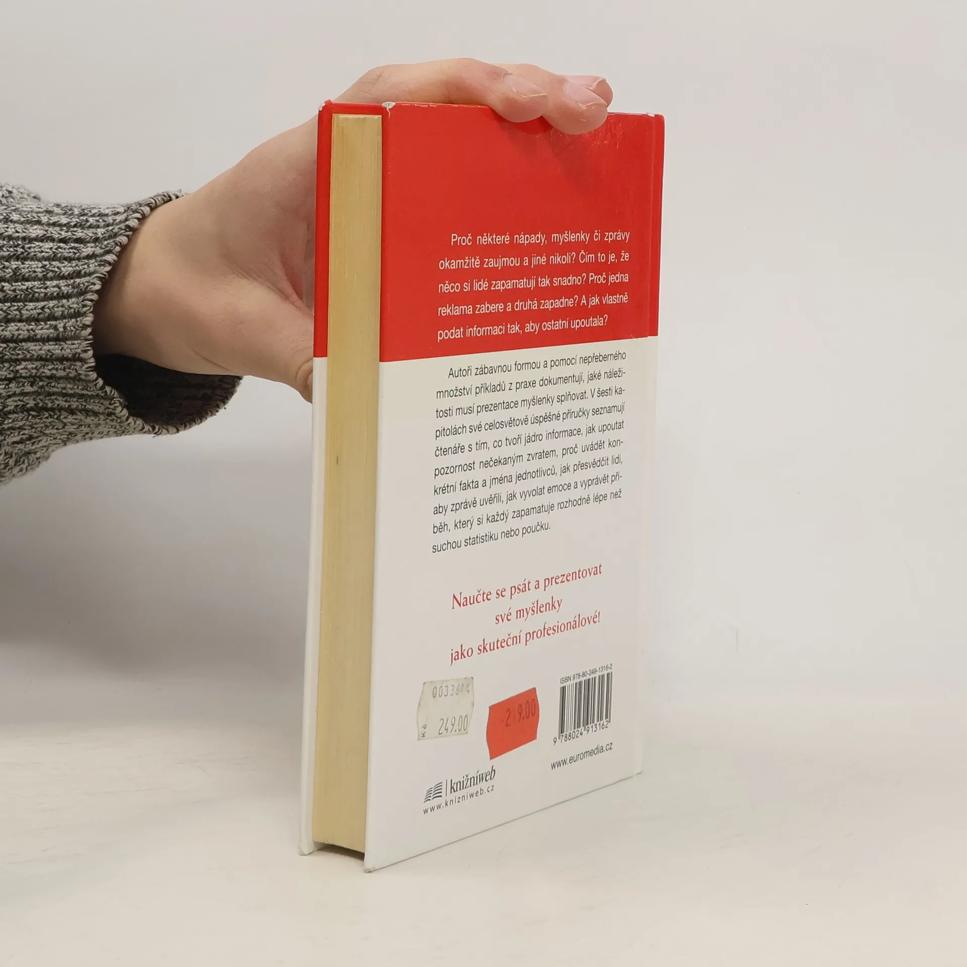 Proč některé nápady, myšlenky či zprávy okamžitě zaujmou a jiné nikoli? Čím to je, že něco si lidé zapamatují tak snadno? Proč jedna reklama zabere a druhá zapadne? Autoři zábavnou formou a pomocí nepřeberného množství příkladů z praxe dokumentují, jaké náležitosti musí prezentace myšlenky splňovat. V šesti kapitolách své celosvětově úspěšné příručky seznamují čtenáře s tím, co tvoří jádro informace, jak upoutat pozornost nečekaným zvratem, proč uvádět konkrétní fakta a jména jednotlivců, jak přesvědčit lidi, aby zprávě uvěřili, jak vyvolat emoce a vyprávět příběh, který si každý zapamatuje rozhodně lépe než suchou statistiku nebo poučku.