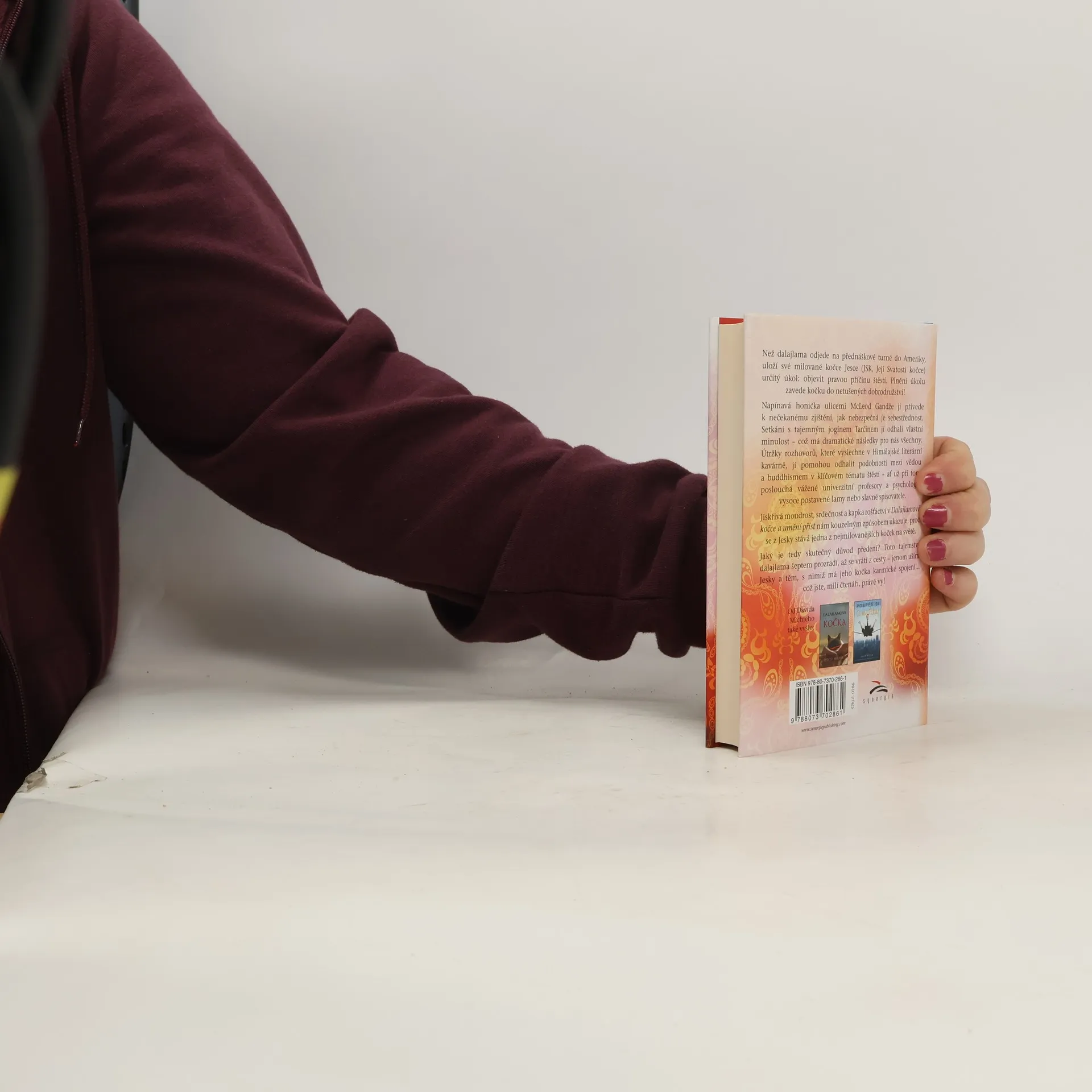 Než dalajlama odjede na přednáškové turné do Ameriky, uloží své milované kočce Jesce (JSK, Její Svatosti Kočce) určitý úkol: objevit pravou příčinu štěstí. Plnění úkolu zavede kočku do netušených dobrodružství! Napínavá honička ulicemi McLeod Gandže ji dovede k nečekanému zjištění o tom, jak je nebezpečná sebestřednost. Setkání s tajemným jogínem Tarčinem jí odhalí vlastní minulost – což má dramatické následky pro nás pro všechny. Útržky rozhovorů, které vyslechne v Himálajské literární kavárně, jí pomůžou odhalit podobnosti mezi vědou a buddhismem v klíčovém tématu štěstí – ať už při tom poslouchá vážené univerzitní profesory a psychology, vysoce postavené lamy nebo slavné spisovatele.Jiskřivá moudrost, srdečnost a kapka rošťáctví v Dalajlamově kočce a umění příst nám kouzelným způsobem ukazuje, proč se z Jesky stává jedna z nejmilovanějších koček na světě. Jaký je tedy skutečný důvod předení? Toto tajemství dalajlama šeptem prozradí, až se vrátí z cesty – jenom uším Jesky a těm, s nimiž má jeho kočka karmické spojení… což jste, milí čtenáři, právě vy! Tato knížka je volným pokračováním knížky Dalajlamova kočka.
