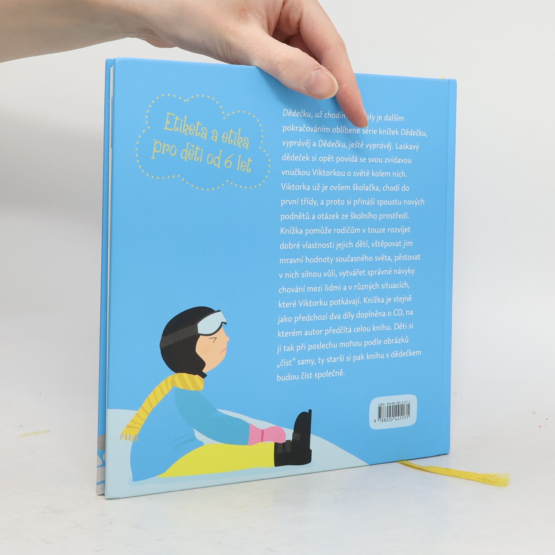 Dědečku, už chodím do školy je dalším pokračováním oblíbené série knížek Dědečku, vyprávěj a Dědečku, ještě vyprávěj. Laskavý dědeček si opět povídá se svou zvídavou vnučkou Viktorkou o světě kolem nich. Viktorka už je ovšem školačka, chodí do první třídy, a proto si přináší spoustu nových podnětů a otázek ze školního prostředí. Knížka pomůže rodičům v touze rozvíjet dobré vlastnosti jejich dětí, vštěpovat jim mravní hodnoty současného světa, pěstovat v nich silnou vůli, vytvářet správné návyky chování mezi lidmi a v různých situacích, které Viktorku potkávají. Děti si ji tak při poslechu mohou podle obrázků „číst“ samy, ty starší si pak knihu s dědečkem budou číst společně.