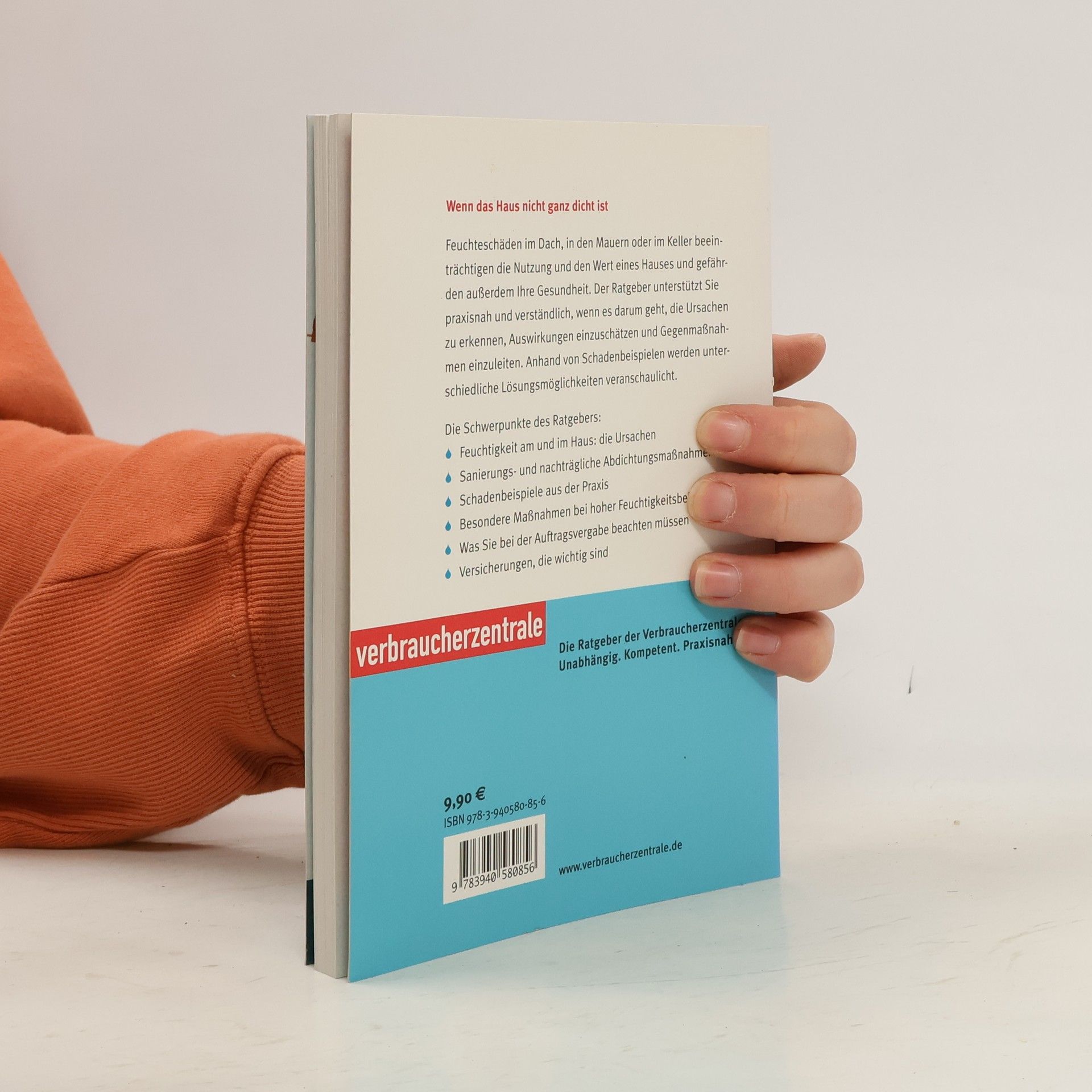 Vor allem Menschen, die unter dem Dach oder im Souterrain wohnen, kennen sie oft: Feuchtigkeitsschäden in der Wohnung. Das Dach oder die Regenrinne, fehlende Dränagen oder Abdichtungen sind häufig Gründe, dass Wasser in die Wohnräume kommt. Doch Wasser sucht sich auch an anderen Stellen einen Weg – sehr zum Ärger der Bewohner. Als Laie erkennt man die Ursachen oft nicht auf sofort. Hier hilft ein Ratgeber der Verbraucherzentrale. Praktische Fallbeispiele veranschaulichen die möglichen Schäden und zeigen die Sanierungsschritte. Betroffene erfahren, was sie selber tun können und wo sie professionelle Unterstützung brauchen. Wer ist mein Ansprechpartner? Wie kann man vorbeugen – wie einen entstandenen Schaden beheben? Die Sanierung kann teuer werden. Daher muss man die Zusammenarbeit mit Handwerkern genau planen. Außerdem informiert der Ratgeber, wann die Versicherung bei Feuchtigkeitsschäden am Haus eintritt und wann nicht.
