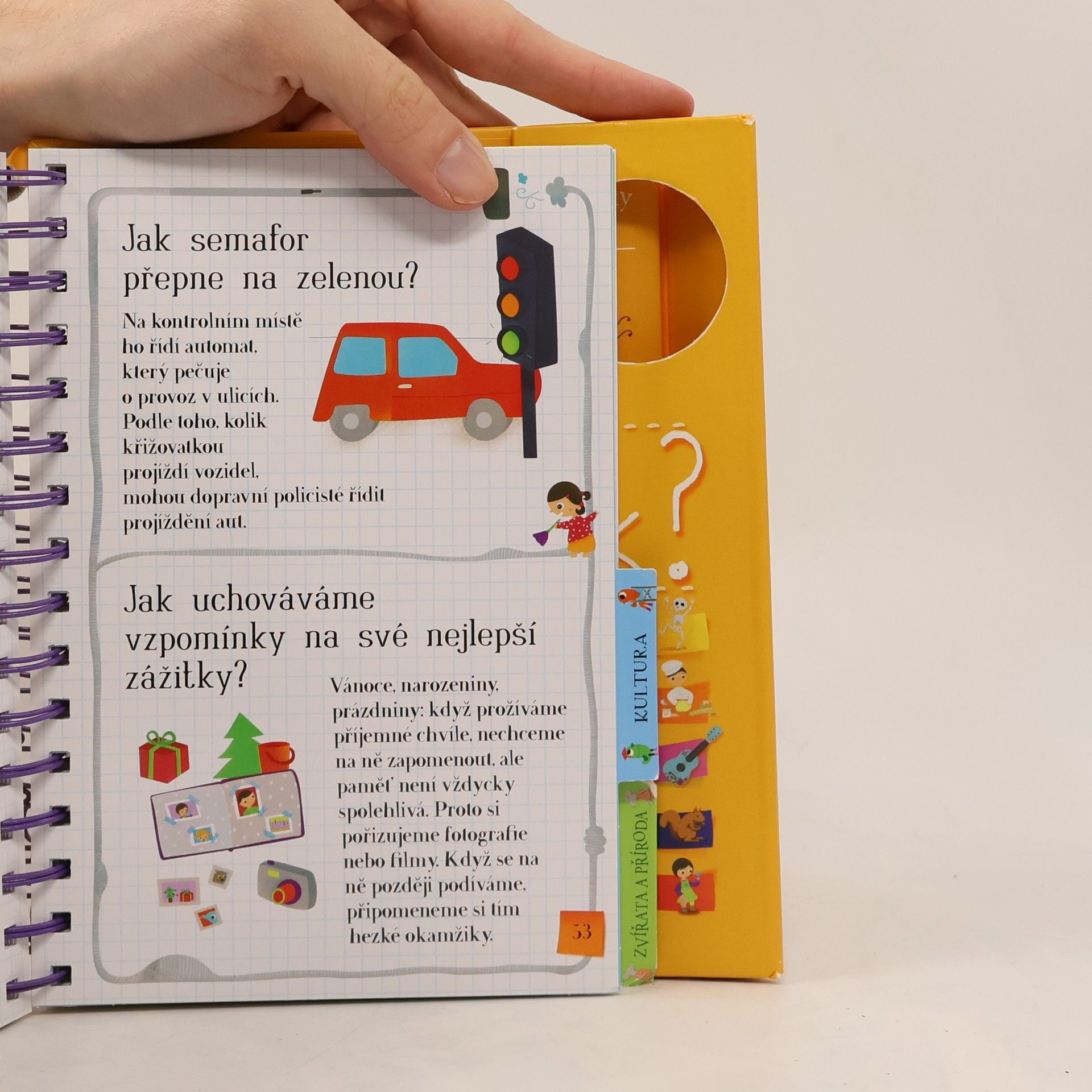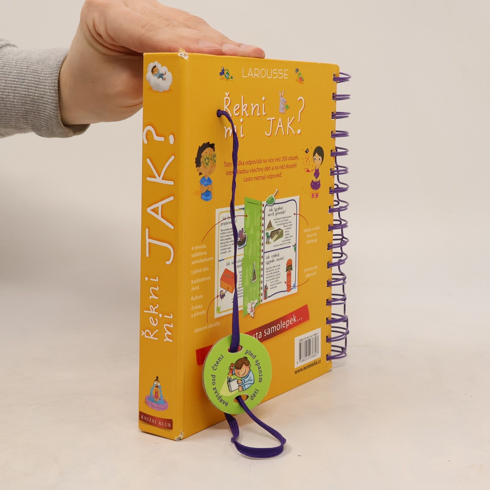 Další z úspěšných encyklopedií pro nejmenší obsahuje odpovědi na více než 200 běžných dětských otázek. Jsou seřazené podle témat do čtyř velkých oblastí: lidské tělo, každodenní život, kultura, zvířata a příroda. Dozvíte se například, jak dýchají rostliny, jak funguje klavír, jak se léčí zubní kazy, jak se dělá čokoláda, jak se jedlo ve středověku a spoustu, spoustu dalšího. Každou tematickou kapitolu doplňují samolepky a veselé obrázky.