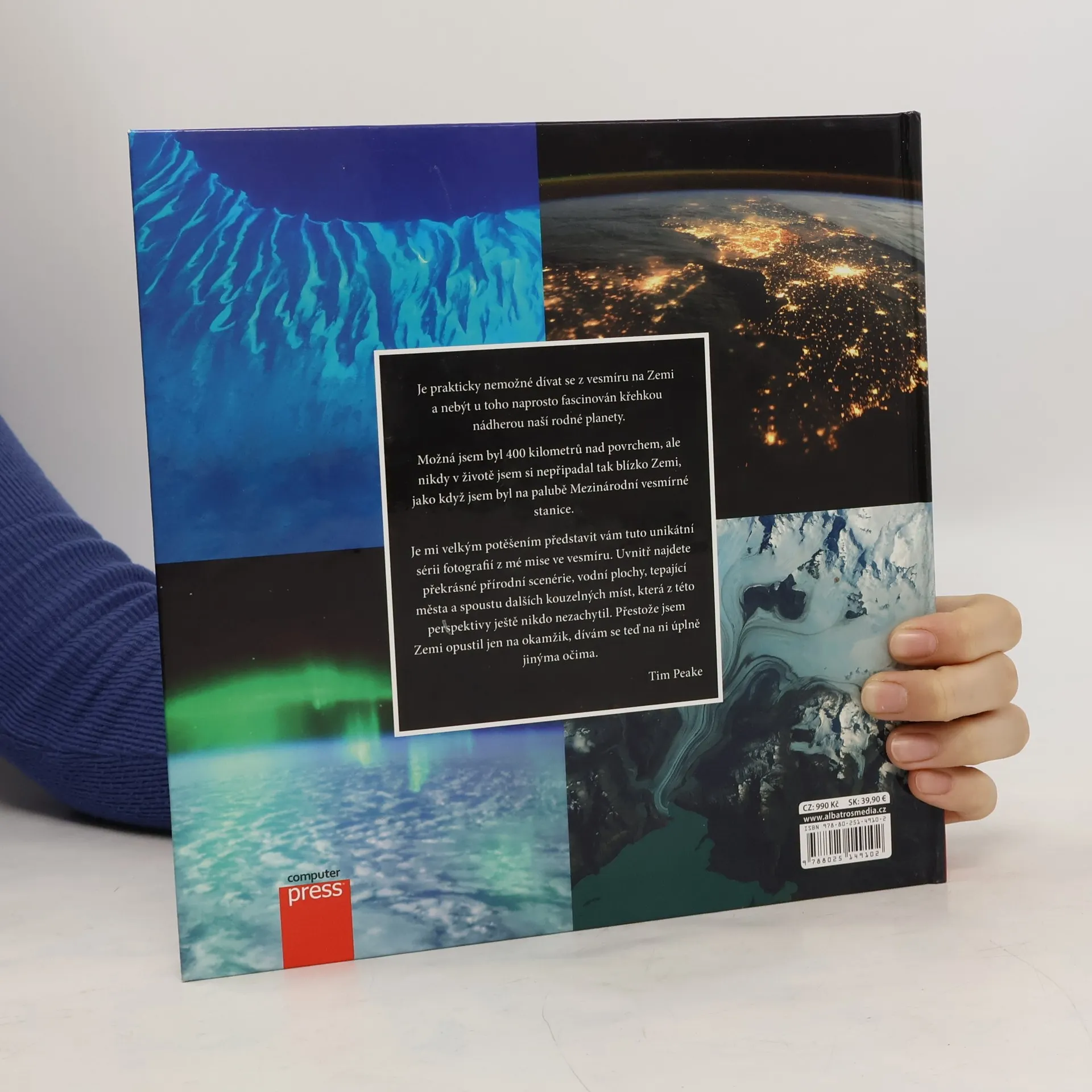 Kniha Haló, je to Země? nabízí unikátní sérii fotografií z mise známého britského astronauta Tima Peaka na Mezinárodní vesmírné stanici (ISS). Uvnitř najdete překrásné přírodní scenérie, vodní plochy, tepající města a spoustu dalších kouzelných míst, která z této perspektivy ještě nikdo předtím nezachytil. Kniha je jedinečnou sbírkou originálních a dechberoucích fotografií křehké krásy naší planety.