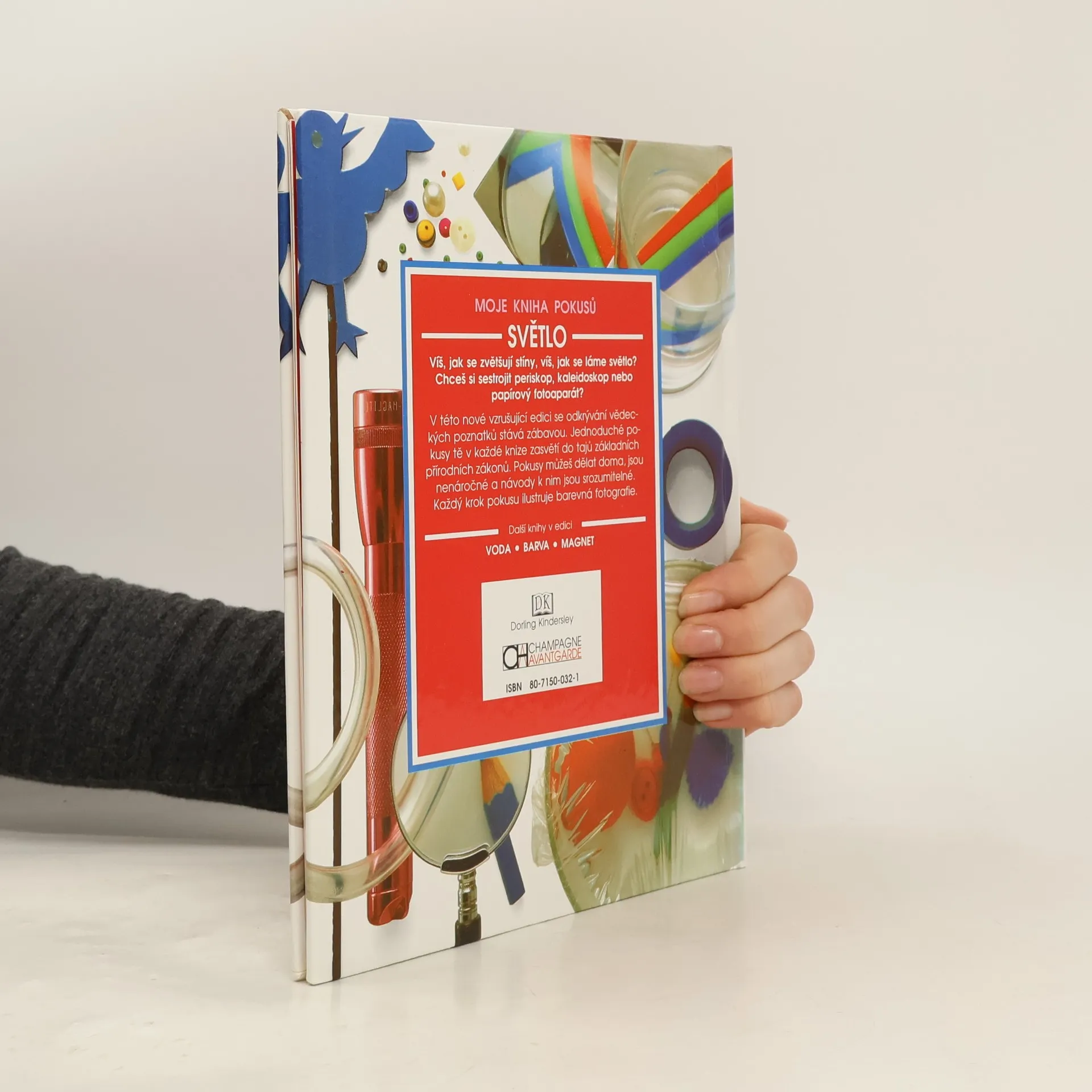 Moje kniha pokusů - SVĚTLO Z anglického originálu My science Book of Light, Dorling Kindersley, London 1991 přeložil Antonín Řežábek. Vydalo Vydavatelství CHAMPAGNE AVANTGARDE, Bulharská 72, 823 60 Bratislava, jako svoji 37. publikaci. Edice Moje kniha pokusů, svazek první. Vydání 1.