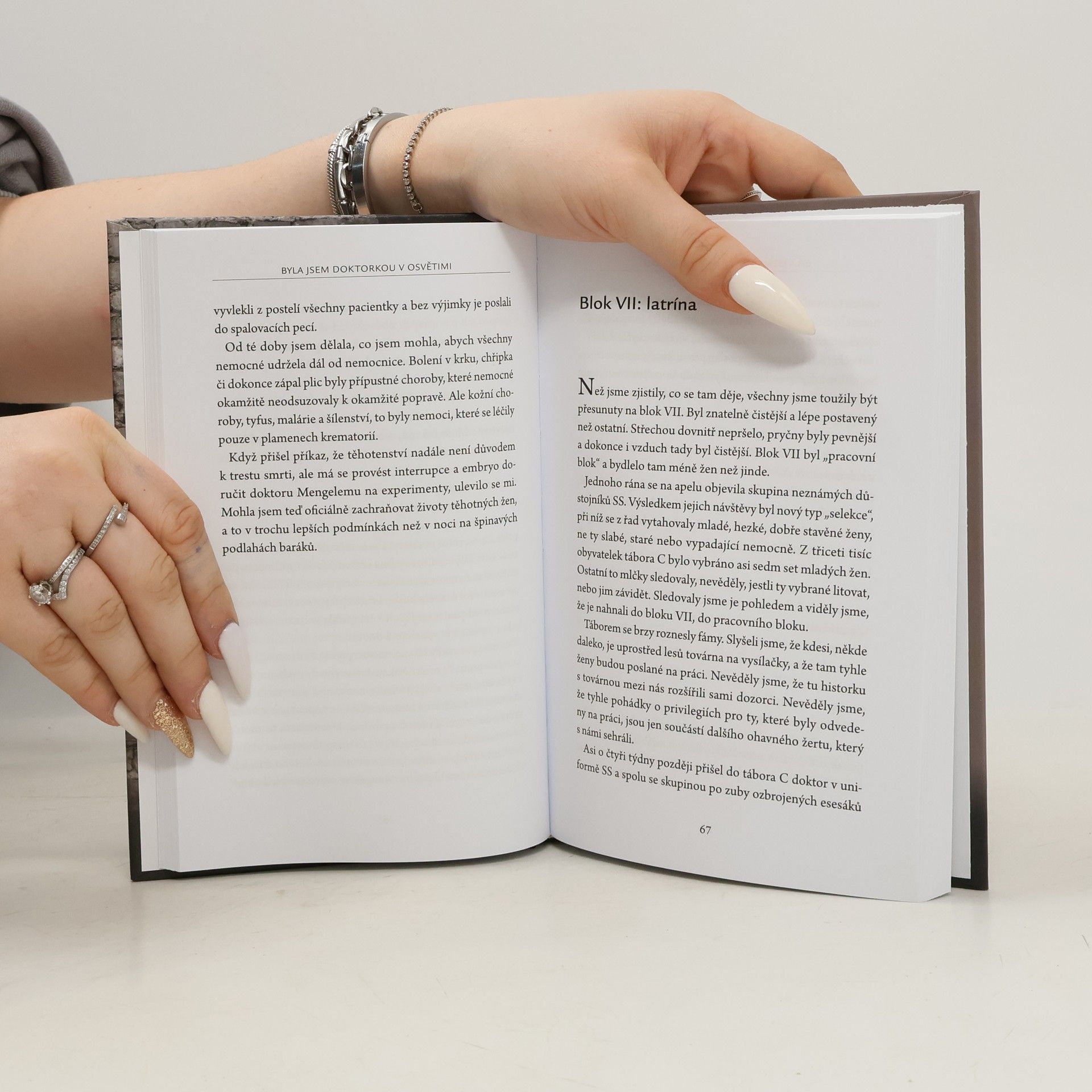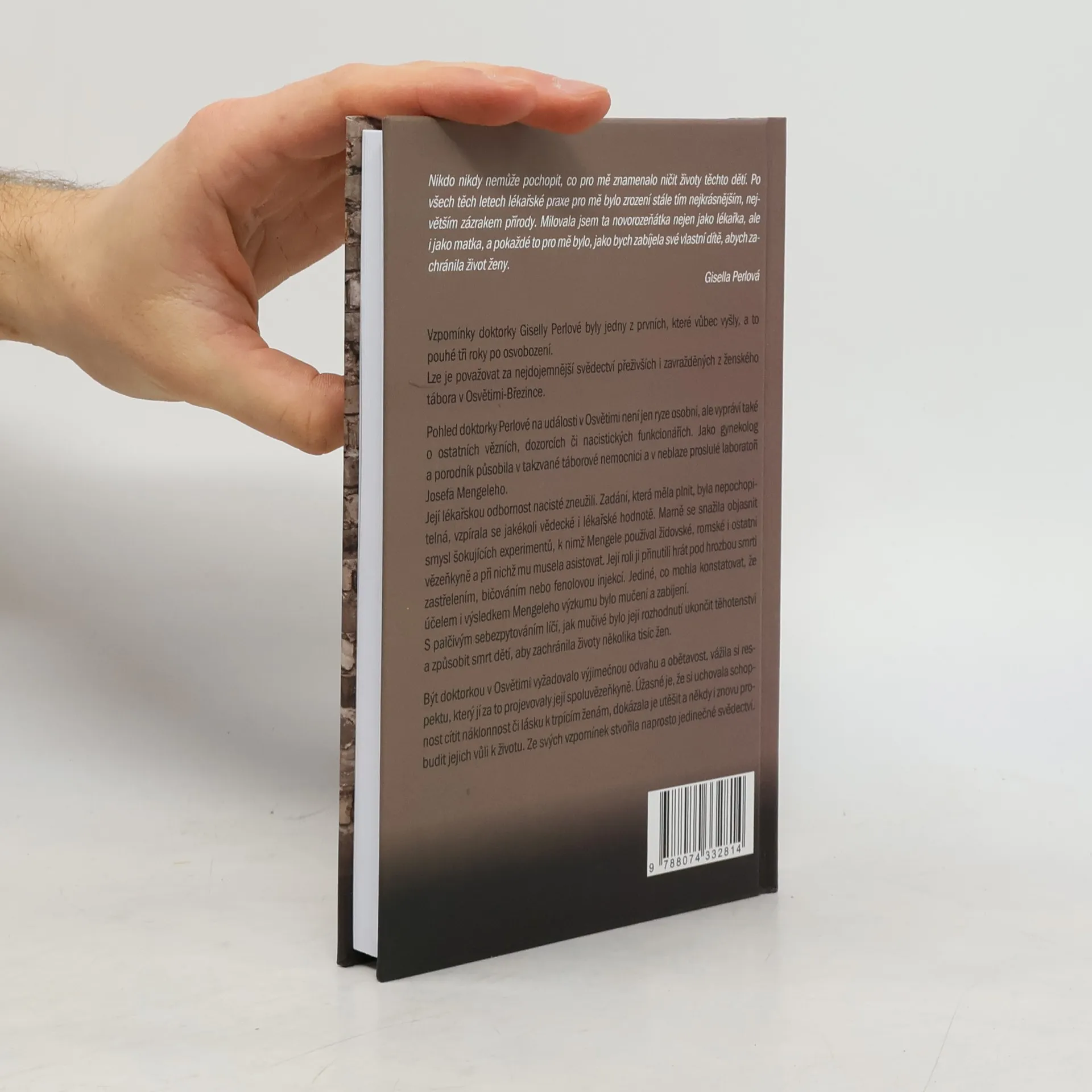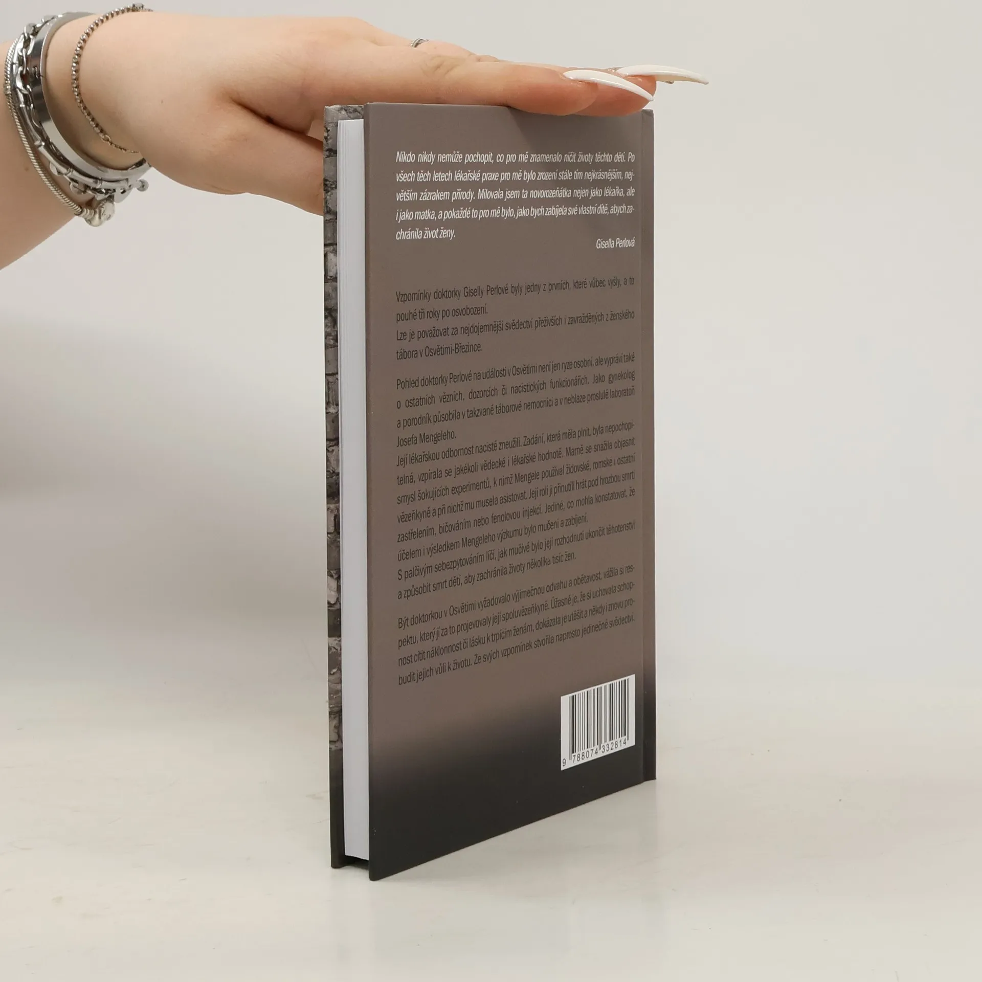 Vzpomínky doktorky Giselly Perlové, jedny z prvních publikovaných po osvobození, představují silné svědectví o životě v ženském táboře v Osvětimi-Březince. Její pohled na události není pouze osobní, ale zahrnuje i příběhy ostatních vězňů, dozorců a nacistických funkcionářů. Jako gynekolog a porodník pracovala v táborové nemocnici a v laboratoři Josefa Mengeleho, kde byla její odbornost zneužita. Úkoly, které dostávala, postrádaly jakýkoliv vědecký či lékařský smysl. Snažila se pochopit šokující experimenty, při nichž musela asistovat, ačkoliv věděla, že jejich cílem bylo mučení a zabíjení. Pod hrozbou smrti byla nucena hrát roli, která jí přinášela nesmírné morální dilema, zejména při rozhodování o ukončení těhotenství, aby zachránila životy žen. Její odvaha a obětavost jí vynesly respekt spoluvězenkyň. Přesto si dokázala uchovat empatii a lásku k trpícím ženám, což jí umožnilo je utěšovat a pomáhat jim znovu nalézt vůli k životu. Její vzpomínky tak tvoří jedinečné svědectví o nesmírně bolestivé realitě, kdy musela obětovat nevinné životy, aby ochránila jiné.