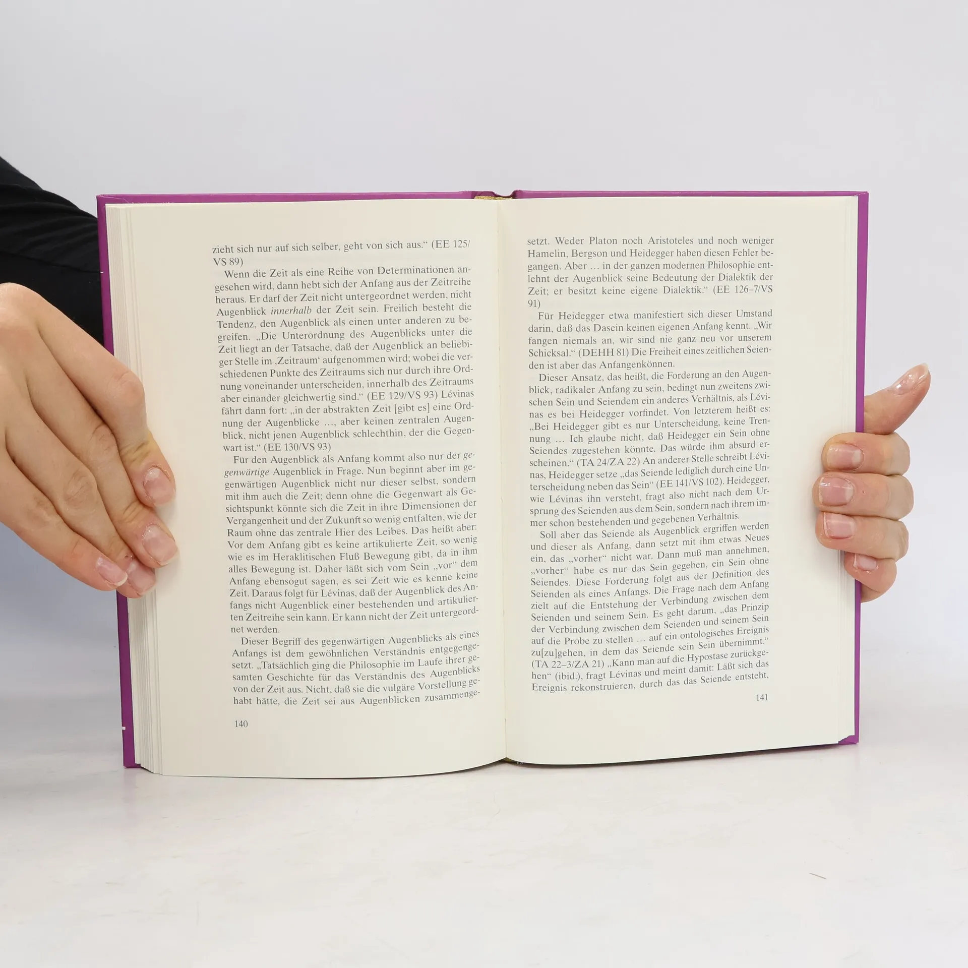 Dieses schon vor dem Zweiten Weltkrieg konzipierte und zum Teil in deutscher Gefangenschaft redigierte Buch macht das Bewusstsein der Gefangenschaft des Menschen zum Thema. Die Erfahrung der Gefangenschaft artikuliert sich in der tragischen Verstrickung des Menschen in die Vergangenheit, die Lévinas als die Seinsverstrickung des Menschen vorführt. Die Perspektive einer Befreiung wird dem Menschen jedoch nicht aus eigener Kraft zuteil, sondern aus der Beziehung zum Anderen, zum Weiblichen. Lévinas versteht seine Analyse des Weges vom Sein zum Seienden und vom Seienden zum Anderen zugleich als eine Analyse der Zeit. „Ein trotz des geringen Umfangs großes, weil reiches und konzentriertes Buch.„ Süddeutsche Zeitung „Reich an Einzelstudien, die die phänomenologische Schule verraten, ist das opusculum ein gedanklich dicht gedrängter, origineller Versuch über das Subjekt. Bemerkenswert auch, dass die Apologie des Subjekts auf Zentralbegriffe und -topoi jüdischer und christlicher Tradition zurückgreift und sie reinterpretiert.“ Theologische Revue