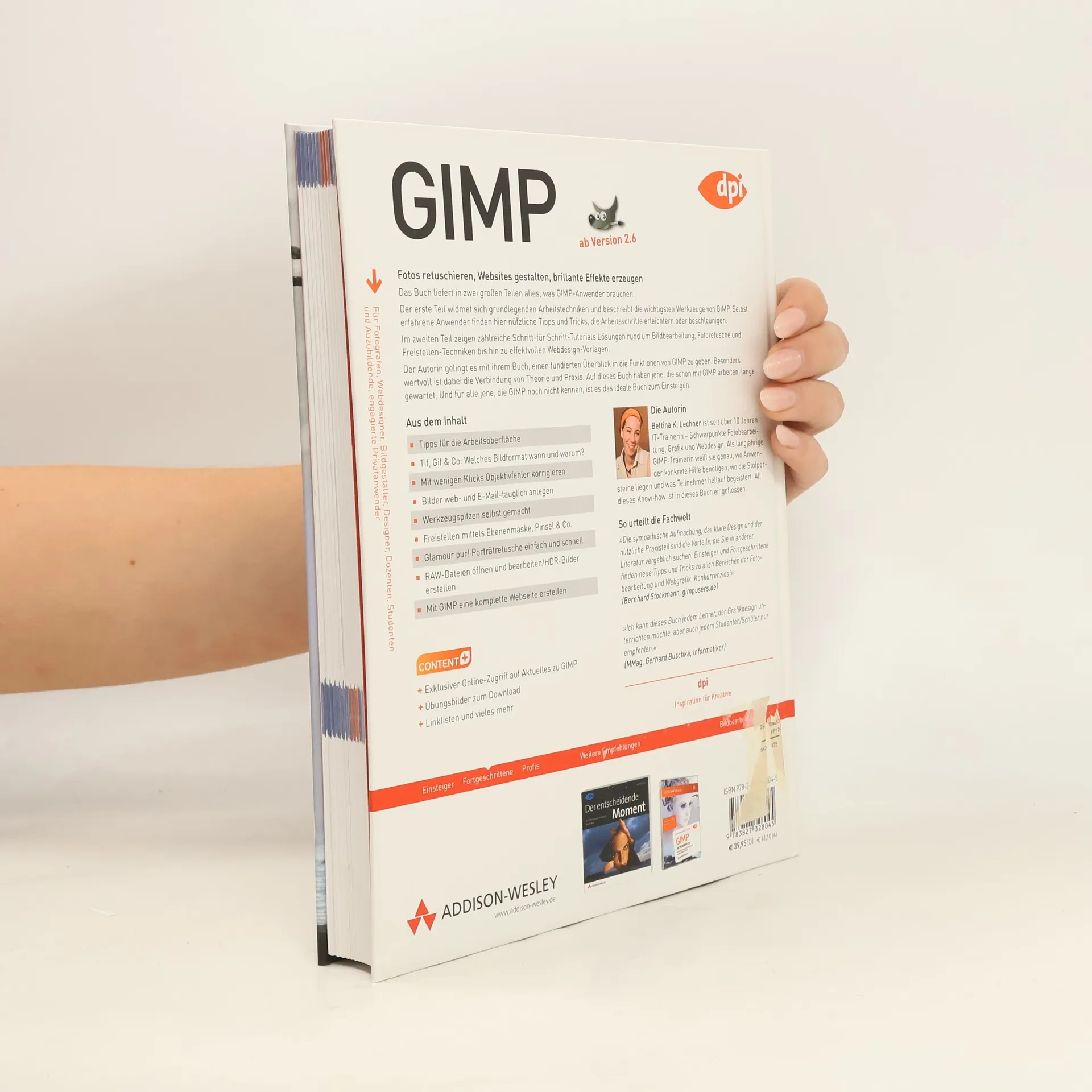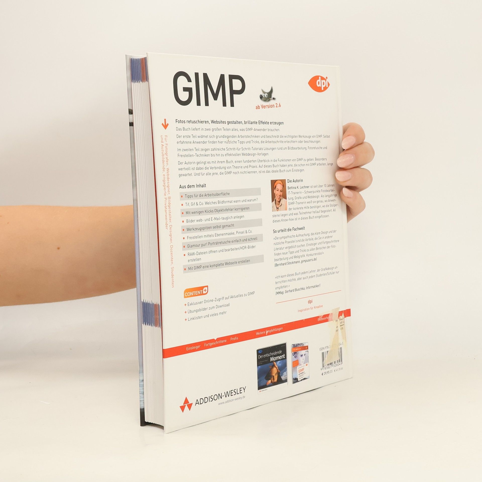 Das Buch liefert in zwei großen Teilen alles, was frischgebackene oder erfahrene Gimp-User brauchen. Der erste Teil widmet sich grundlegenden Arbeitstechniken und zeigt, wie z.B. Ebenen funktionieren, was welches Werkzeug leistet oder wie man eine exakte Auswahl umsetzt. Der zweite Teil liefert Praxisworkshops für alle Aufgaben rund um Bildbearbeitung und Webdesign. Digitalfotografen be- und verarbeiten Fotos und bereiten sie für den Druck auf, Webdesigner erfahren, wie sie Banner und Buttons, aber auch ganze Websites erstellen und vieles mehr. Ein Exkurs zeigt Fotografen, wie sie Bilder direkt aus dem Camera-Raw-Format bearbeiten und mit Copyright-Informationen ihre Fotos schützen.Der Anhang bietet Kapitel über das Erstellen von Scriptings für Script-Fu und einen Überblick über die wichtigsten Plug-Ins und wo man sie findet.