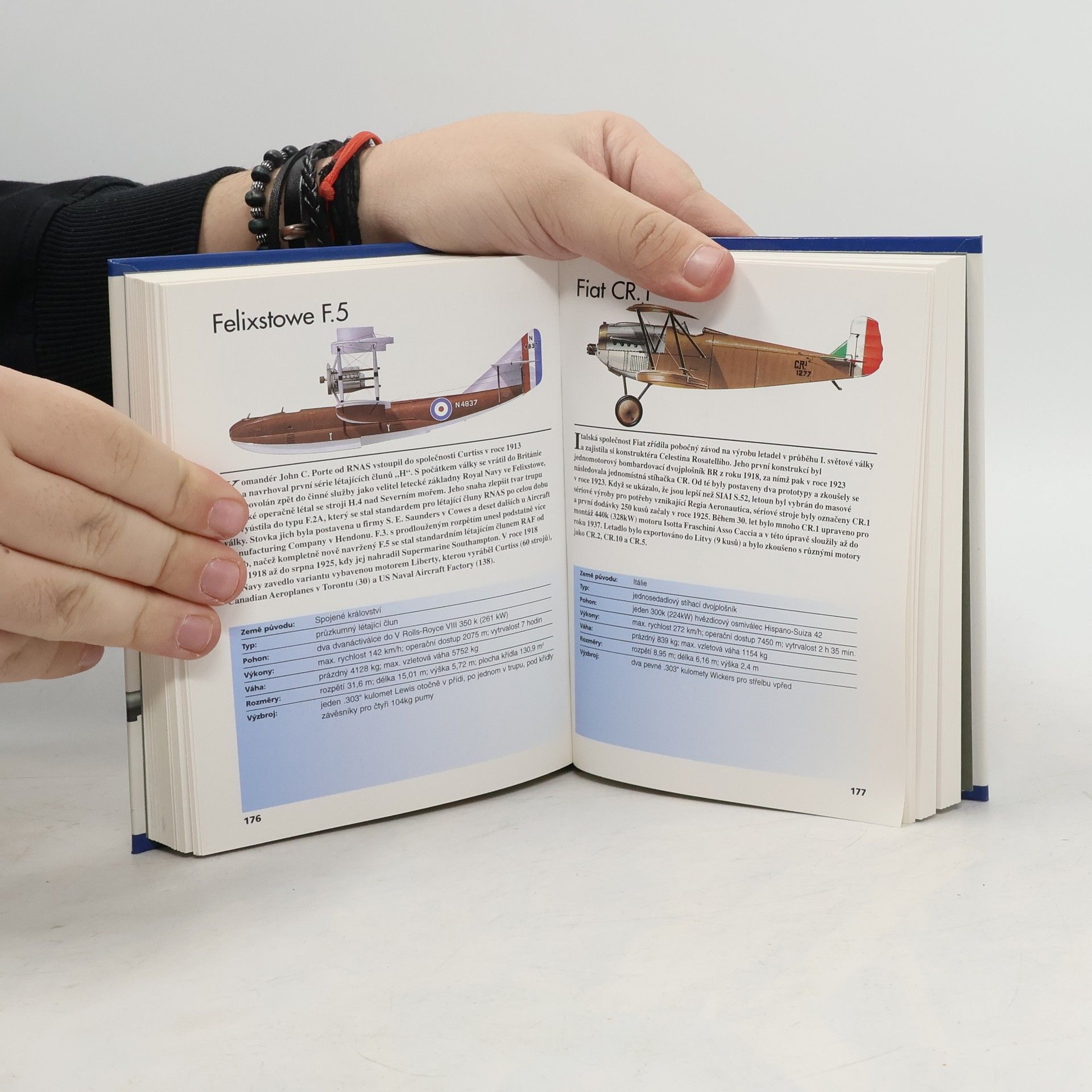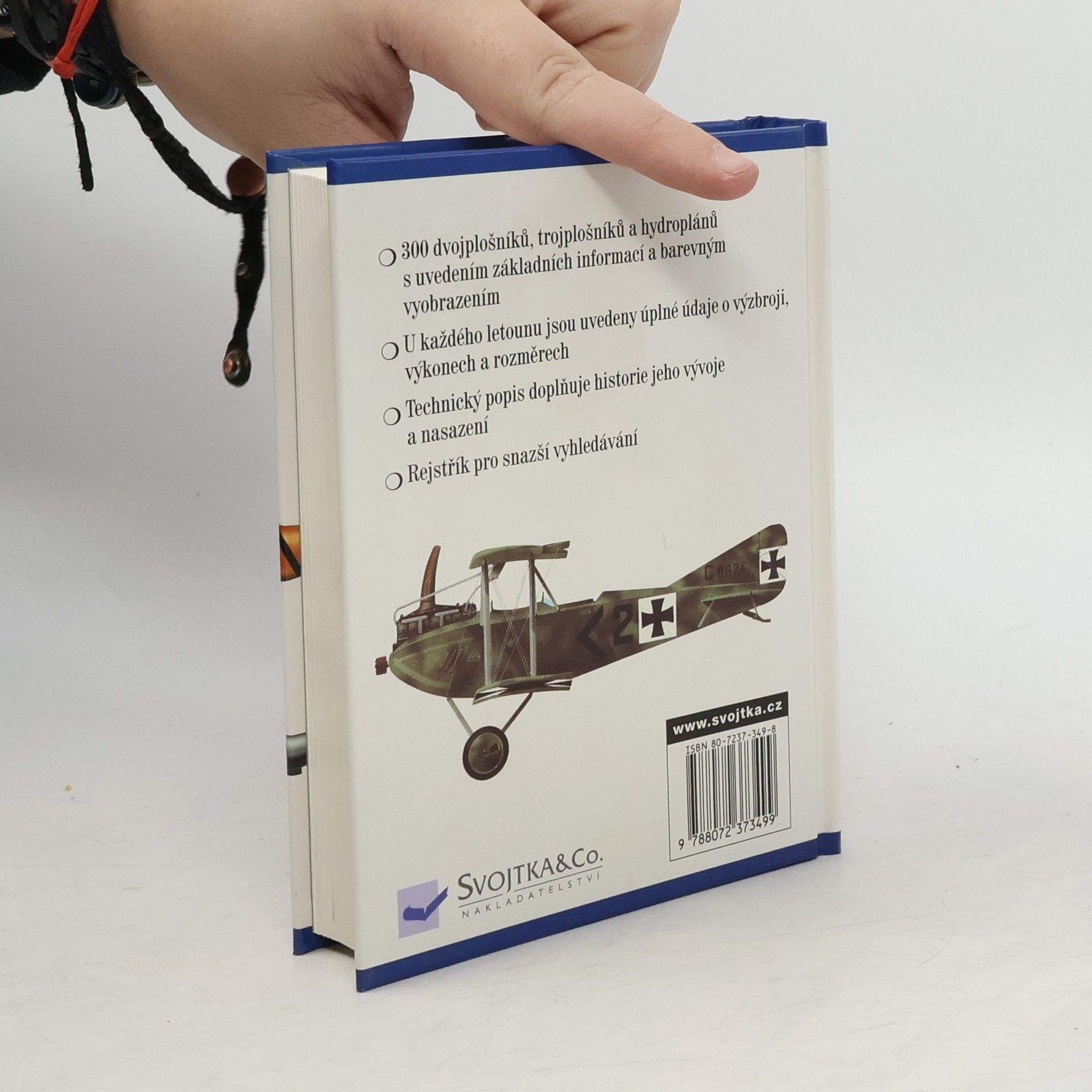 300 dvojplošníků, trojplošníků a hydroplánů s uvedením základních informací a barevným vyobrazením - bokorysem. U každého letounu jsou uvedeny úplné údaje o výzbroji, výkonech a rozměrech. Technický popis doplňuje historie jeho vývoje a nasazení, rejstřík pro snažší vyhledávání.