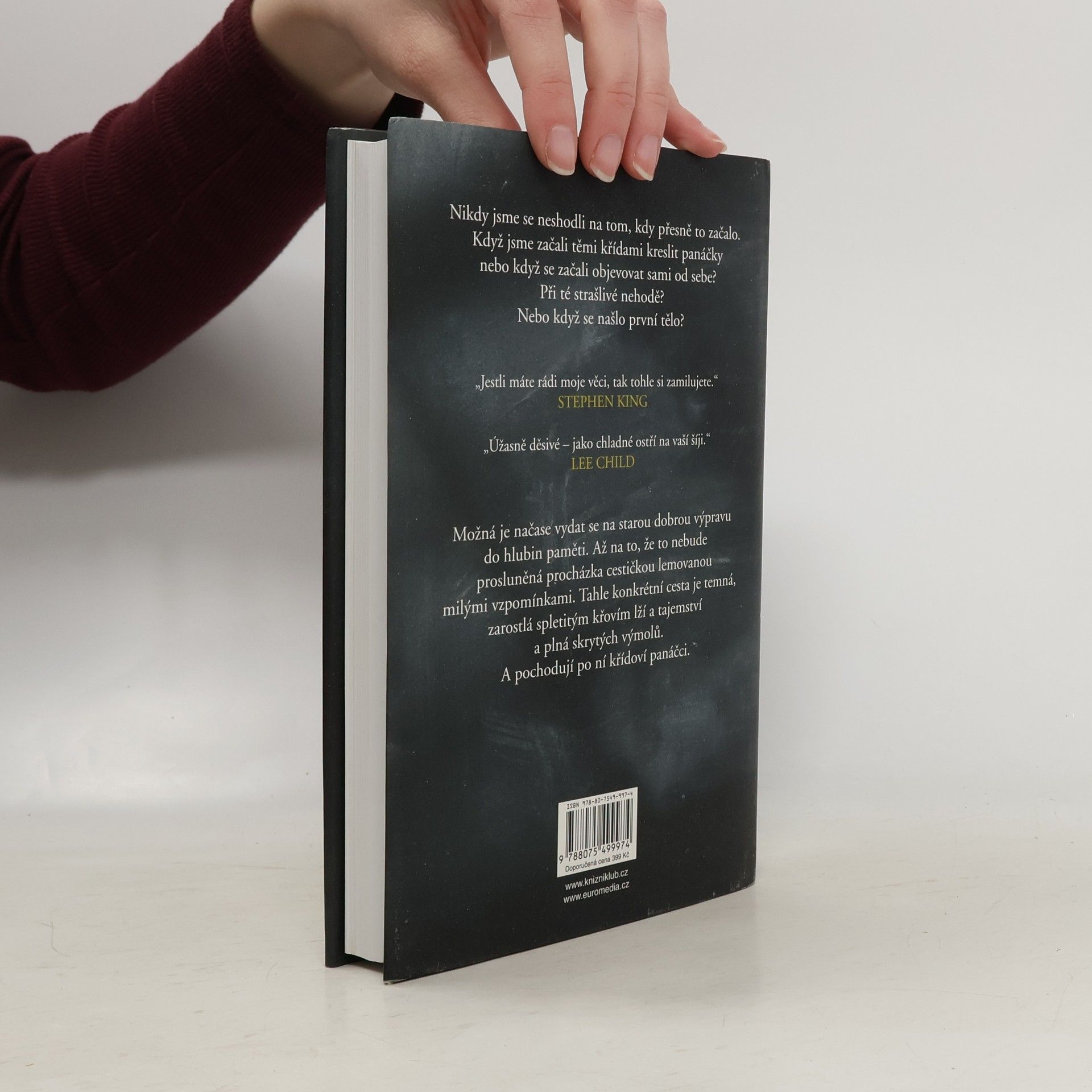 Všichni máme tajemství. Před některými utíkáme, ale ona si nás najdou. A některé hry končí vždycky stejně… Mysteriózní thriller Kříďák je tu – a nedá se před ním utéct. Cítíte to v lese, ve škole i na hřišti, cítíte to v domech a v lunaparku. Cítíte to na většině míst v malém městečku Anderbury… strach, že vás někdo nebo něco sleduje. Začalo to na pouti roku 1986, kdy se stala ta nehoda. Toho dne potkal dvanáctiletý Eddie pana Hallorana – pana Křídu. Ten přivedl Eddieho na myšlenku nevinné hry pro něj a partu jeho přátel: za pomoci křídových kreseb si mohli nechávat vzkazy. Byla to docela zábava – dokud je křídoví panáčci nedovedli k tělu. Mrtvému dívčímu tělu, rozřezanému na kousky. Tahle událost se jim nesmazatelně vryla do nočních můr. A třicet let poté najdou v dopisních schránkách záhadnou obálku – s panáčkem a kusem křídy. Strašáci z dětských let totiž možná stále dokážou zabíjet.