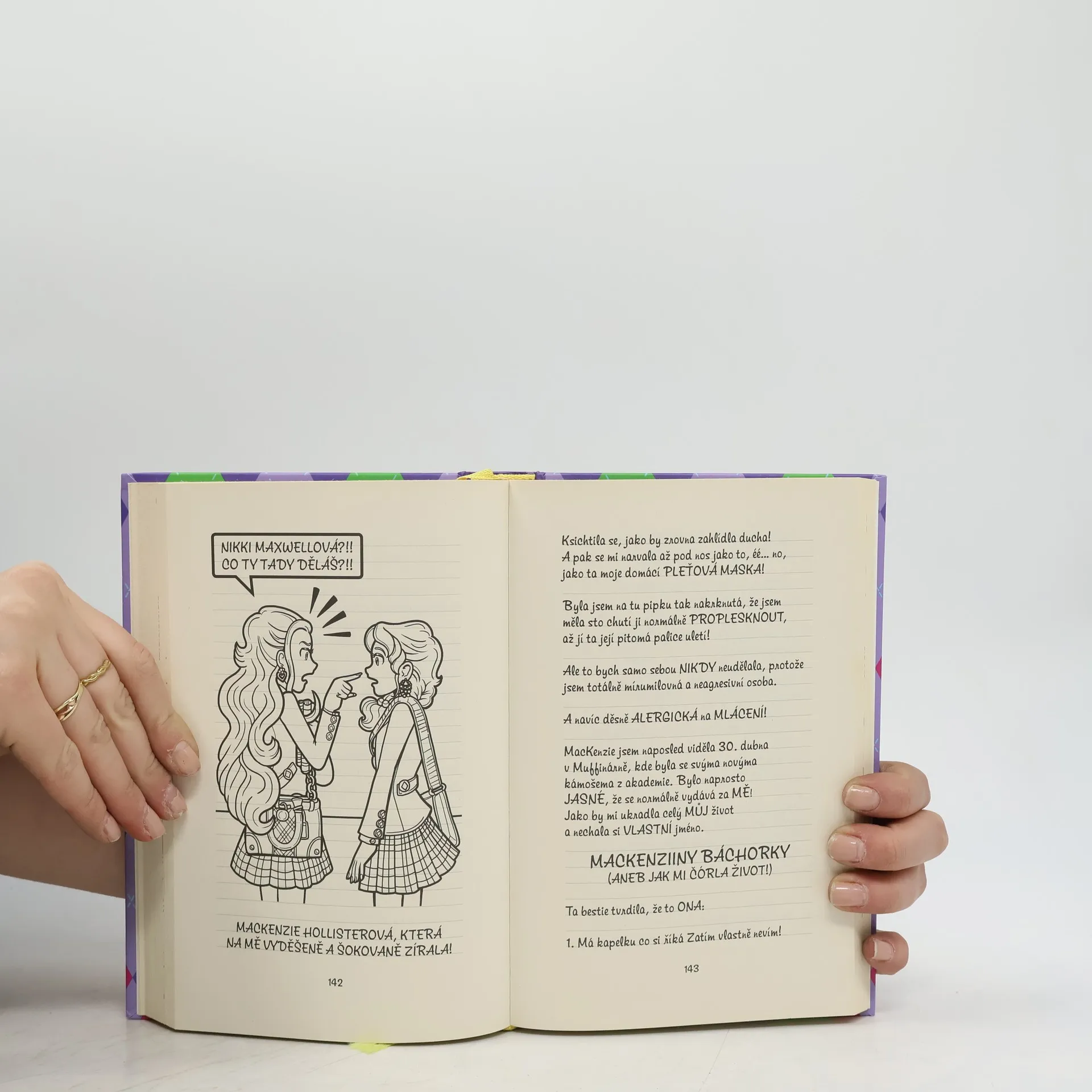 Nikki Maxwellová má vážně pech. Ze všech škol, kam ji mohli přidělit na studentský výměnný týden, se ji rozhodli poslat zrovna na Mezinárodní akademii Hampton Hills, jinak známou jako novou školu její zapřísáhlé rivalky MacKenzie Hollisterové. A to ještě není to nejhorší – vypadá to totiž, že jí osud do cesty postavil někoho ještě příšernějšího, než je MacKenzie! Dokáže královna mimoňů přežít týden v nóbl ústavu plném KCO lidí, nebo to všechno skončí další totálně mimózní katastrofou?