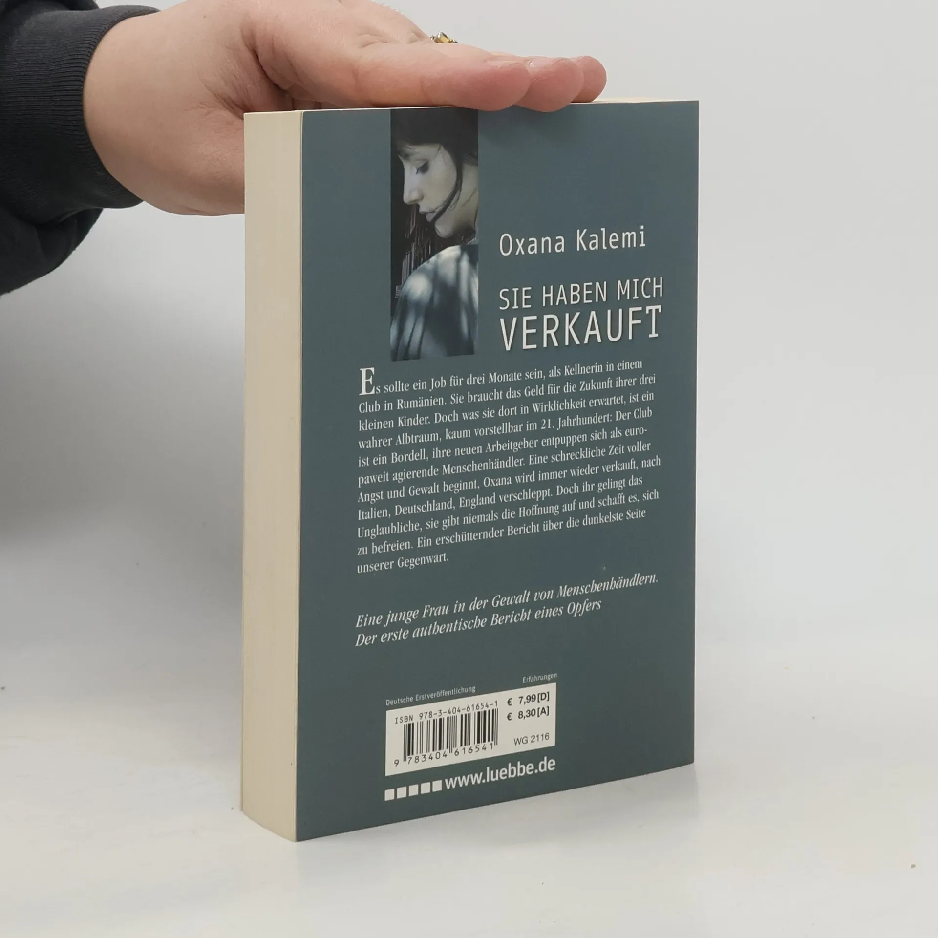 Es sollte ein Job für drei Monate sein, als Kellnerin in einem Club in Rumänien. Sie braucht das Geld für die Zukunft ihrer drei kleinen Kinder. Doch was sie dort in Wirklichkeit erwartet, ist ein wahrer Albtraum, kaum vorstellbar im 21. Jahrhundert: Der Club ist ein Bordell, ihre neuen Arbeitgeber entpuppen sich als europaweit agierende Menschenhändler. Eine schreckliche Zeit voller Angst und Gewalt beginnt, Oxana wird immer wieder verkauft, nach Italien, Deutschland, England verschleppt. Doch ihr gelingt das Unglaubliche, sie gibt niemals die Hoffnung auf und schafft es sich zu befreien. Ein erschütternder Bericht über die dunkelste Seite unserer Gegenwart.