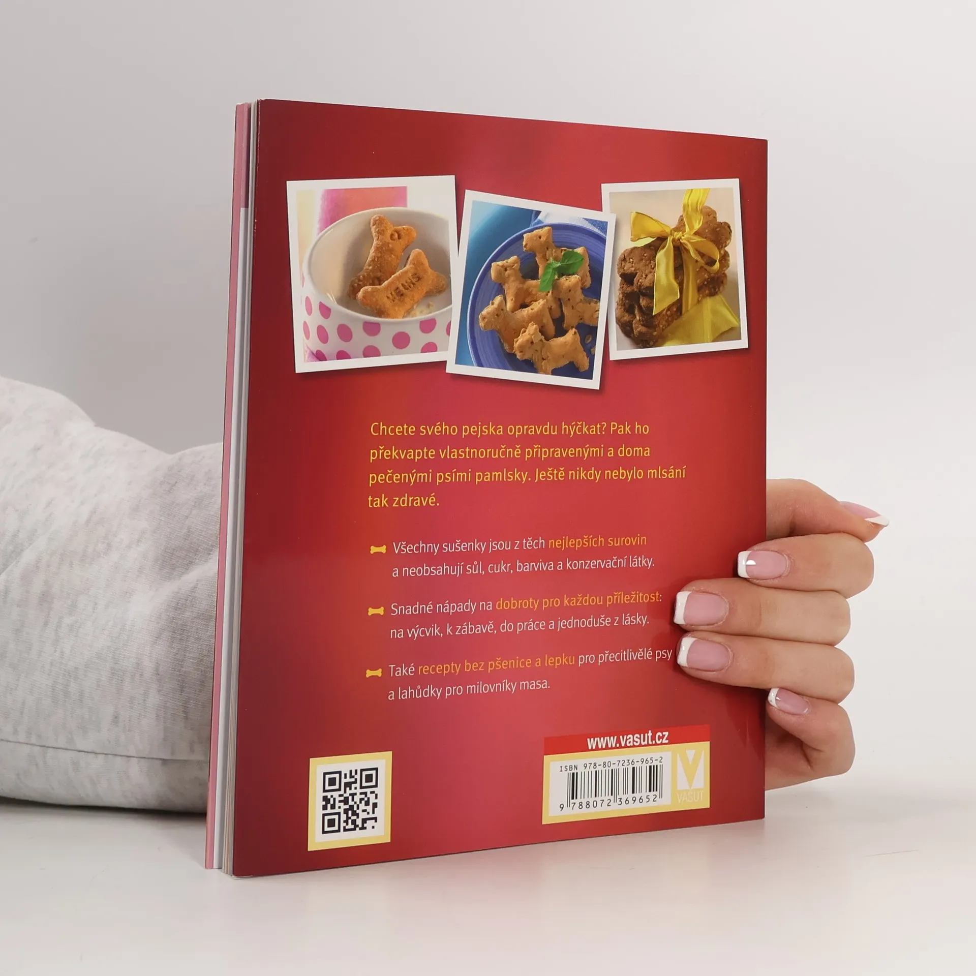 Chcete svého pejska opravdu hýčkat? Pak ho překvapte vlastnoručně připravenými a doma pečenými psími pamlsky. Ještě nikdy nebylo mlsání tak zdravé. Všechny sušenky jsou z těch nejlepších surovin a neobsahují sůl, cukr, barviva a konzervační látky. V knize najdete snadné nápady na dobroty pro každou příležitost: na výcvik, k zábavě, do práce a jednoduše z lásky. A nechybí ani recepty bez pšenice a lepku pro přecitlivělé psy a lahůdky pro milovníky masa. - Všechny sušenky jsou z těch nejlepších surovin a neobsahují sůl, cukr, barviva a konzervační látky. - Snadné nápady na dobroty pro každou příležitost: na výcvik, k zábavě, do práce a jednoduše z lásky. - Také recepty bez pšenice a lepku pro přecitlivělé psy a lahůdky pro milovníky masa.