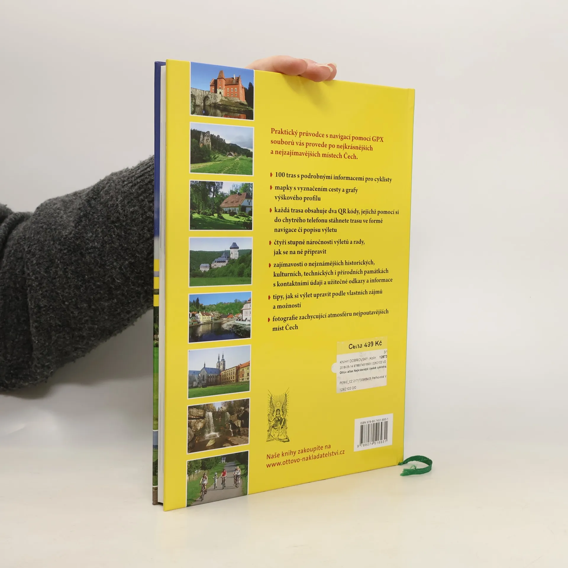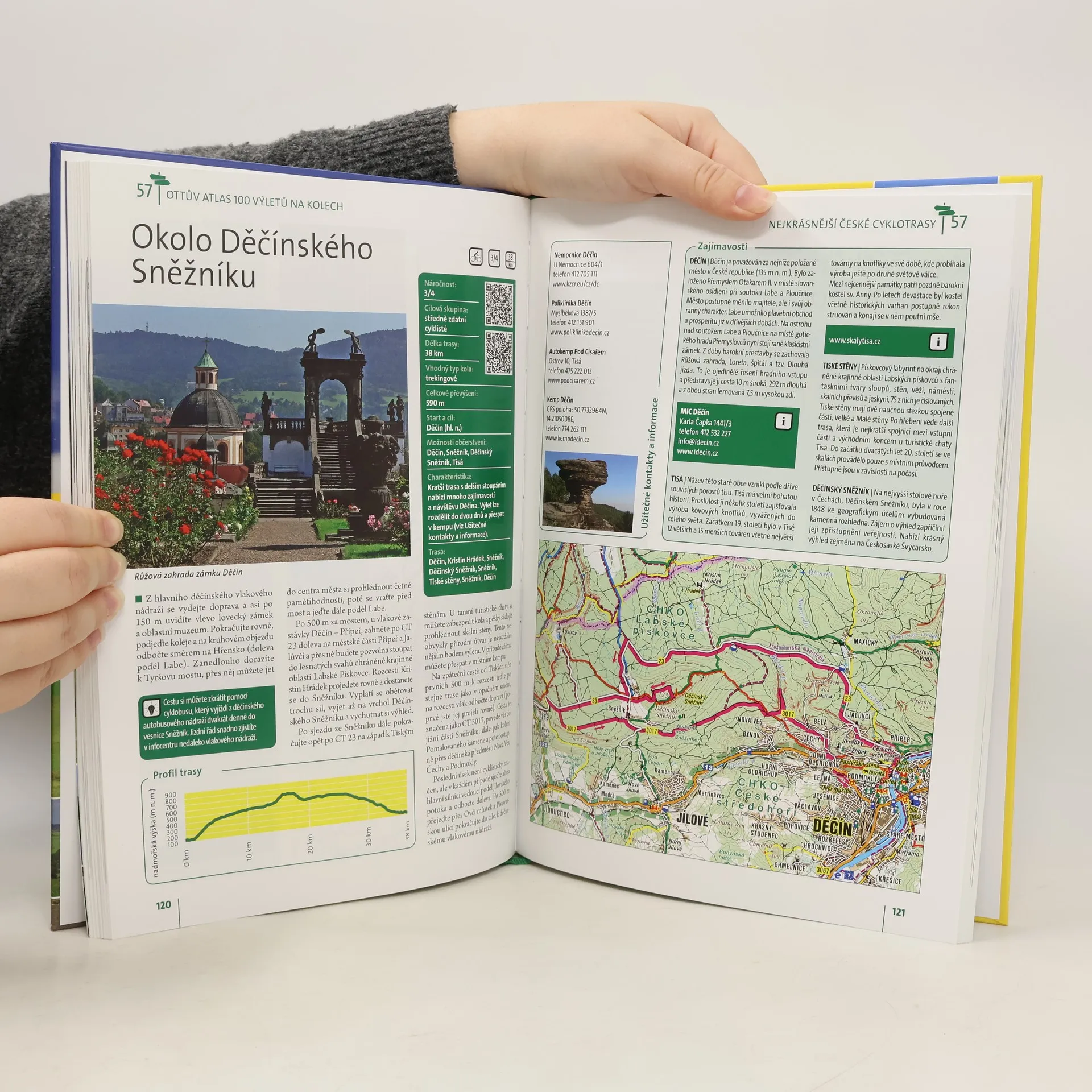 Unikátní vydání Ottova atlasu Nejkrásnější české cyklotrasy nabízí 100 atraktivních výletů na kolech s popisem nejvýznamnějších přírodních a historických památek a s užitečnými kontakty. Jednotlivé trasy jsou navrženy tak, aby začínaly a končily v místech s dobrou návazností hromadné dopravy a nabízely možnost občerstvení. Trasy jsou přehledně označeny a rozděleny podle náročnosti do čtyř stupňů a u každé je doplněn graf, z něhož je patrné celkové převýšení, každý si tak bude moci zvolit trasu, která nejlépe odpovídá jeho aktuálním možnostem a potřebám. Každá trasa je opatřena stručnou charakteristikou výletu, popisem povrchu cesty a doporučením vhodného typu kola. O památkách a zajímavostech včetně užitečných kontaktů a odkazů se stručně dočtete na konci každé trasy. Součástí výletů je také tip, na jehož základě si trasu můžete upravit dle vlastních přání či potřeb. Podrobná mapka zobrazuje vždy příslušný úsek, trasa je v něm barevně zvýrazněna. Přiložené fotografie dokládají atmosféru kraje a zachycují nejzajímavější cíle výletu. Zároveň kniha obsahuje QR kódy, které vám v pohodlí domova umožní načíst údaje o každé trase do vaší navigace či chytrého telefonu. Stačí si stáhnout gpx soubor, pomocí něhož se na svých výletech necháte vést.
