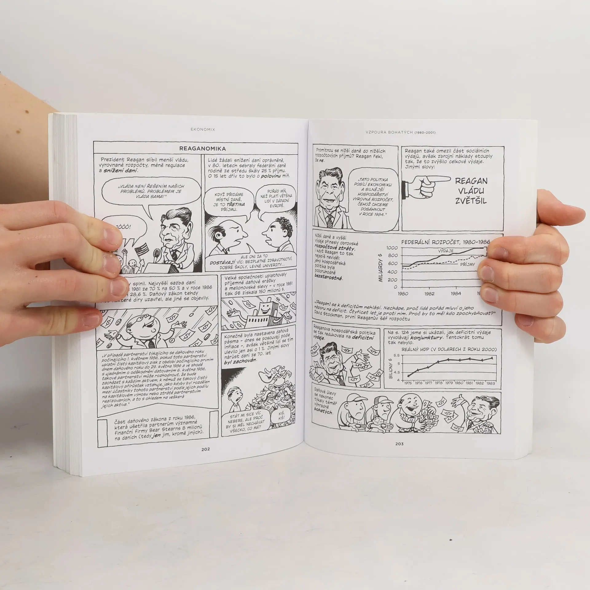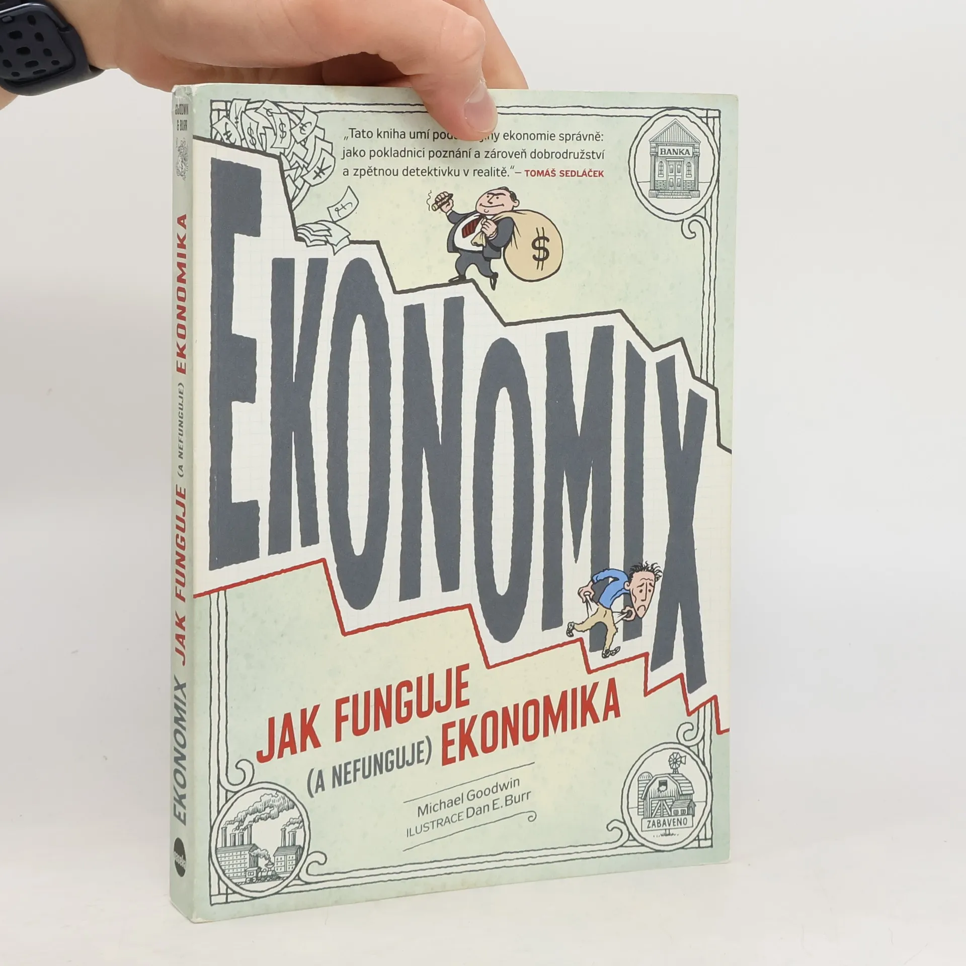 Úvod do ekonomie v podobě komiksu. Čím se od sebe liší kapitalismus, socialismus a komunismus? Jak je to opravdu s neviditelnou rukou trhu? Je svobodný trh opravdu svobodný? Co bylo příčinou poslední ekonomické krize? Jaký je rozdíl mezi jednotlivci a podniky? Je lepší škrtat, nebo stimulovat hospodářský růst? Na všechny tyto otázky a celou řadu dalších nabízejí ve své knize srozumitelnou a zábavnou odpověď spisovatel a novinář Michael Goodwin a kreslíř Dan E. Burr. Jejich stručný úvod do dějin ekonomie, finančnictví a hospodářského vývoje od počátků kapitalismu až do současnosti představuje nejdůležitější světové ekonomy a jejich teorie, objasňuje základní ekonomické pojmy a shrnuje dění na americké i mezinárodní politické a ekonomické scéně – to vše jasně, přehledně, s neodolatelným humorem a obdivuhodnou kreslířskou zkratkou.
