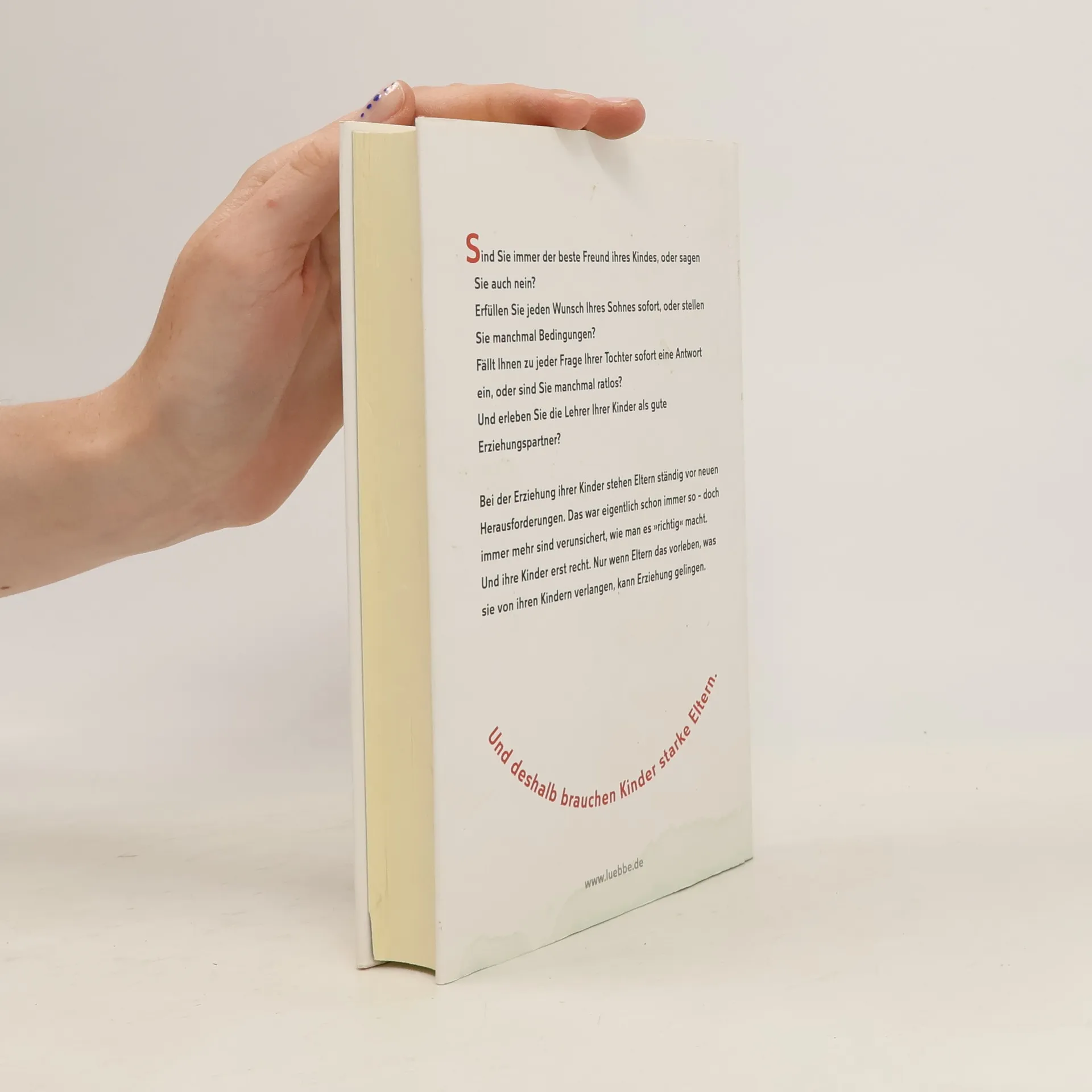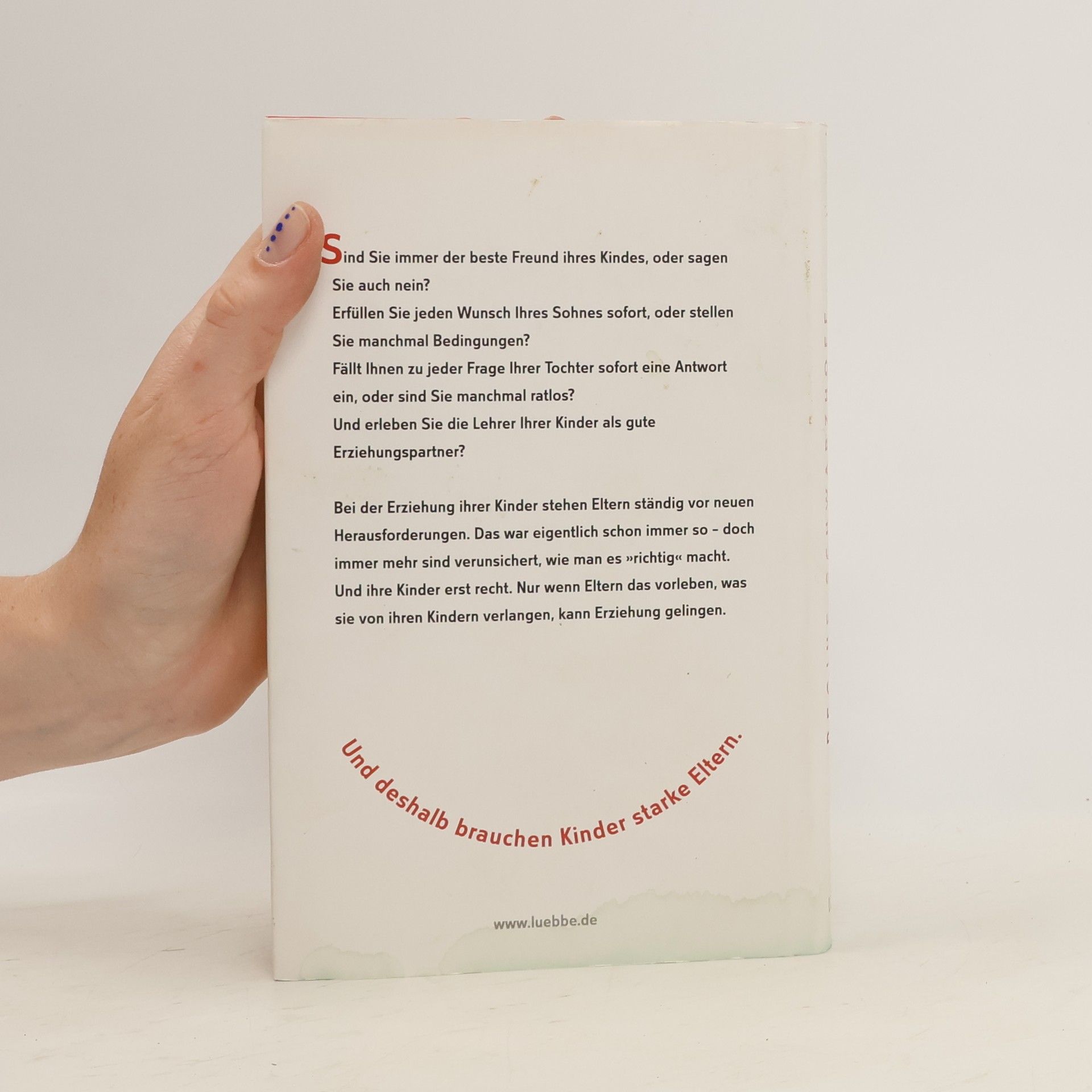 Sind Sie immer der beste Freund ihres Kindes, oder sagen Sie auch nein? Erfüllen Sie jeden Wunsch Ihres Sohnes sofort, oder stellen Sie manchmal Bedingungen? Fällt Ihnen zu jeder Frage Ihrer Tochter sofort eine Antwort ein, oder sind Sie manchmal ratlos? Und erleben Sie die Lehrer Ihrer Kinder als gute Erziehungspartner? Bei der Erziehung ihrer Kinder stehen Eltern ständig vor neuen Herausforderungen. Das war eigentlich schon immer so - doch immer mehr sind verunsichert, wie man es „richtig“ macht. Und ihre Kinder erst recht. Nur wenn Eltern das vorleben, was sie von ihren Kindern verlangen, kann Erziehung gelingen. Und deshalb brauchen Kinder starke Eltern.