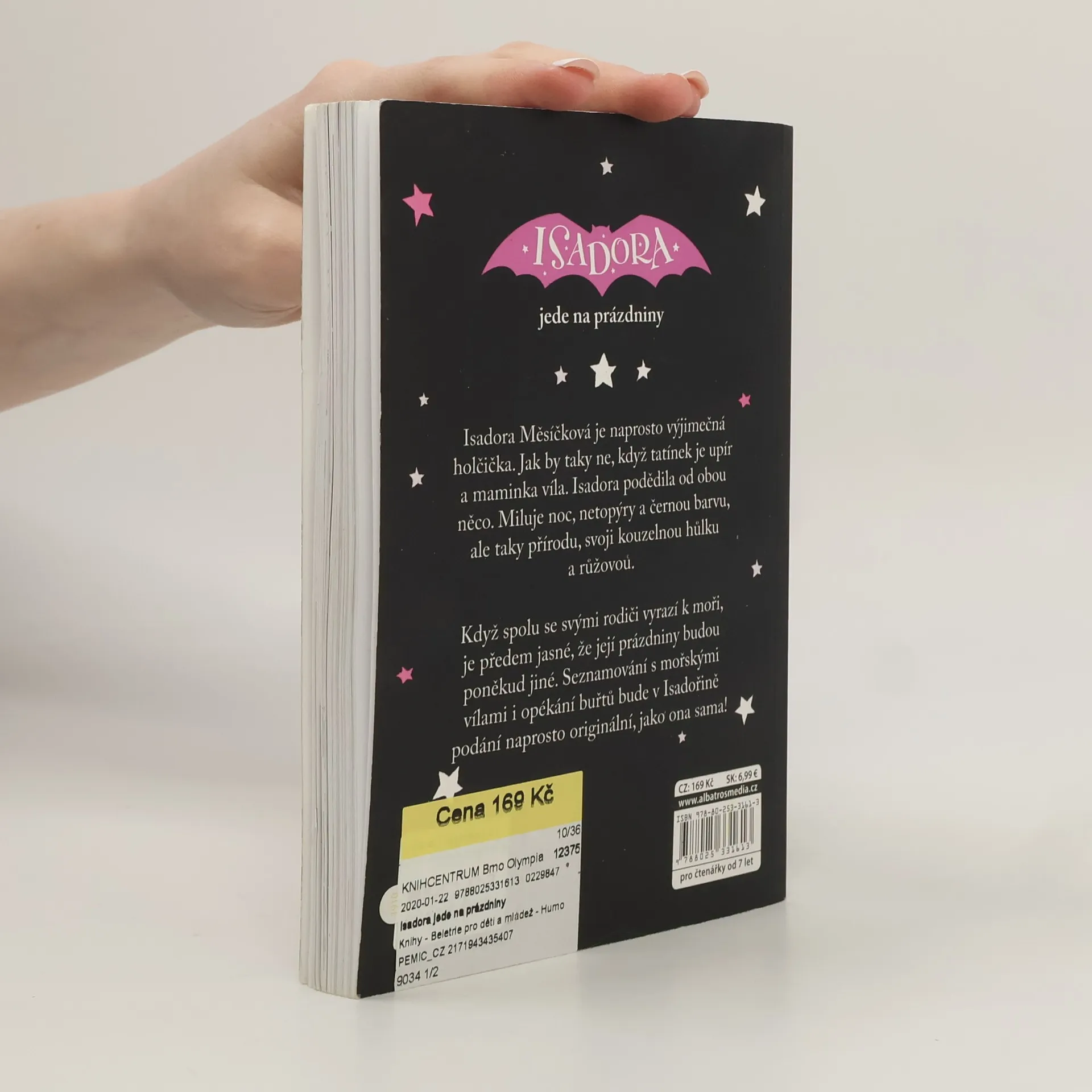 Isadora Měsíčková je naprosto výjimečná holčička. Jak by taky ne, když tatínek je upír a maminka víla. Isadora podědila od obou něco. Miluje noc, netopýry a černou barvu, ale taky přírodu, svoji kouzelnou hůlku a růžovou. Když spolu se svými rodiči vyrazí k moři, je předem jasné, že její prázdniny budou poněkud jiné. Seznamování s mořskými vílami i opékání buřtů bude v Isadořině podání naprosto originální, jako ona sama!