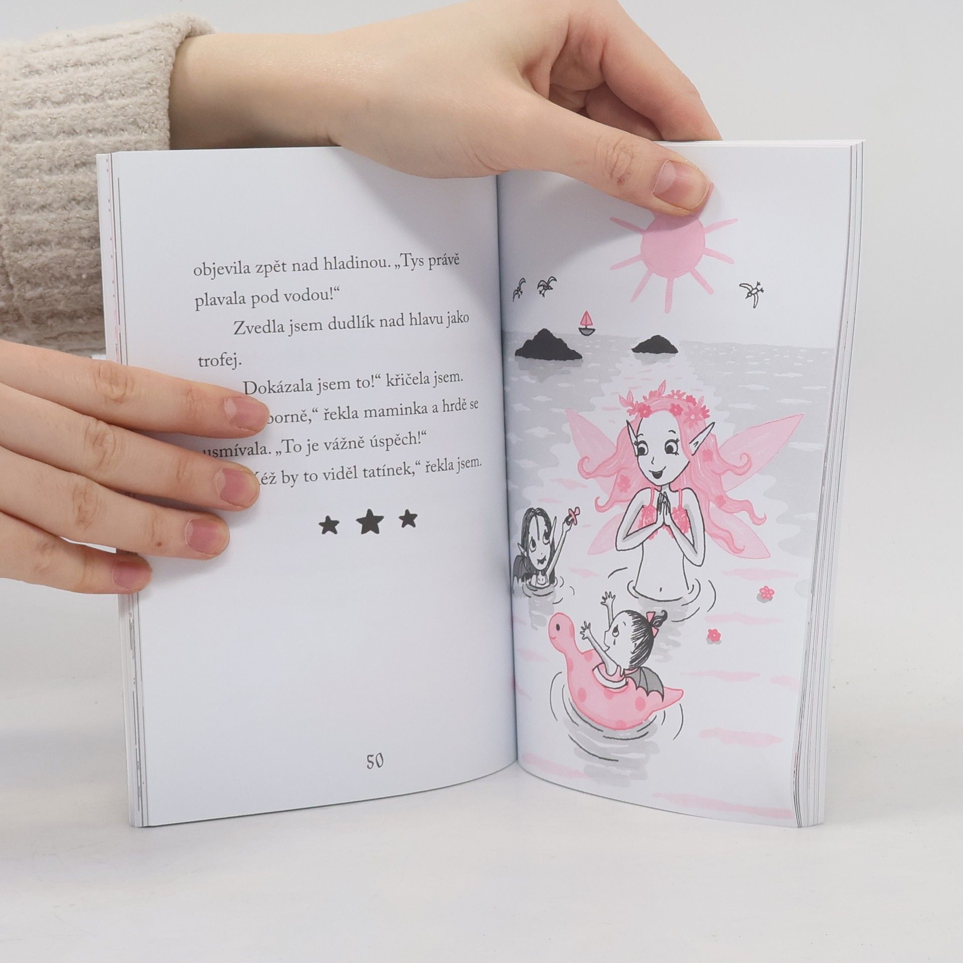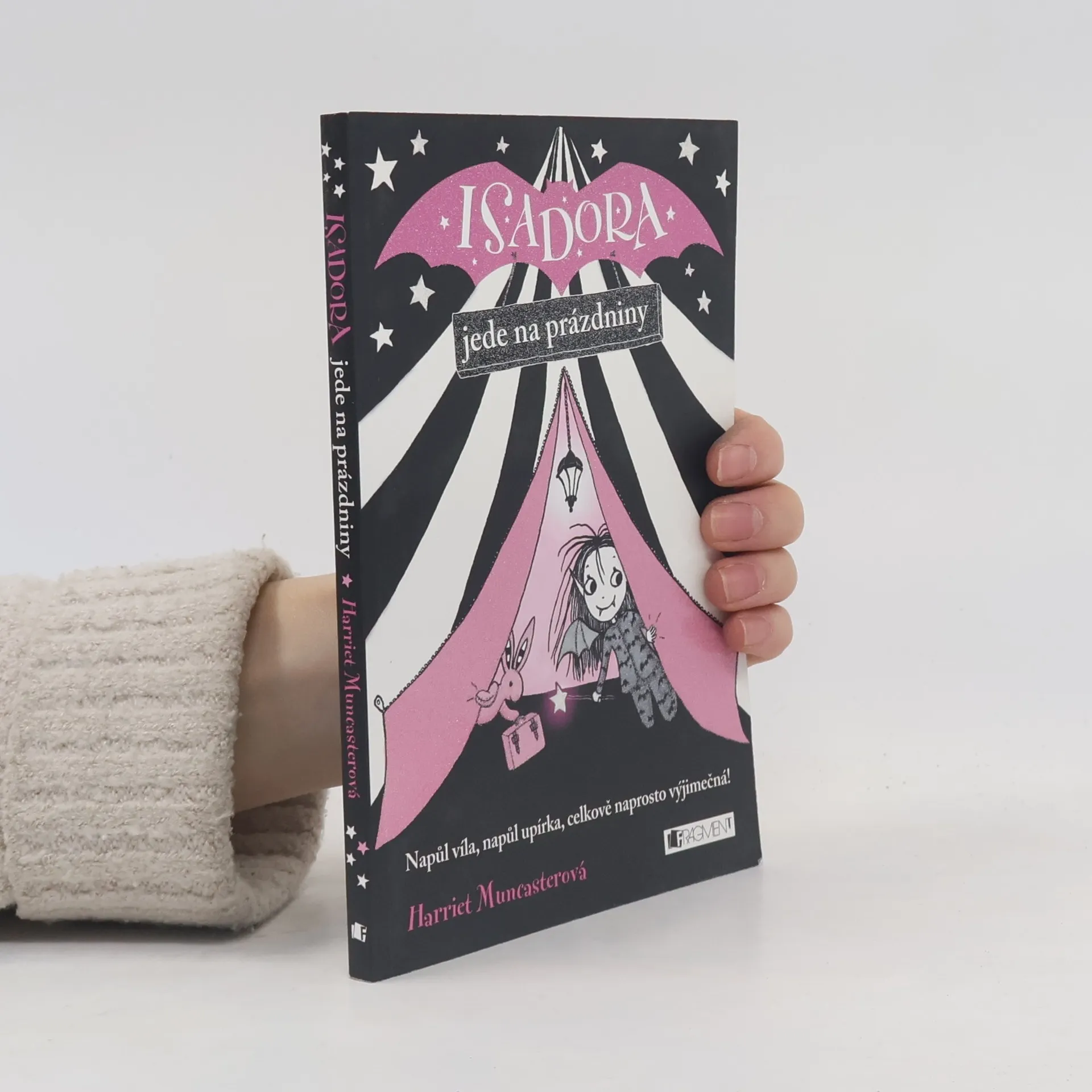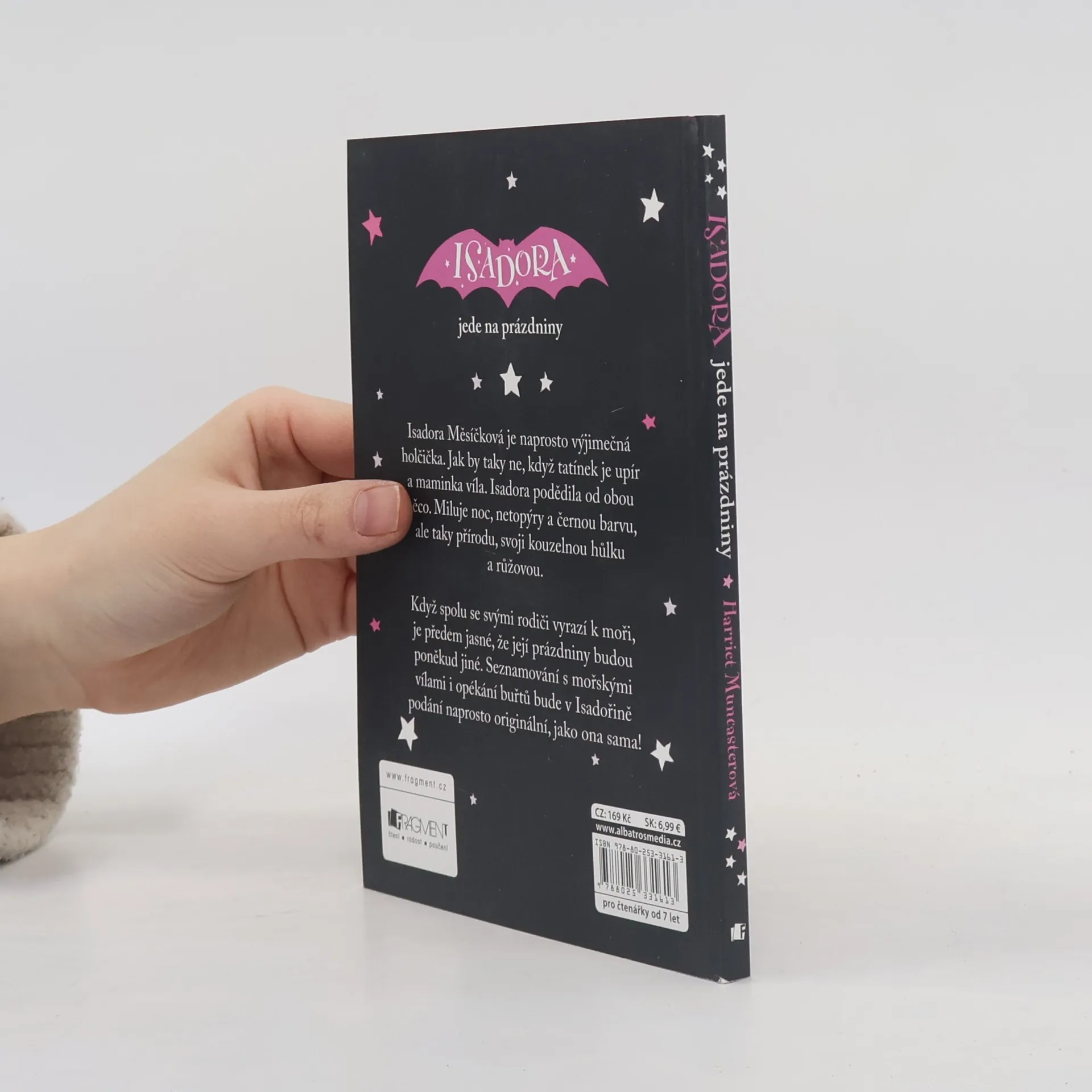 Isadora Měsíčková je naprosto výjimečná holčička. Jak by taky ne, když tatínek je upír a maminka víla. Isadora podědila od obou něco. Miluje noc, netopýry a černou barvu, ale taky přírodu, svoji kouzelnou hůlku a růžovou. Když spolu se svými rodiči vyrazí k moři, je předem jasné, že její prázdniny budou poněkud jiné. Seznamování s mořskými vílami i opékání buřtů bude v Isadořině podání naprosto originální, jako ona sama!