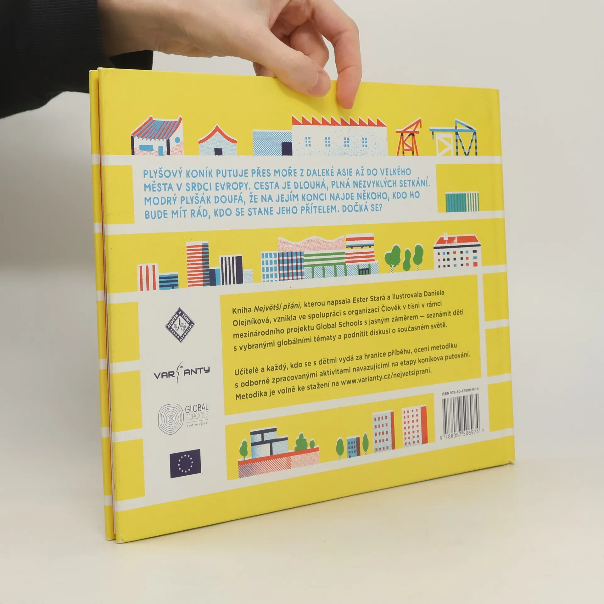Velkoformátová dětská kniha vypráví příběh, který děti seznamuje s důležitými tématy současného světa. Plyšový koník putuje přes moře z daleké Asie až do velkého města v srdci Evropy. Cesta je dlouhá, plná nezvyklých setkání. Modrý plyšák doufá, že na jejím konci najde někoho, kdo ho bude mít rád, kdo se stane jeho přítelem. Dočká se?