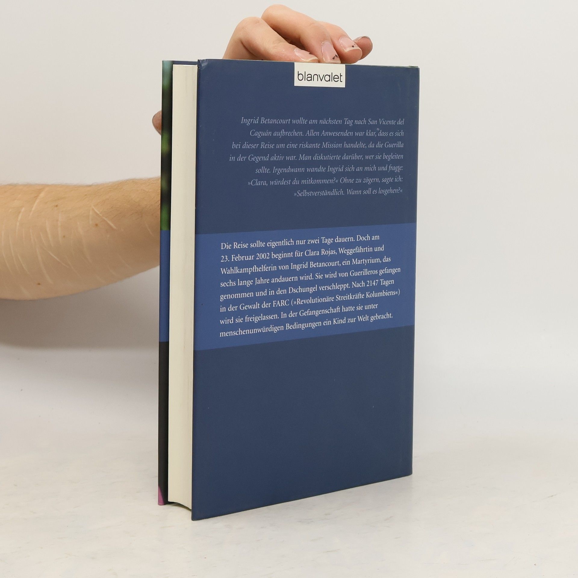 Sechs Jahre in der Gewalt der Guerilla – an der Seite von Íngrid Betancourt. Clara Rojas überlebte für ihren Sohn. 2147 Tage voller Verzweiflung, Hoffnung und Überlebenskampf. Clara Rojas, Wahlkampfhelferin und enge Freundin von Íngrid Betancourt, wird zusammen mit ihr von den kolumbianischen FARC-Rebellen entführt. Im Dschungel bringt sie ihr Kind, den Sohn eines Guerilleros, zur Welt. Dies ist ihre erste Erzählung der traumatischen Erlebnisse: für Emmanuel, ihren Sohn. Im Februar 2002 werden Clara Rojas und Íngrid Betancourt von der FARC entführt und unter unmenschlichen Bedingungen festgehalten. Jahrelang leben sie in Ketten und fliehen ständig vor den Regierungstruppen, während sie von einem Dschungelcamp zum anderen ziehen. Krankheiten, Hunger und mangelnde Hygiene setzen ihnen stark zu. Inmitten dieser Hölle bringt Clara Rojas im April 2004 Emmanuel zur Welt. Mit neun Monaten ist er dem Tod nahe, als die FARC ihn einem Bauern übergibt, der ihn ins Krankenhaus bringt. Dort wird er, namenlos, in ein Heim abgeschoben. Erst mit der Befreiung seiner Mutter und einer DNA-Analyse kann seine Herkunft geklärt werden. Aus wenigen Tagen der Trennung werden vier lange Jahre. Erst im Januar 2008 haben internationale Verhandlungen Erfolg: Clara Rojas und andere Geiseln werden freigelassen.
