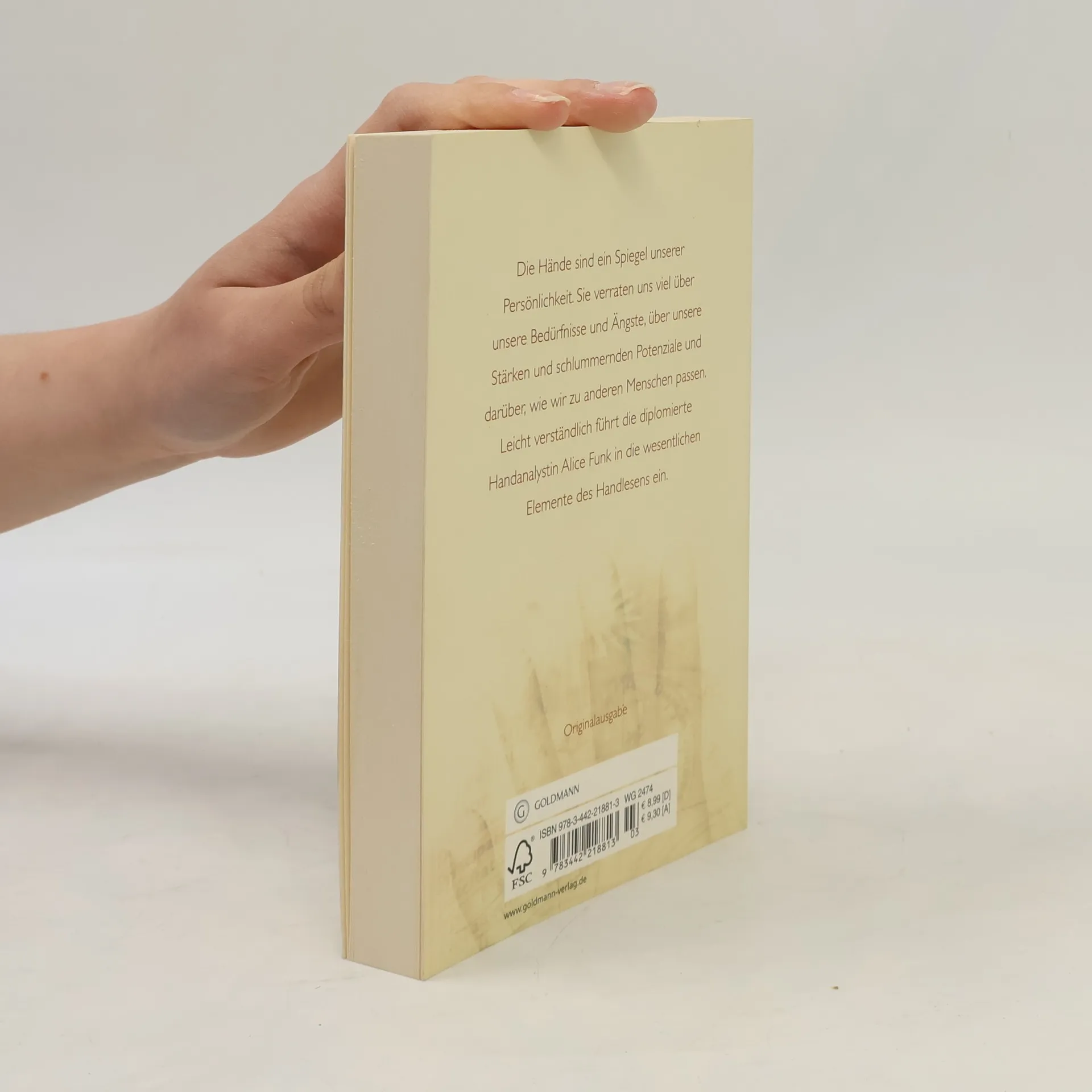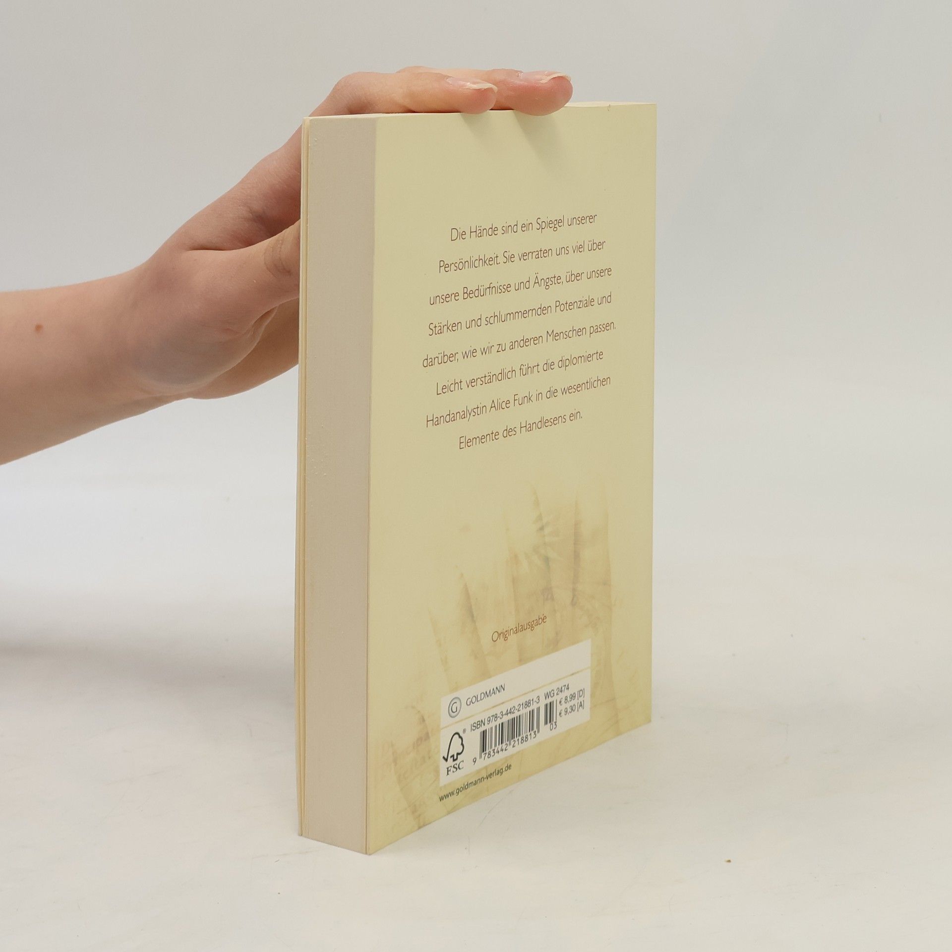 Handlesen – die beliebte Methode, das innere Potenzial zu wecken Unsere Hände sind ein Spiegel unserer Persönlichkeit. Sie enthalten Informationen über unsere Bedürfnisse und Ängste und berichten über unsere schlummernden Potenziale ebenso wie über Herausforderungen in unserem Leben. Auch lässt sich an den Händen eines Menschen erkennen, zu welchen anderen Menschen er passt und zu welchen nicht. Leicht verständlich und anhand vieler Abbildungen führt die Handanalystin Alice Funk in die wesentlichen Elemente der Handanalyse ein: Sie zeigt, wie sich Größe und Stärke der Finger deuten lassen, erklärt Linien und Zeichen und widmet sich besonders den Begabungszeichen. Übersichtliches Einführungswerk mit vielen praktischen Übungen. Ausstattung: zahlreiche s/w-Abb.