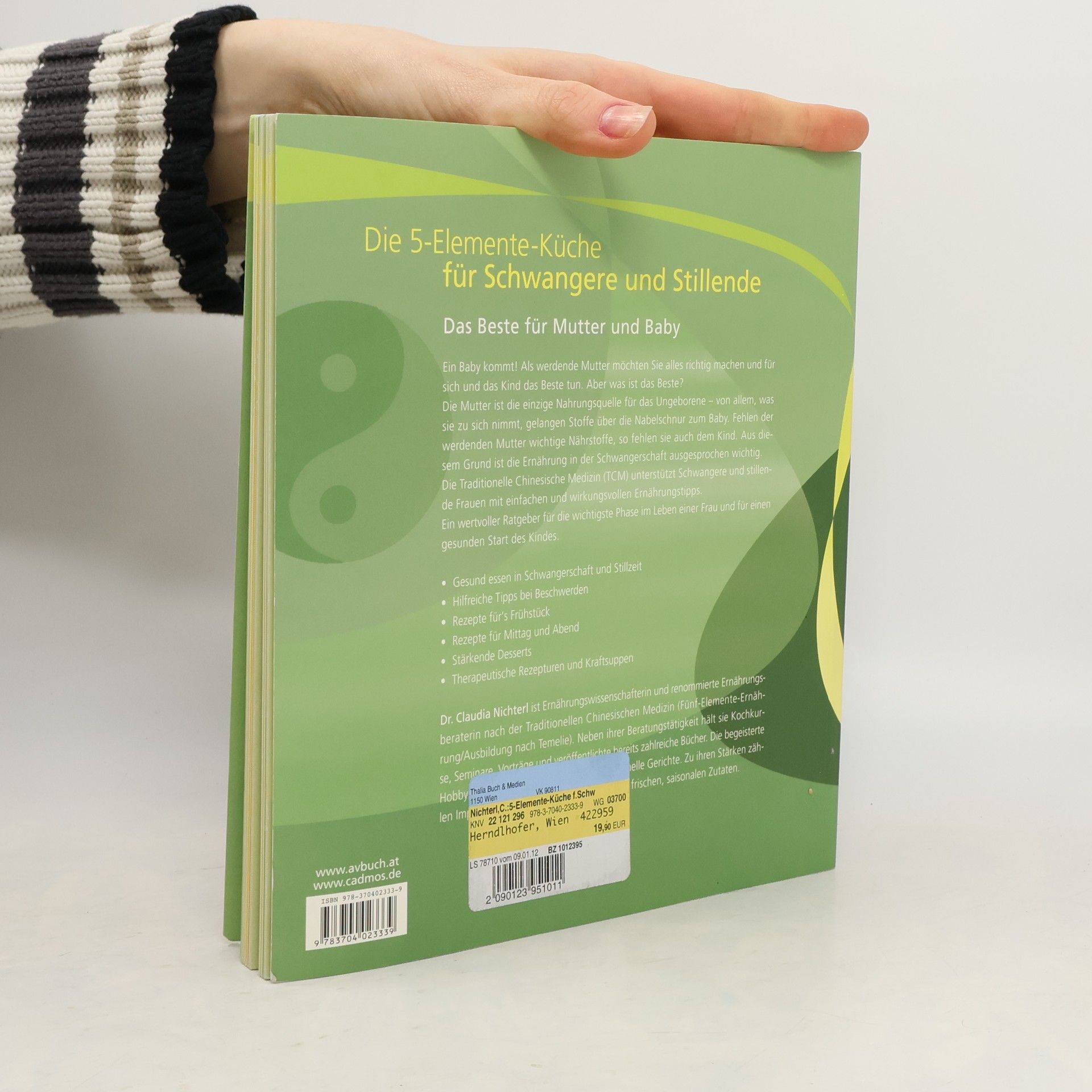 Ein einfühlsamer Ratgeber für die wichtigste Zeit im Leben einer Frau und einem gesunden Start ins Leben eines Kindes. Dieses Buch begleitet sachlich und leicht verständlich durch Schwangerschaft und Stillzeit und zeigt einfache Rezeptideen für jede einzelne Phase. Geschickt verknüpft die Autorin dabei die Erkenntnisse der TCM mit modernen westlichen Ernährungsempfehlungen.