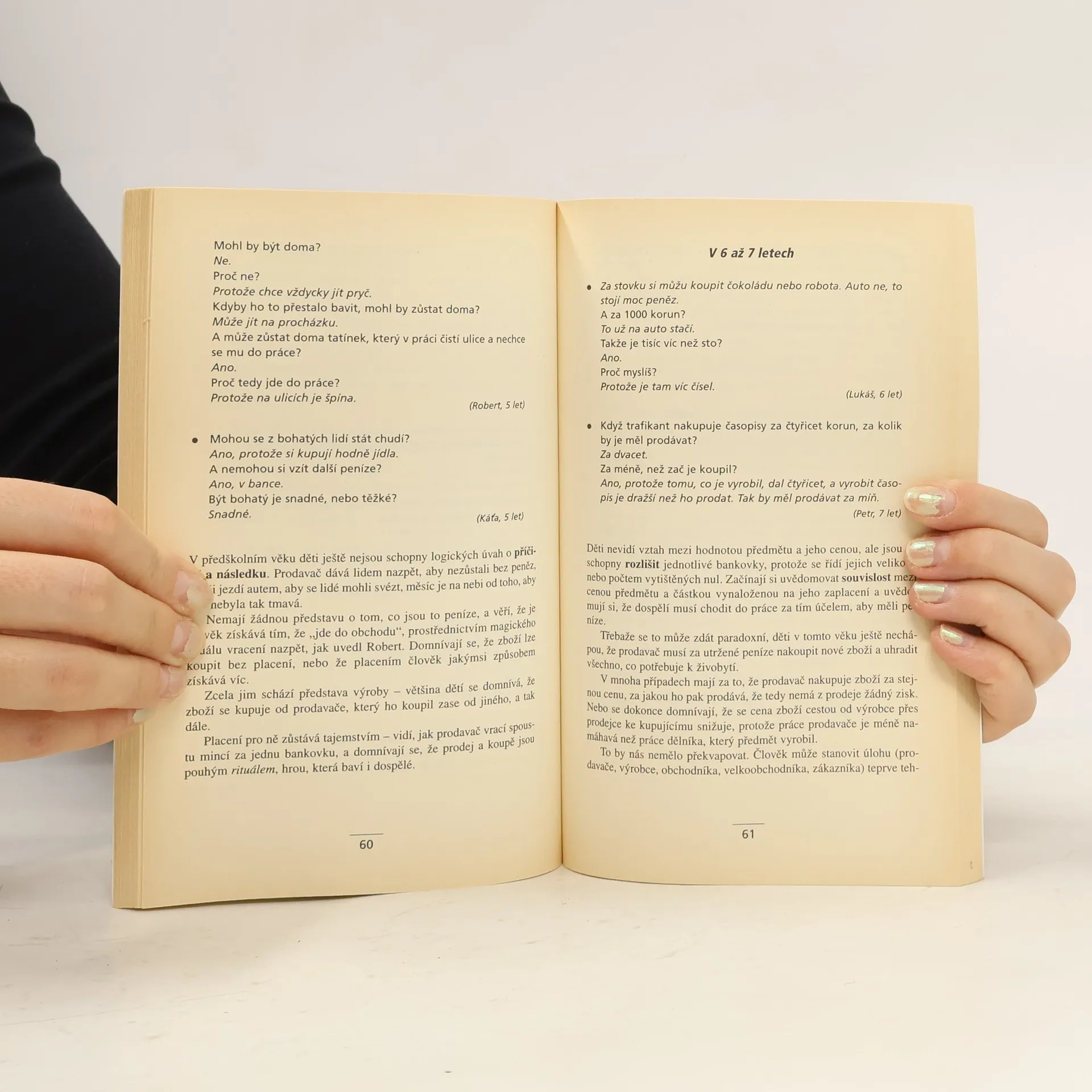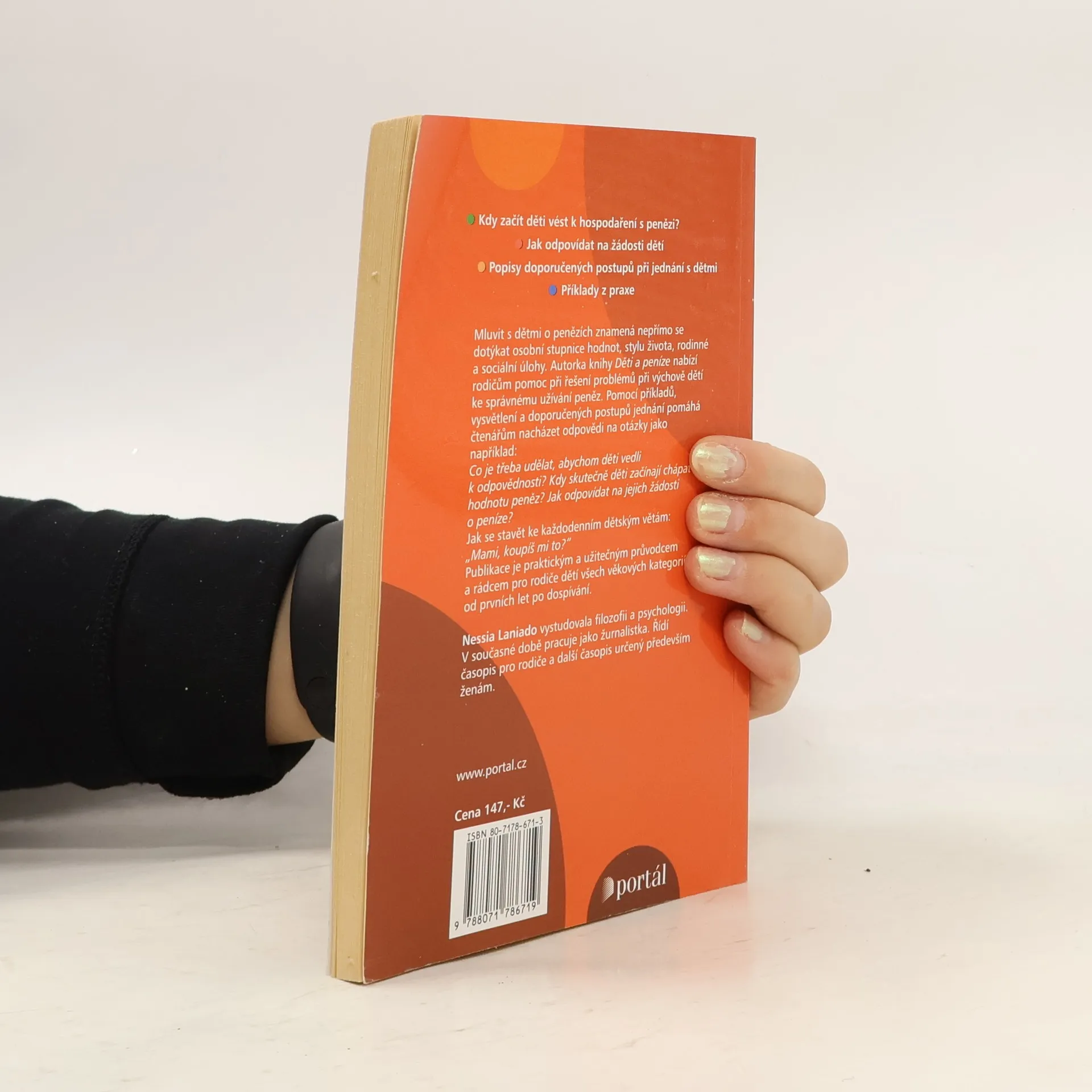 Kdy děti začínají chápat hodnotu peněz? Mluvit s dětmi o penězích znamená nepřímo se dotýkat osobní stupnice hodnot, stylu života, rodinné a sociální úlohy. Autorka knihy nabízí rodičům pomoc při řešení problémů při výchově dětí ke správnému užívání peněz. Pomocí příkladů, vysvětlení a doporučených postupů jednání pomáhá čtenářům nacházet odpovědi na otázky jako například: Co je třeba udělat, abychom děti vedli k odpovědnosti? Kdy skutečně děti začínají chápat hodnotu peněz? Jak zodpovídat na jejich žádosti o peníze? Publikace je praktickým a užitečným průvodcem a rádcem pro rodiče dětí všech věkových kategorií od prvních let po dospívání.