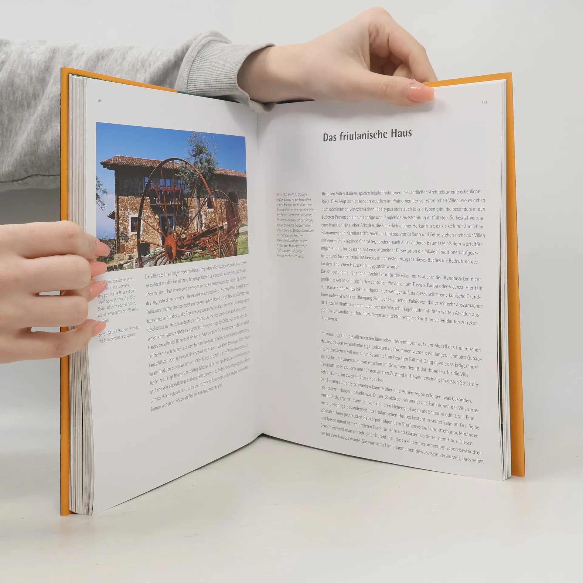 Die Vielfalt der italienischen Villen spiegelt die Landschaften, regionalen Kulturen und persönlichen Vorlieben ihrer Bauherren wider, sie zeugen von unterschiedlichen wirtschaftlichen Systemen, aber auch finanziellen Möglichkeiten und sind natürlich auch Moden, historischen Veränderungen und dem sogenannten Zeitgeist unterworfen. Jede Villa ist anders, einzigartig, entstanden aus den Bedingungen ihrer Umwelt, aber immer faszinierend. Das Friaul wird oft als die Mitte Europas bezeichnet, denn hier treffen die drei großen Sprachgruppen Europas aufeinander; hier leben Slawen, Deutsche und Romanen seit anderthalb Jahrtausenden friedlich beisammen und haben im Nebeneinander sehr eigenständige kulturelle Zeugnisse hervorgebracht. So erstaunt es nicht, dass die friulanischen Villen die ganze Bandbreite vom alpinen Bauernhaus bis zum habsburgischen Landschloss, vom venezianischen Palast bis zum Refugium italienischer Humanisten abdecken. Die einzelnen Kapitel dieses Buches präsentieren diese Vielfalt von Häusern, Bauformen und Stilen in prachtvollen Fotografien und Interieuraufnahmen.