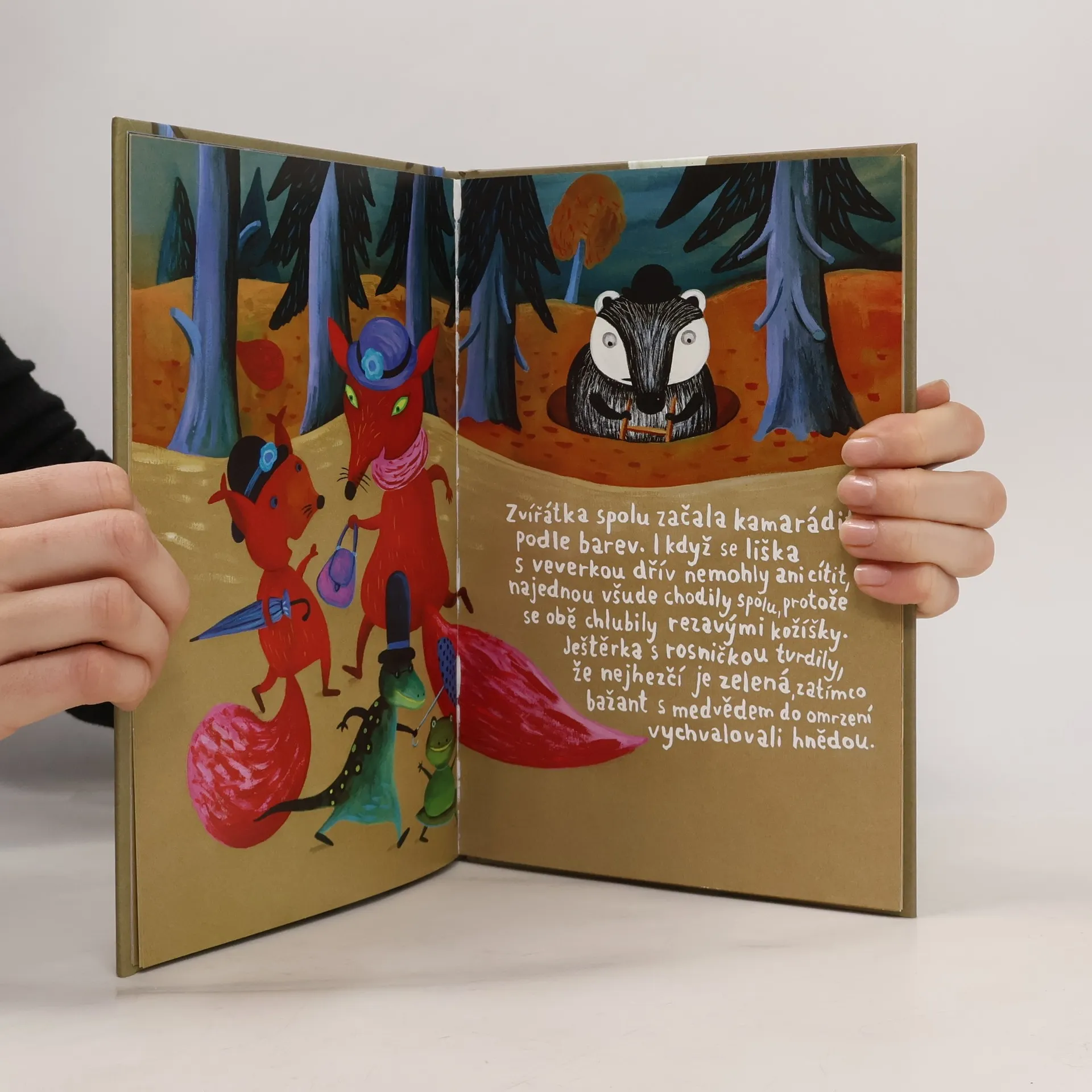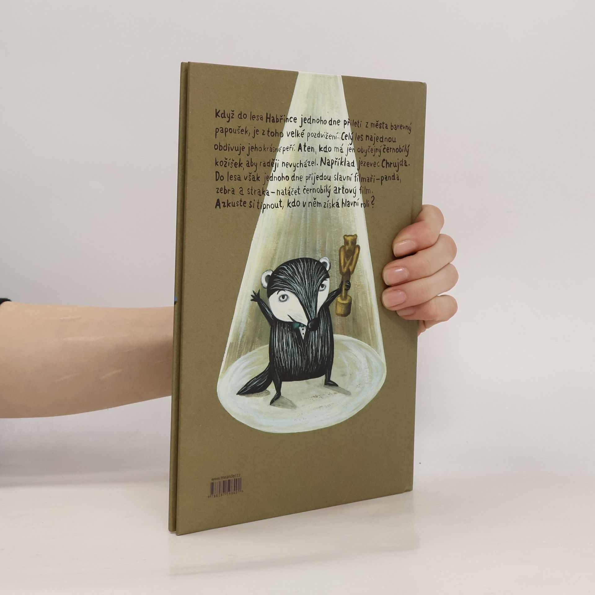 Když do lesa Habřince jednoho dne přiletí z města papoušek, je z toho velké pozdvižení. Všechna zvířátka najednou obdivují jeho krásně pestrobarevné peří, zatímco ten, kdo má jen černobílý kožíšek, upadá v přezíravé přehlížení. Například jezevec Chrujda. Pak ale do lesa přijedou tři černobílí filmaři – panda, zebra a straka – natáčet černobílý film. A kdo v něm získá hlavní roli? No přece náš jezevec... Příběh malé čtenáře hravou formou vede k poznání, že to podstatné u lidí, stejně jako u zvířátek, nemají hledat na povrchu, ale v nitru. A že móda se rychle mění, kdežto opravdové přátelství zůstává stále.