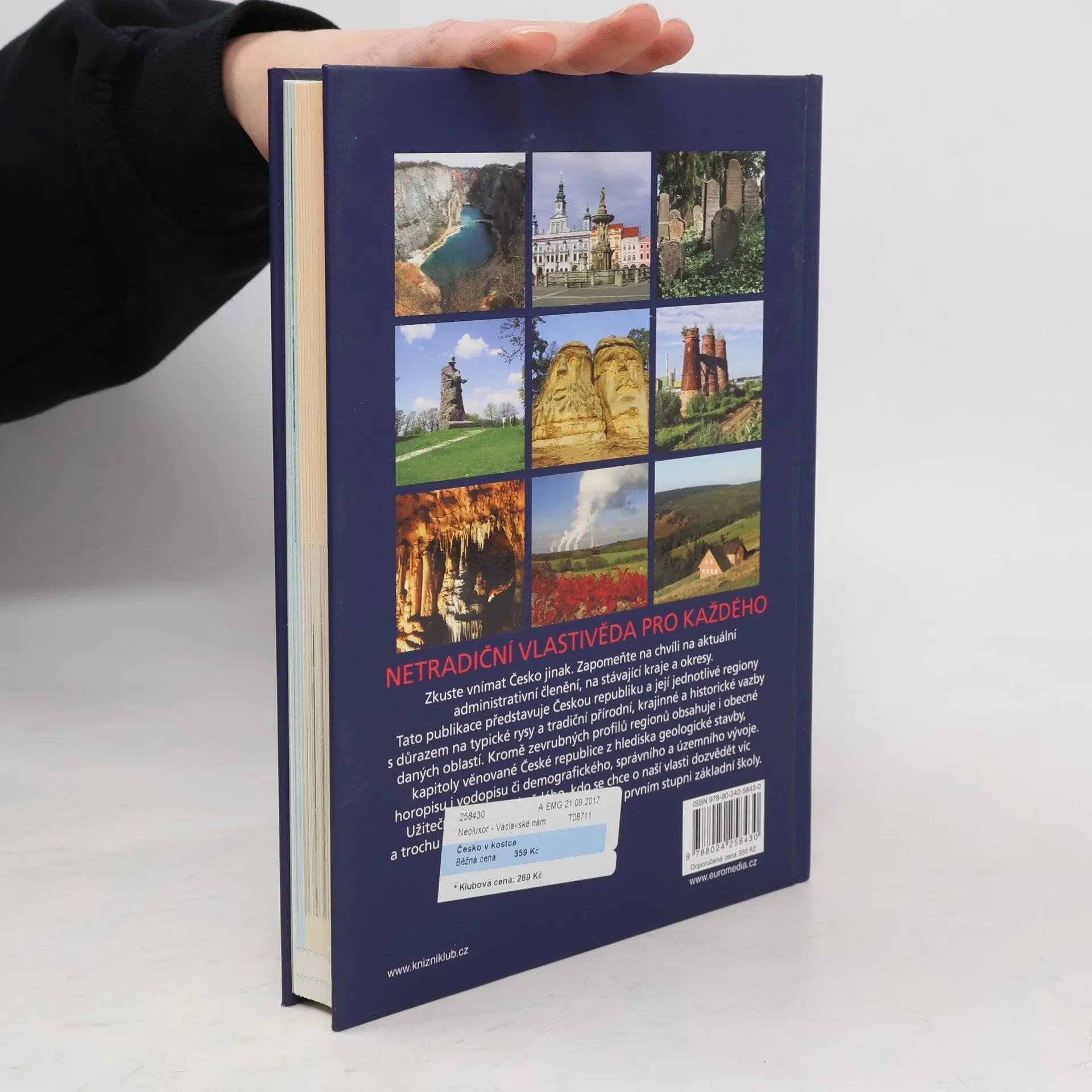 Přehledná příručka představuje Českou republiku a její jednotlivé regiony bez ohledu na dnešní územněsprávní členění. Důraz je kladen typické rysy a tradiční přírodní, krajinné a historické vazby daných oblastí. Kromě zevrubných profilů jednotlivých regionů obsahuje i obecné kapitoly věnované České republice z hlediska geologické stavby, horopisu i vodopisu či demografického, správního a územního vývoje. Užitečná kniha pro každého, kdo se chce o naší vlasti dozvědět víc a trochu jinak, než se to učil naposledy na prvním stupni základní školy.