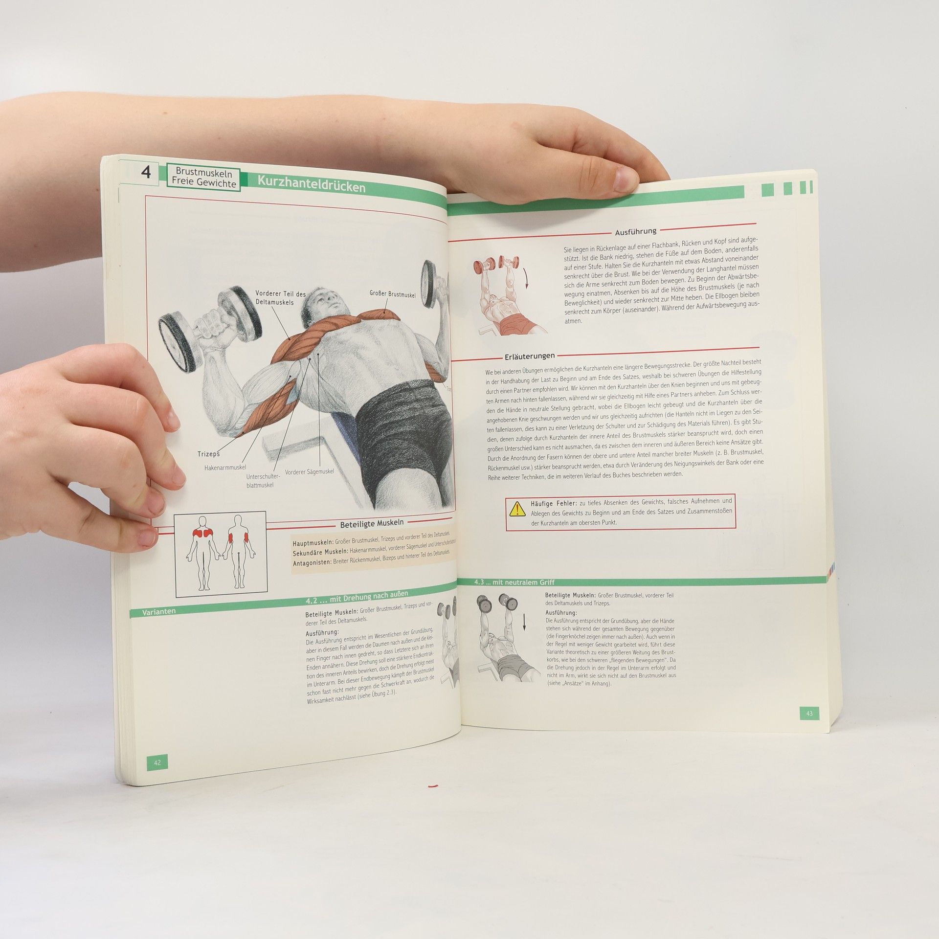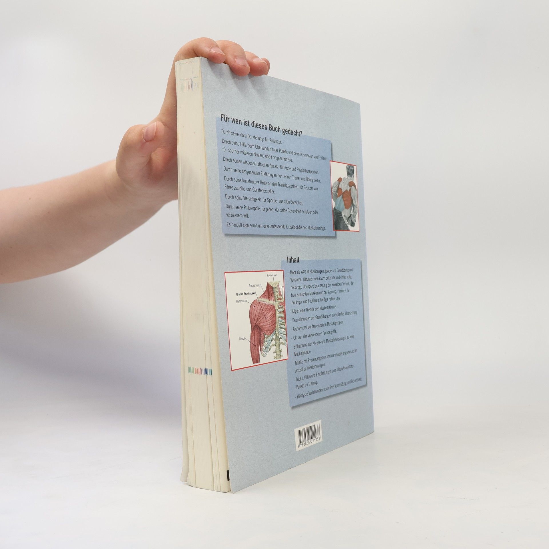 "Körper und Geist begleiten uns ein Leben lang, und es liegt an uns, sie zu pflegen." Mit diesem Zitat lässt sich die Philosophie des vorliegenden Buches zusammenfassen. Hier geht es nicht darum, in kurzer Zeit dicke Muskelpakete heranzuzüchten, sondern darum, die vier Grundqualitäten unserer Muskeln nachhaltig zu verbessern und zu optimieren: Stärke, Widerstandskraft, Flexibilität, Schnelligkeit. Der Autor legt großen Wert auf die wissenschaftlich fundierte und leicht verständliche Vermittlung von Grundwissen, das für ein verantwortungsbewusstes Muskeltraining wichtig ist. - Dem Übungsteil gehen einige Seiten mit nützlichen Informationen für den Leser voraus: geeignete Kleidung, richtige Atmung, Pausen, Muskelaufbau/Fettabbau, Training an Maschinen und freien Gewichten im Vergleich, Trainingspläne etc. - Klar und übersichtlich aufgebauter Übungsteil: Die acht Muskelgruppen sind mit unterschiedlichen Farben gekennzeichnet. - Insgesamt über 440 Übungen mit freien Gewichten und am Gerät - übersichtlich präsentiert. - Das umfassende Werk zum Muskeltraining für Einsteiger und Fortgeschrittene.