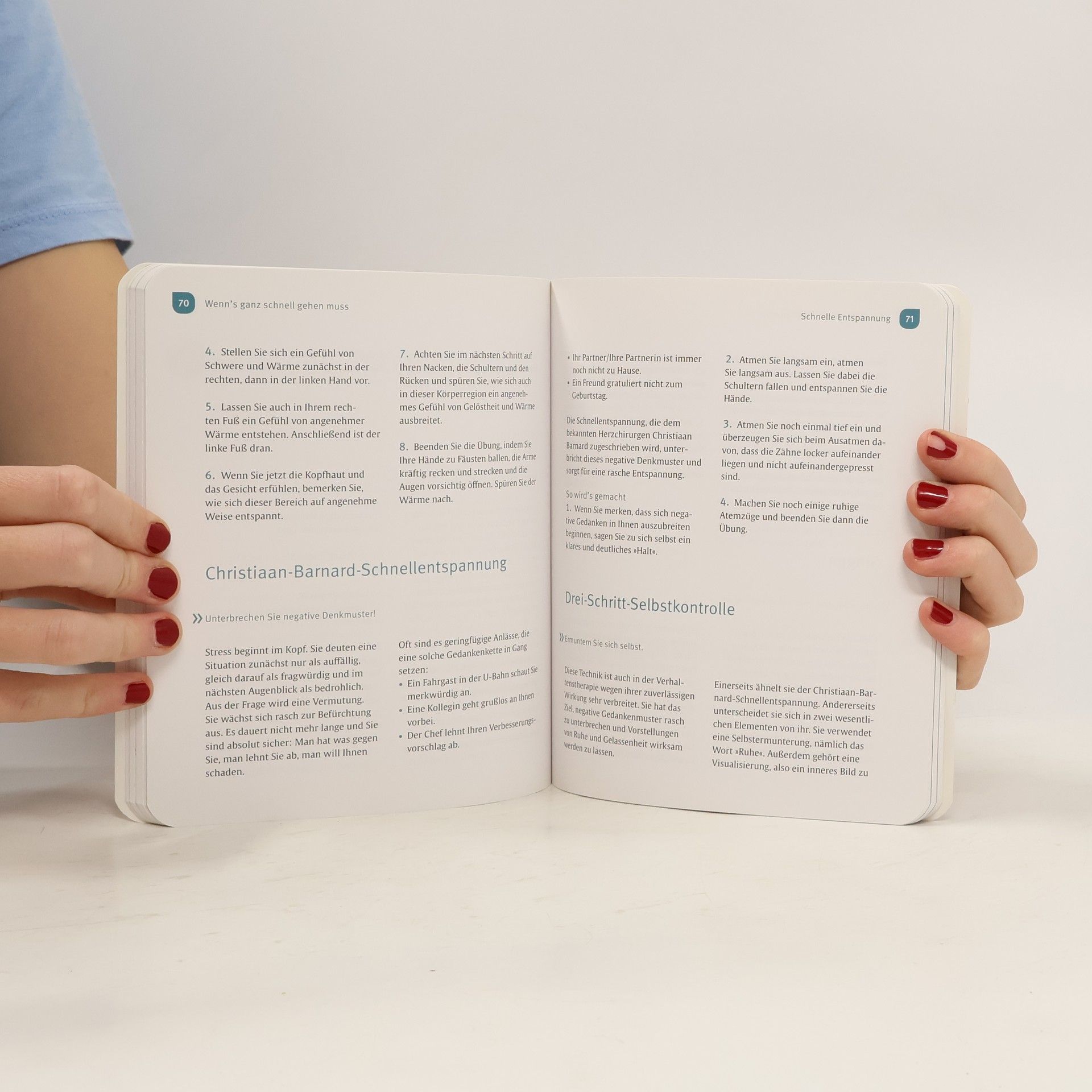 Wunsch: „Stress lass nach“? Mit dieser flotten Sammlung von schnellen Entspannungs-Übungen wird es ganz einfach, ein paar Sekunden ganz abzuschalten. Hörer noch schneller zu Gelassenheit und Ruhe kommen. Rasch spüren sie innere Stärke wachsen. Und schon geht´s mit neuer Kraft wieder an die Arbeit. Die Übungen sind sortiert nach typischen Stress-Situationen.
