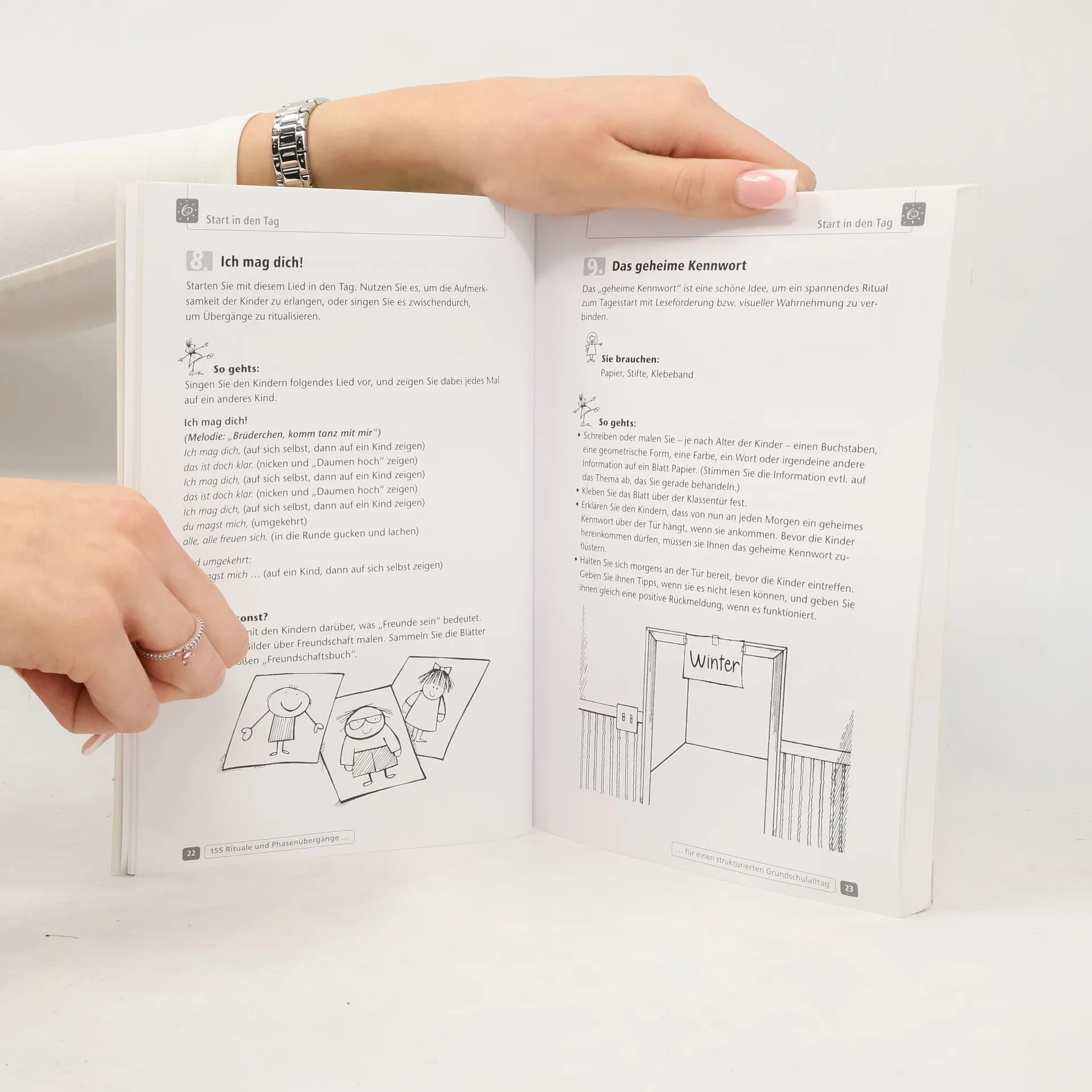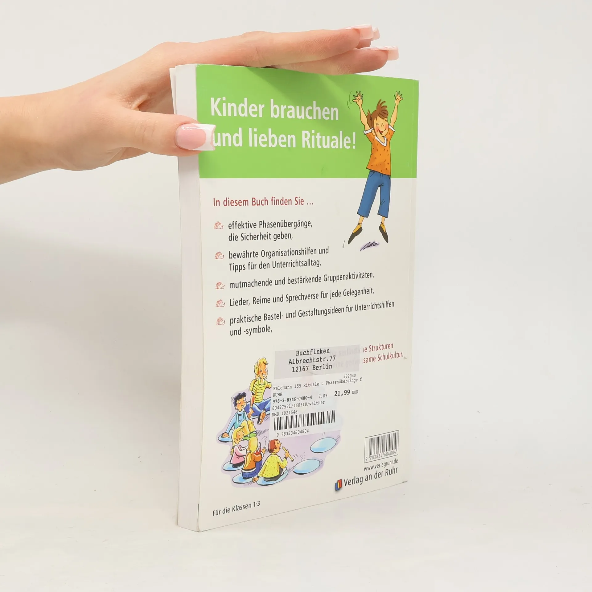 Ratgeber und Methoden-Handbuch für Lehrer an Grundschulen, Klasse 1–3 +++ Sie haben viel vor an einem Schultag! Damit Sie Ihre Pläne auch alle umsetzen können, helfen Ihnen die 155 leicht realisierbaren Ideen, Tipps und Tricks dieser Lehrerhandreichung. Die Kinder sammeln durch ritualisierte Methoden- und Phasenübergänge neue Motivation für die nächste Unterrichtssequenz und lernen dank der Rhythmisierung innerhalb verlässlicher Strukturen. Und das schont auch Ihre Zeit und Nerven. Mit Hilfe verschiedener Anregungen, wie Reime, Spiele, Bewegungsangebote und Basteleien, lassen sich in der Schule nicht nur Einstiege in den Unterricht, Übergänge und Aufräumphasen, sondern auch Regenpausen und kleine Motivationsphasen zwischendurch kurzweilig gestalten. Ohne große Unterrichtsvorbereitung fördern Sie so jeden Tag durch abwechslungsreiche Rituale die Aufmerksamkeit, Konzentration und Kreativität Ihrer Schüler. Zusätzlich liefert Ihnen die Ideensammlung organisatorische Tipps, z. B. für die Erarbeitung von Klassenregeln oder eine reibungslose Gruppeneinteilung, was sie zu einer wertvollen Organisationshilfe für die Klassenleitung macht. Geeignet für Berufseinsteiger, aber auch für „gestandene“ Lehrer.