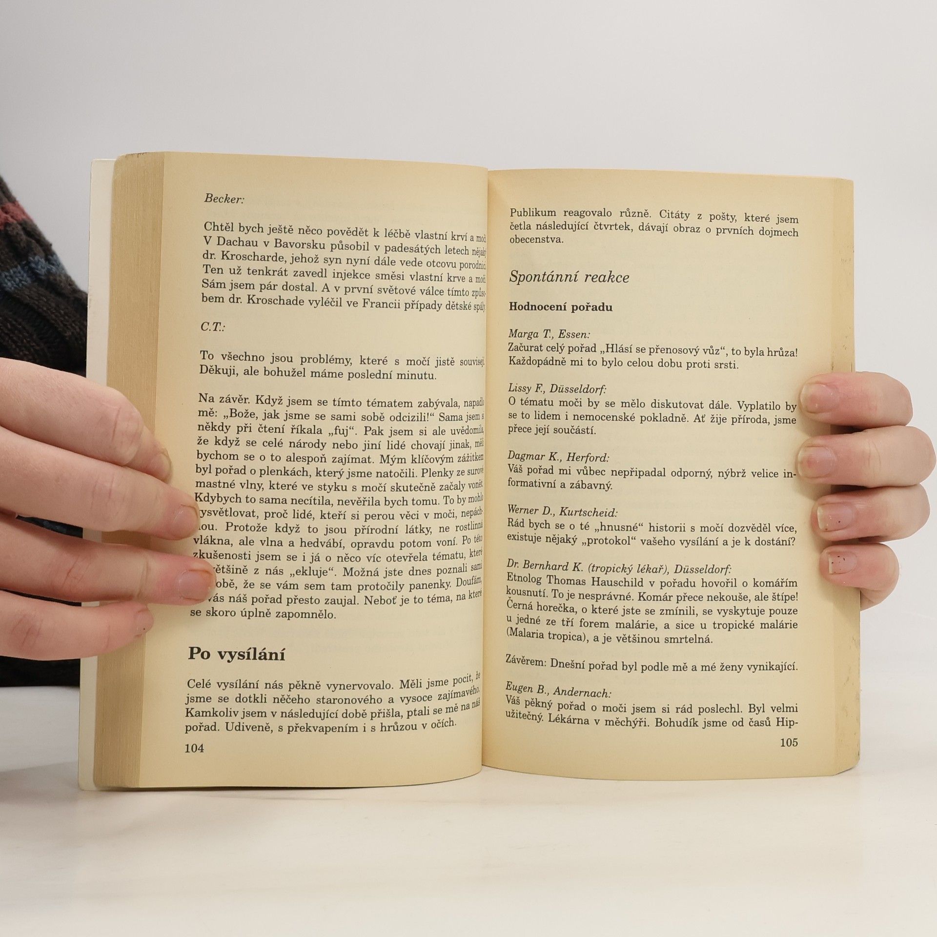 Tato kniha se vědomě netváří jako věděcké pojednání. Vznikla na základě debaty živě odvysílané v německém rozhlase 21. 7. 1988. Ohlas na toto tabuizované téma byl nečekaný a obrovský. Od kritického tónu až po čtenářské dopisy, líčící překvapující praktické i léčivé účinky. Zázračně zhojené rány, mizící bradavice a vrásky nebo použití na naší zahrádce. Kniha je sborníkem těchto praktických zkušeností širokého publika, doplněným kulturně historickým pozadím, ukázkami s různých publikací a nástinem vývoje tohoto tématu v medicíně. Můžete ji číst jako zajímavost či si některé zkutečnosti alternativního léčitelství ověřit na vlastním těle.
