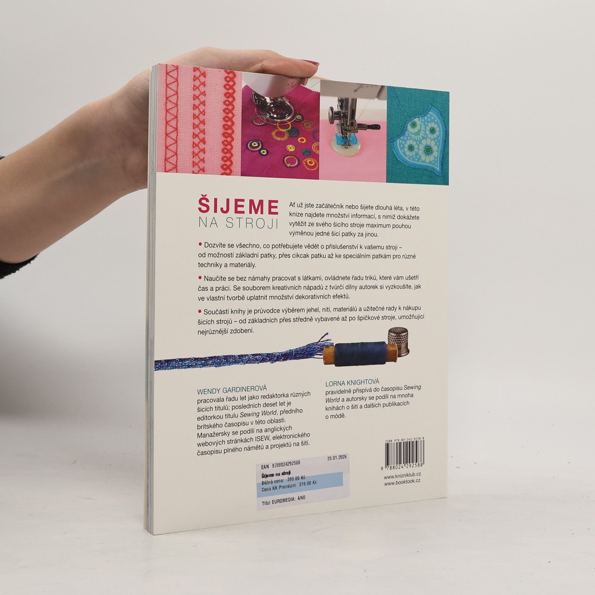 Ať už jste začátečník, nebo šijete dlouhá léta, v této knize se dozvíte množství informací, které potřebujete k tomu, abyste ze svého šicího stroje vytěžili maximum. Najdete zde vše o příslušenství, které vám pomůže při vaší tvorbě, o práci s nejrůznějšími látkami nebo o vytváření dekorativních efektů. V knize nechybí ani průvodce výběrem jehel, nití, materiálů a užitečné rady k nákupu šicích strojů.