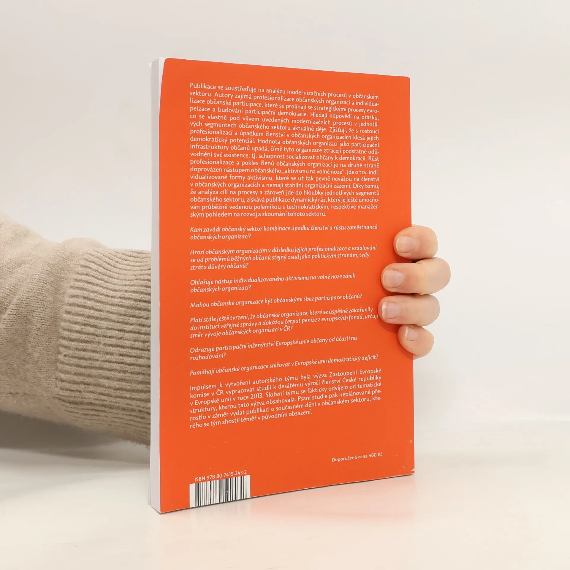 Publikace se soustřeďuje na analýzu modernizačních procesů v občanském sektoru. Autory zajímá profesionalizace občanských organizací a individualizace občanské participace, které se prolínají se strategickými procesy evropeizace a budování participační demokracie. Hledají odpovědi na otázku, co se vlastně pod vlivem uvedených modernizačních procesů v jednotlivých segmentech občanského sektoru aktuálně děje. Zjišťují, že s rostoucí profesionalizací a úpadkem členství v občanských organizacích klesá jejich demokratický potenciál. Hodnota občanských organizací jako participační infrastruktury občanů upadá, čímž tyto organizace ztrácejí podstatné odůvodnění své existence, tj. schopnost socializovat občany k demokracii. Růst profesionalizace a pokles členů občanských organizací je na druhé straně doprovázen nástupem občanského „aktivismu na volné noze“. Jde o tzv. individualizované formy aktivismu, které se už tak pevně nevážou na členství v občanských organizacích a nemají stabilní organizační zázemí. Díky tomu, že analýza cílí na procesy a zároveň jde do hloubky jednotlivých segmentů občanského sektoru, získává publikace dynamický ráz, který je ještě umocňován průběžně vedenou polemikou s technokratickým, respektive manažerským pohled na rozvoj a zkoumání tohoto sektoru.