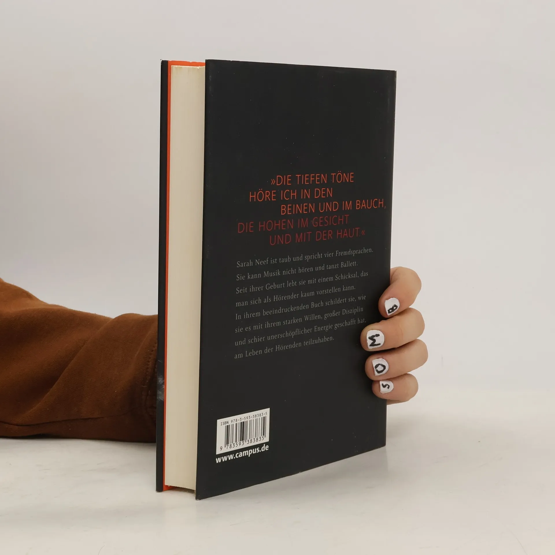 Sie ist taub und spricht vier Fremdsprachen. Sie kann Musik nicht hören und tanzt Ballett. Sarah Neef lebt seit ihrer Geburt mit einem Schicksal, das man sich als Hörender kaum vorstellen kann. In ihrer beeindruckenden Autobiografie schildert sie, wie sie es mit ihrem starken Willen, großer Disziplin und schier unerschöpflicher Energie schafft, am Leben der Hörenden teilzuhaben. Früh erlernt Sarah das Lippenlesen und übt das Sprechen, meistert die Schulzeit unter Hörenden mit Bestnoten und entdeckt schon als Kind die Liebe zum Tanz und zur Musik. Sie nimmt die Töne als Vibrationen wahr und fühlt sie mit ihrem Körper. Sarah Neef lässt uns an ihrem Leben teilnehmen und möchte auch andere ermutigen, sich wegen ihrer vermeintlichen Defizite nicht von der Gesellschaft ausgrenzen zu lassen.
