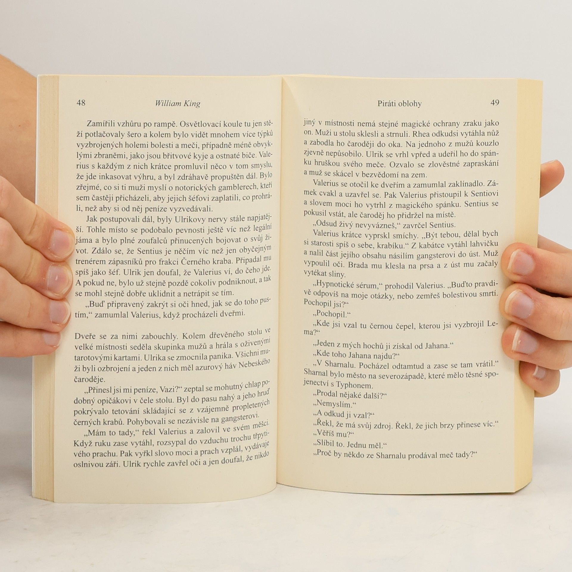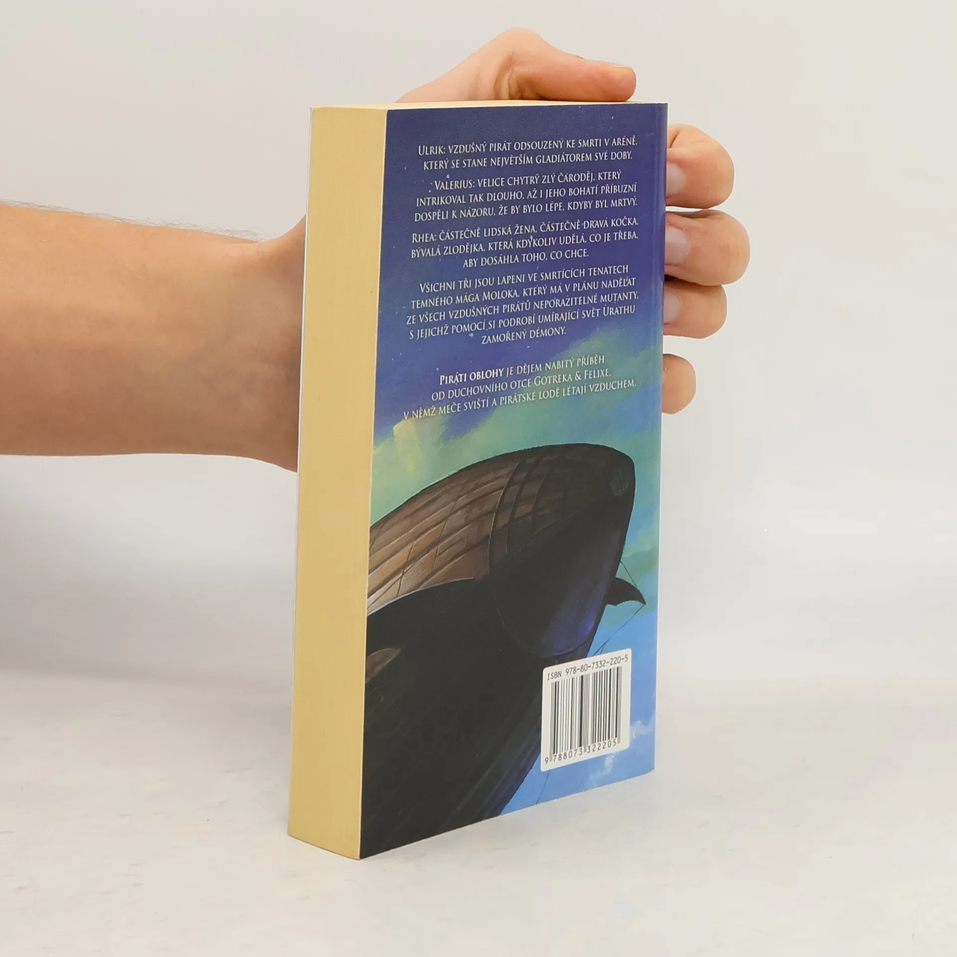 Ulrik: vzdušný pirát odsouzený ke smrti v aréně, který se stane největším gladiátorem své doby. Valerius: velice chytrý zlý čaroděj, který intrikařil tak dlouho, až i jeho bohatí příbuzní dospěli k názoru, že by bylo lépe, kdyby byl raději mrtvý. Rhea: částečně lidská žena, částečně dravá kočka a bývalá zlodějka, vždy udělá, co je nutné, aby dosáhla toho, co chce. Všichni tři byli lapeni do smrtících tenat uctívače démona Moloka, který má v plánu nadělat ze všech vzdušných pirátů neporazitelné mutanty, s jejichž pomocí si podrobí umírající, démony zamořený svět Urathu. Piráti oblohy jsou dějem nabitý příběh, v němž lodě létají a meče sviští, ve stylu románů Edgara Rice Burroughse o Johnu Carterovi a Jacka Vance z cyklu Umírající Země, od bestsellerového tvůrce Gotreka a Felixe.